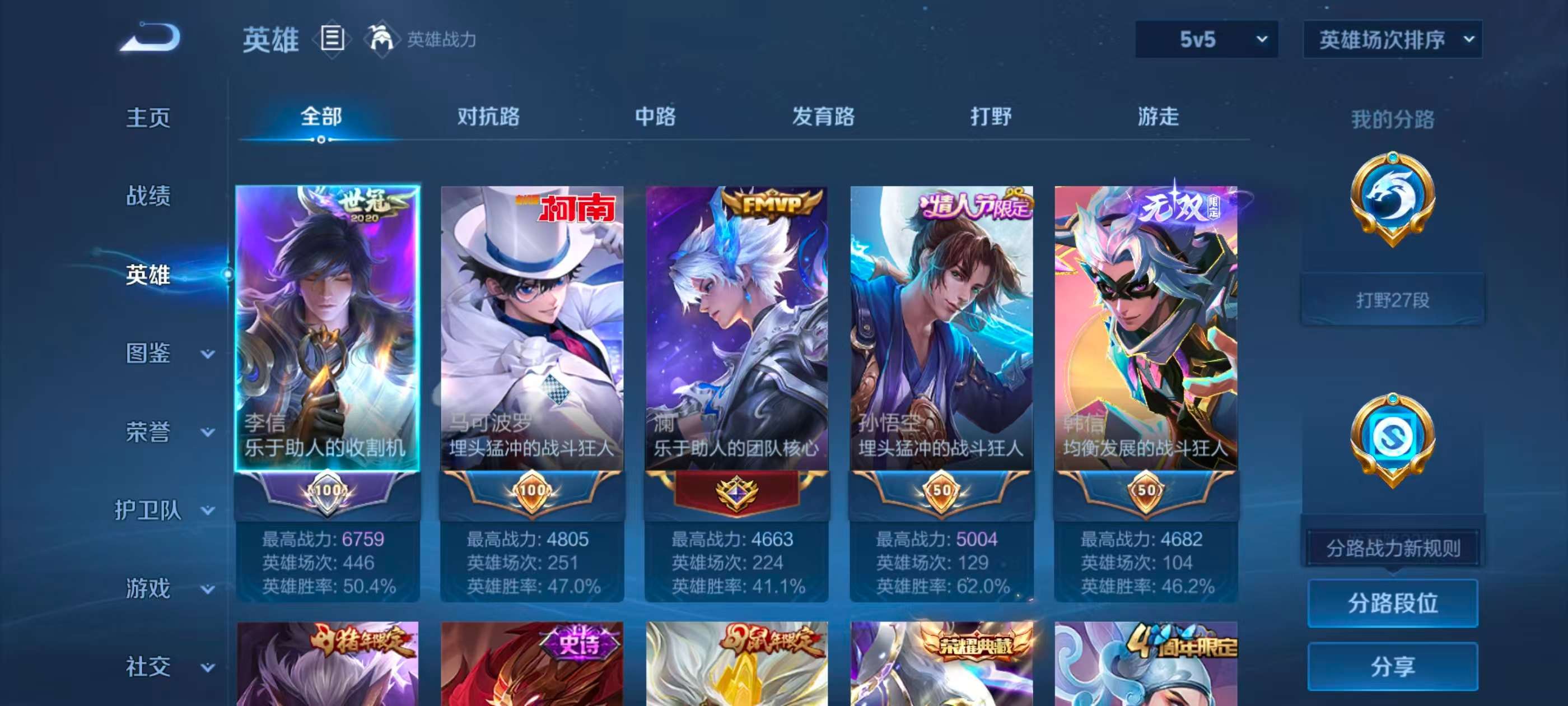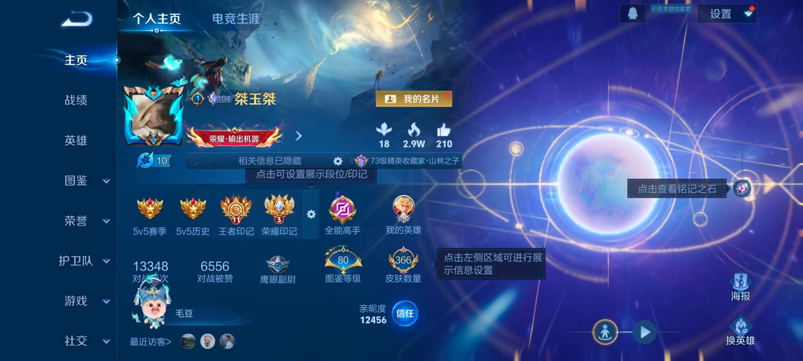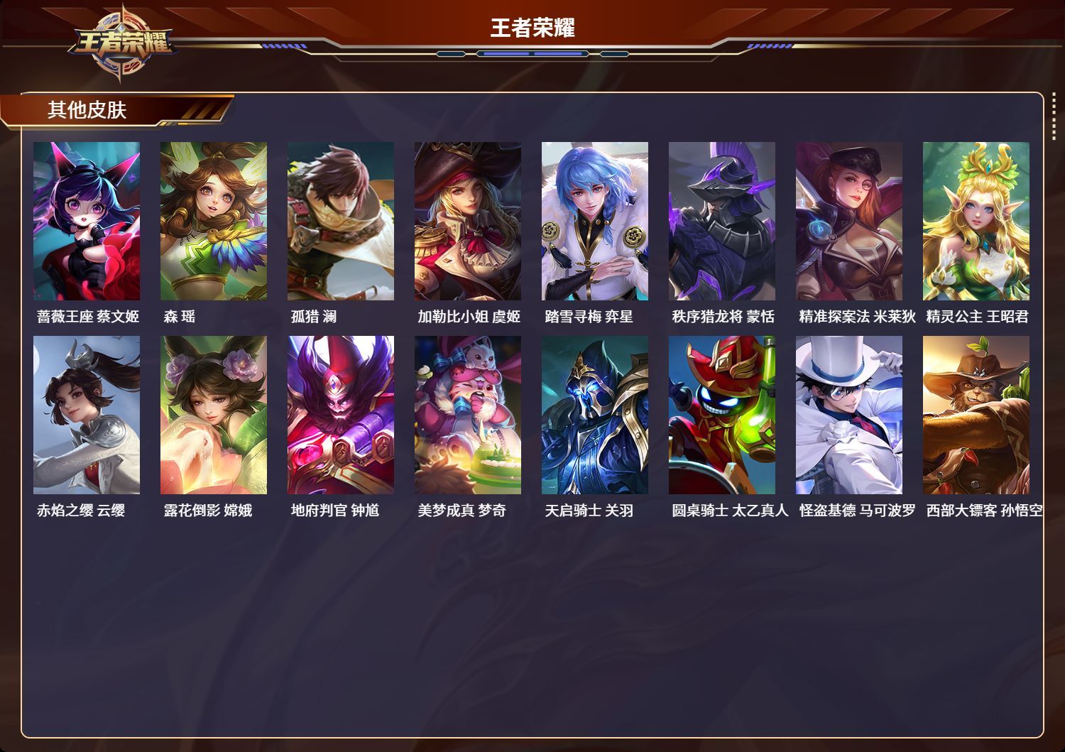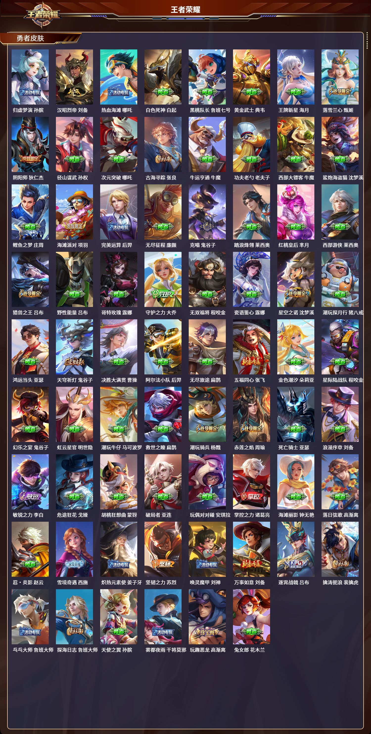 安卓QQ/荣耀王者/366皮肤/124英雄/2典藏/0珍品无双/1无双/1珍品传说/15传说/104