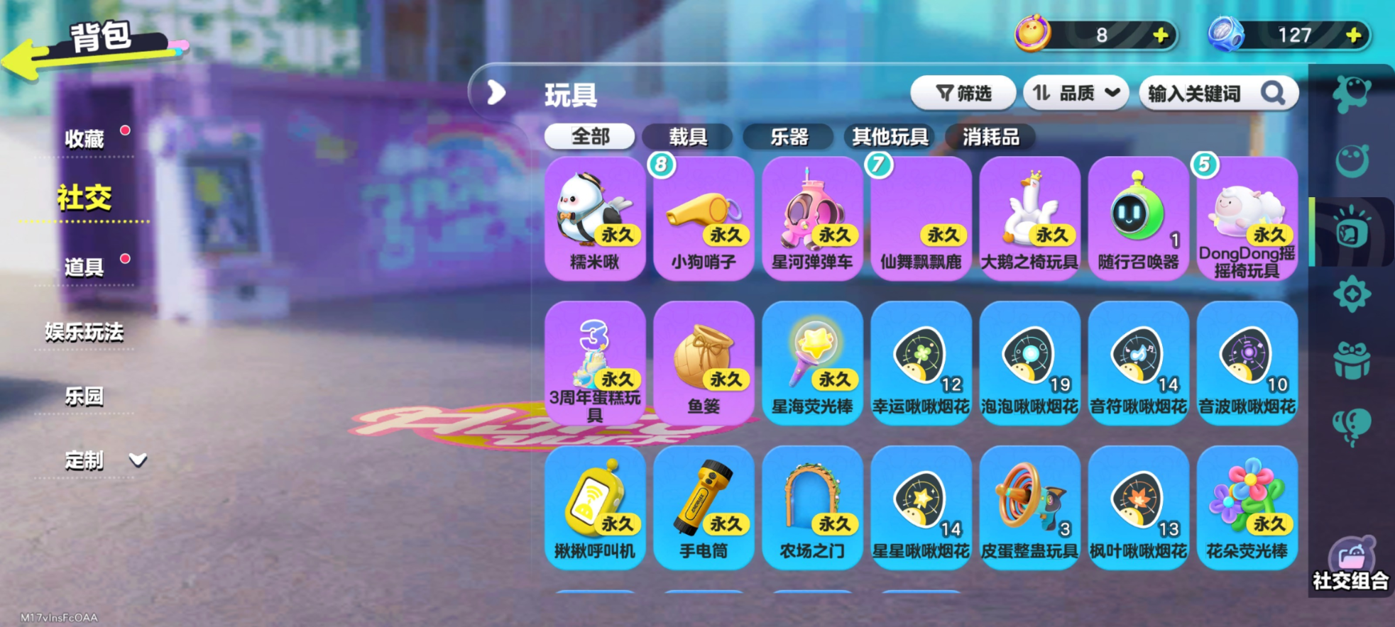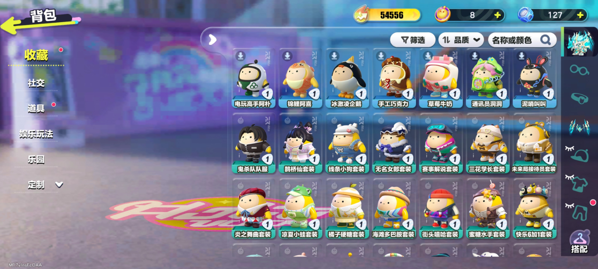紫皮:莓莓DongDong,双面教师林野,冷面千金竹月,海盐布丁嘟嘟,柠檬汽水啵啵,幽猎塞莉诺,圆舞绮步可可,莓莓甜心兔,音乐家蕾利,松鼠多栗,貔貅福福,甜甜圈诺奇,大娃,奶茶店