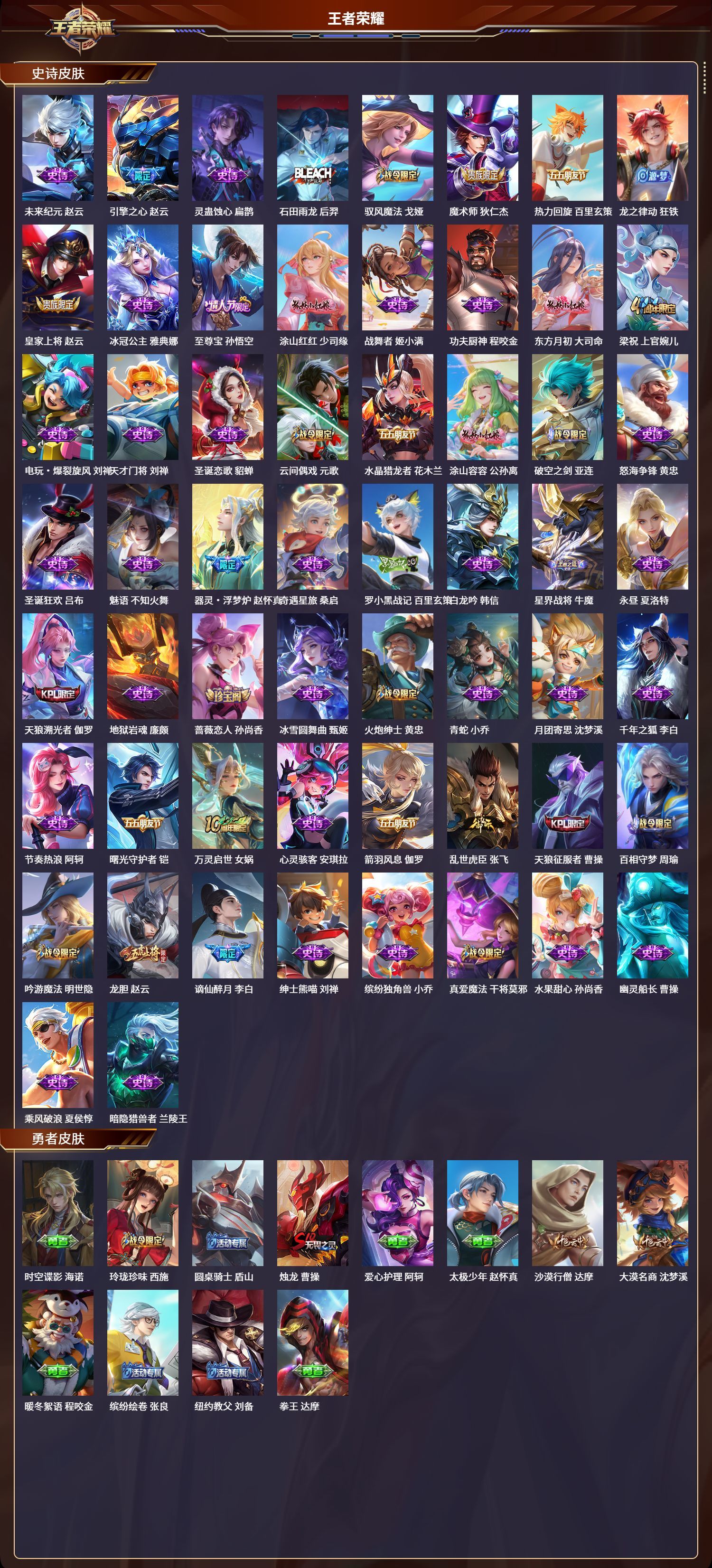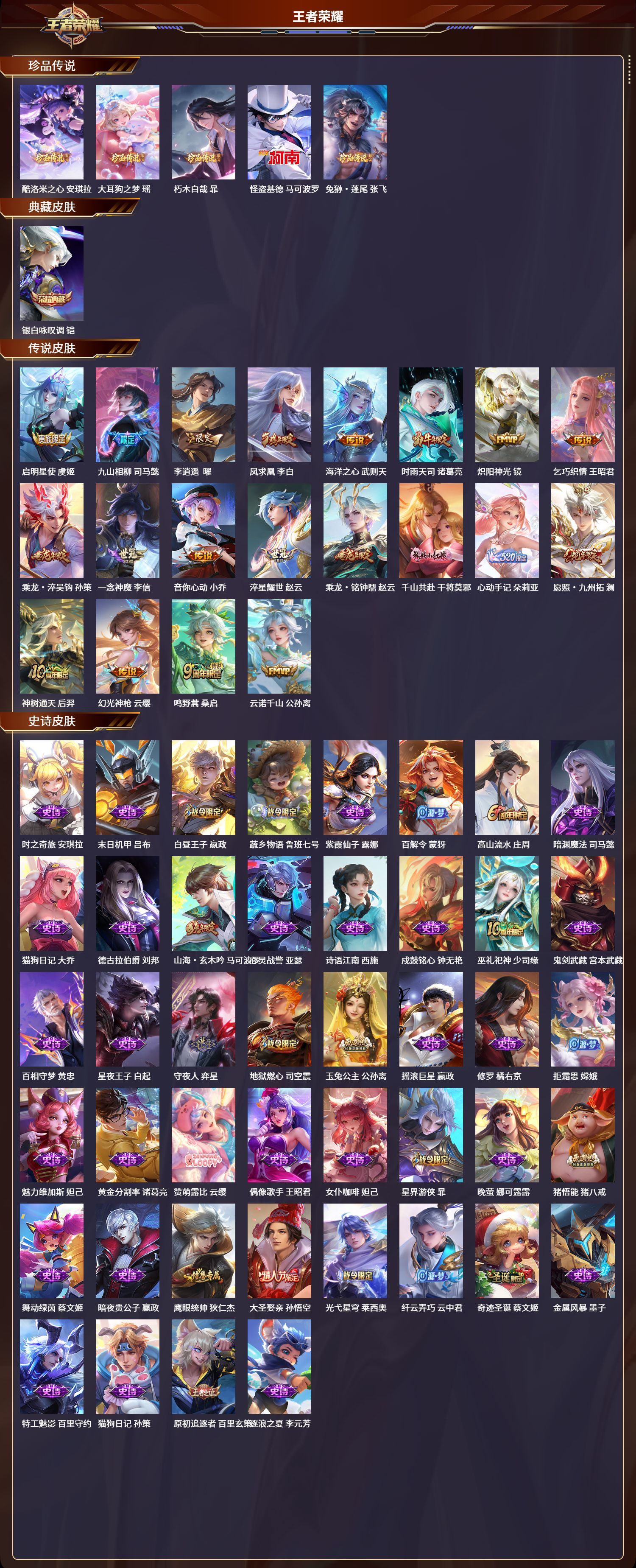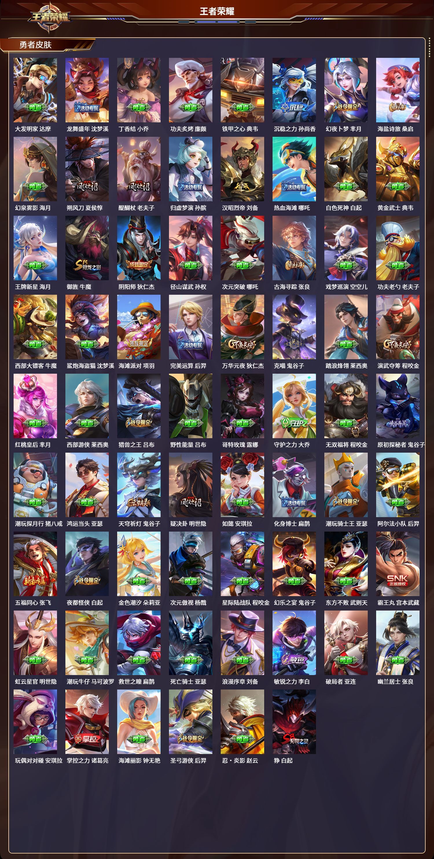苹果QQ/无双王者/356皮肤/126英雄/1典藏/0珍品无双/0无双/5珍品传说/20传说/102
