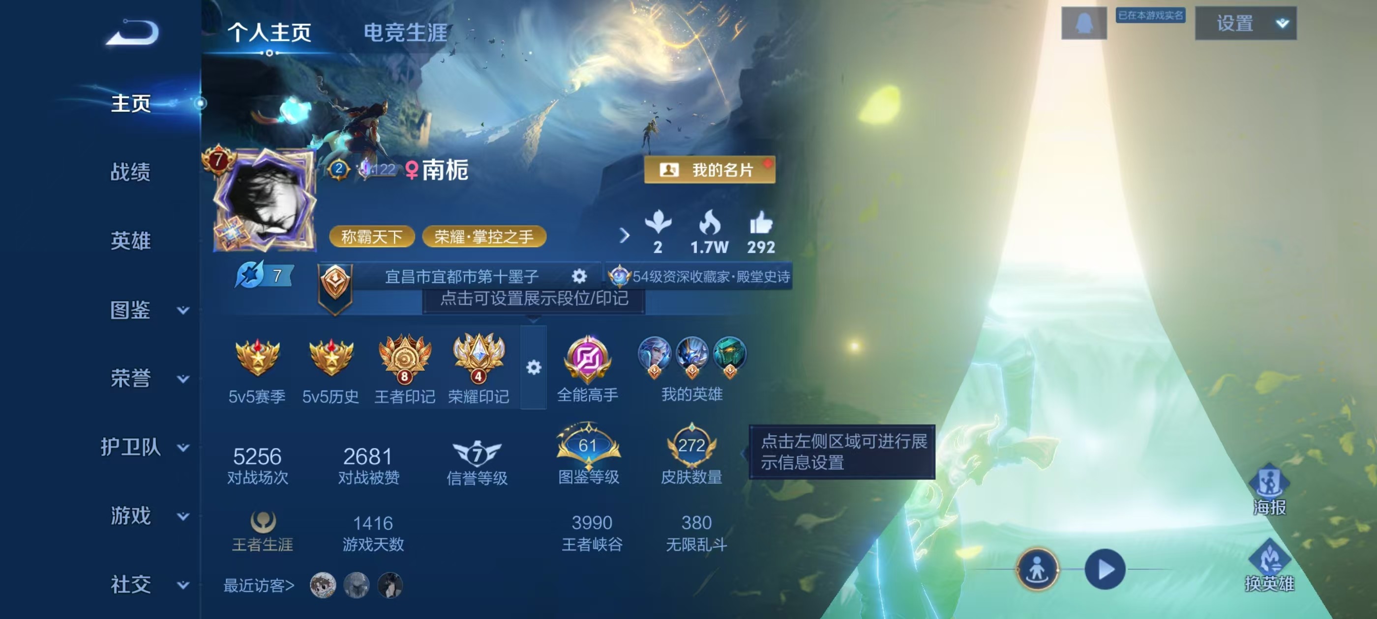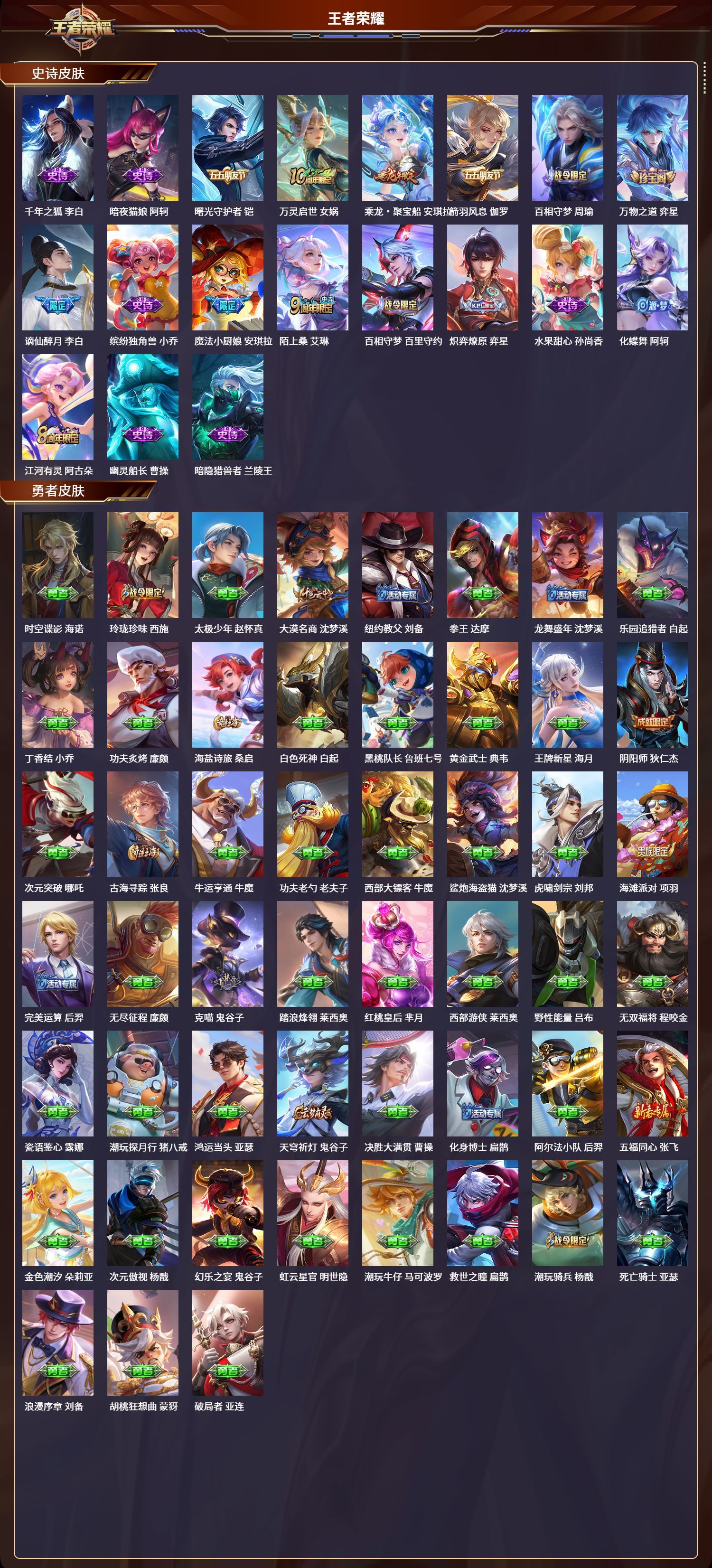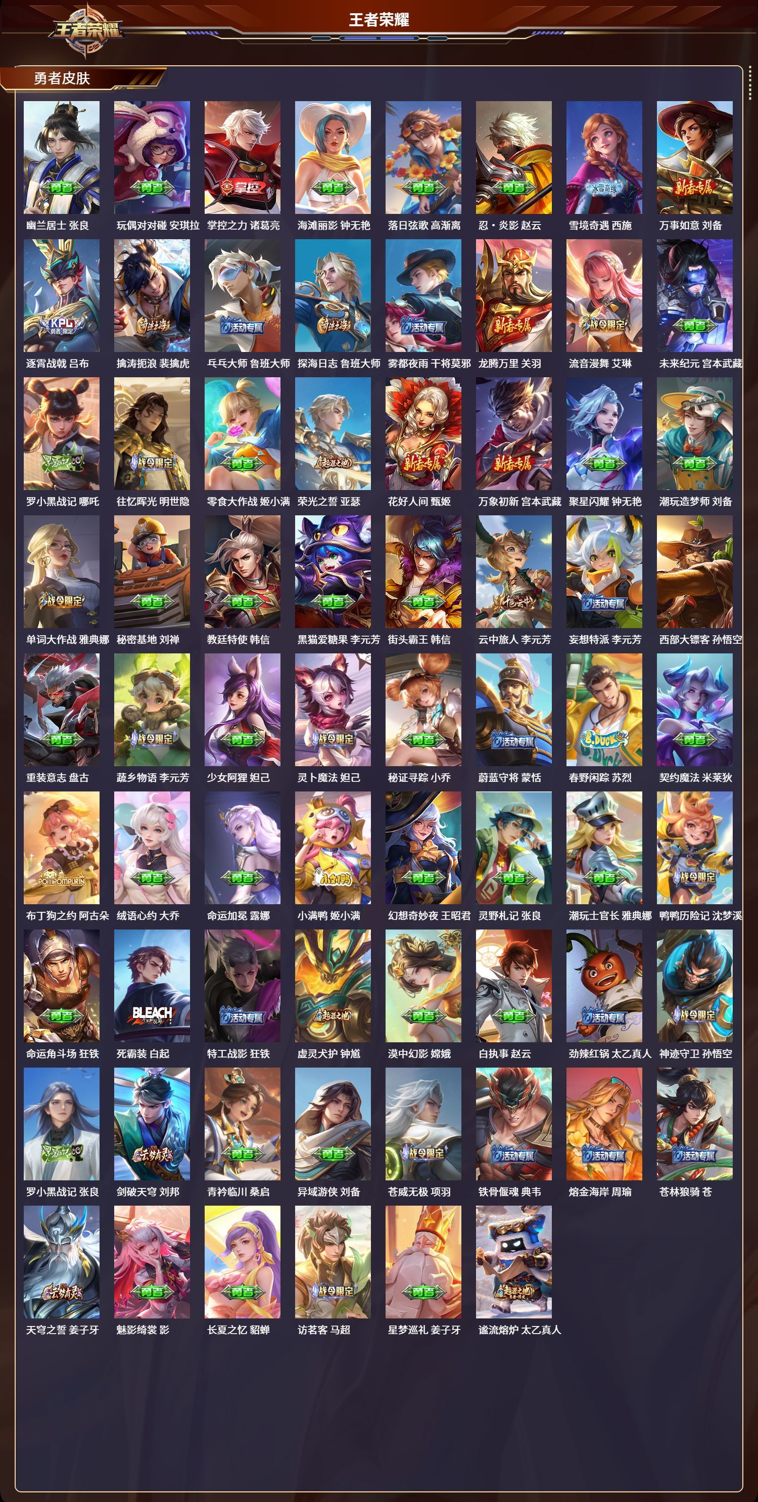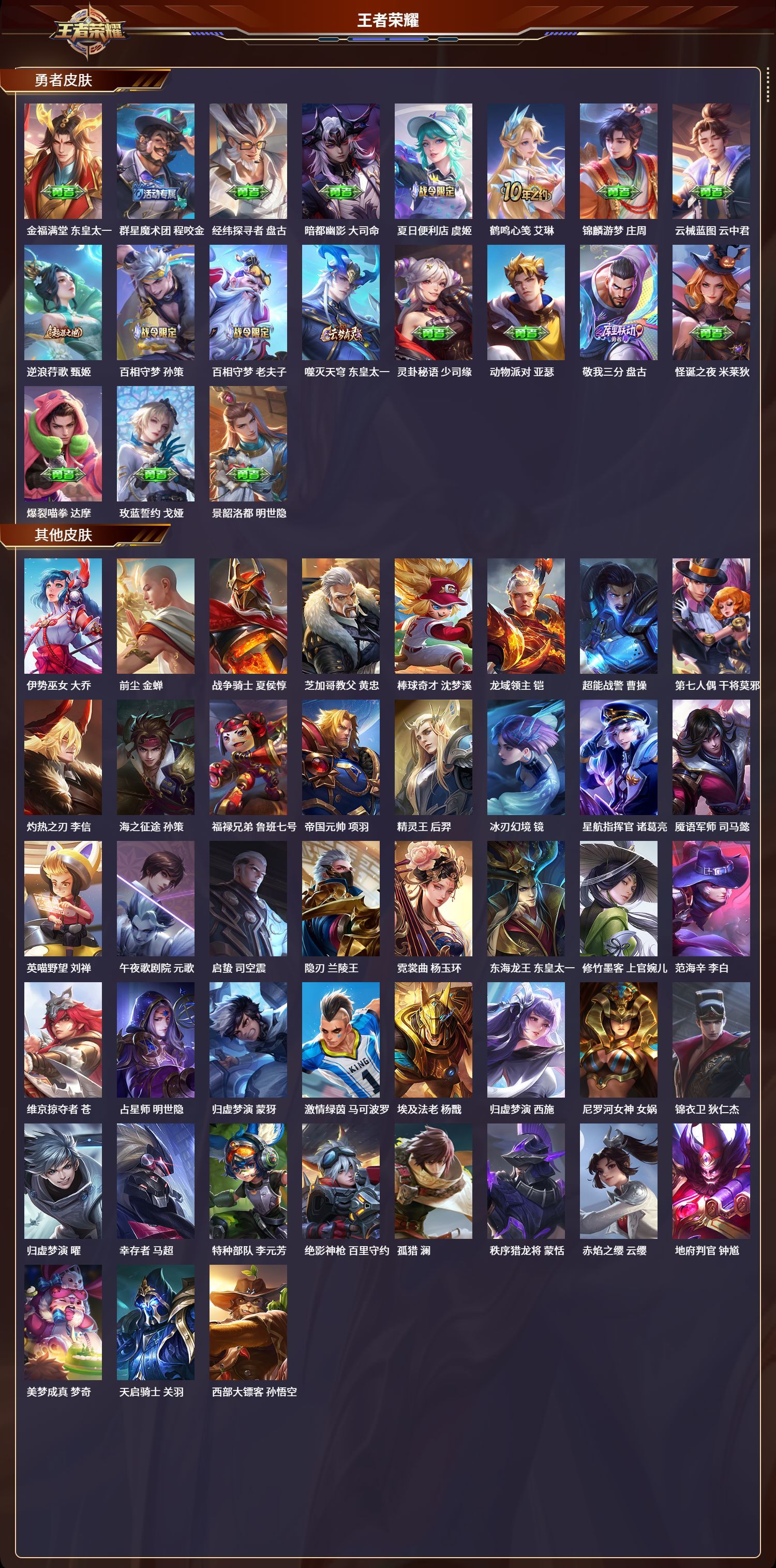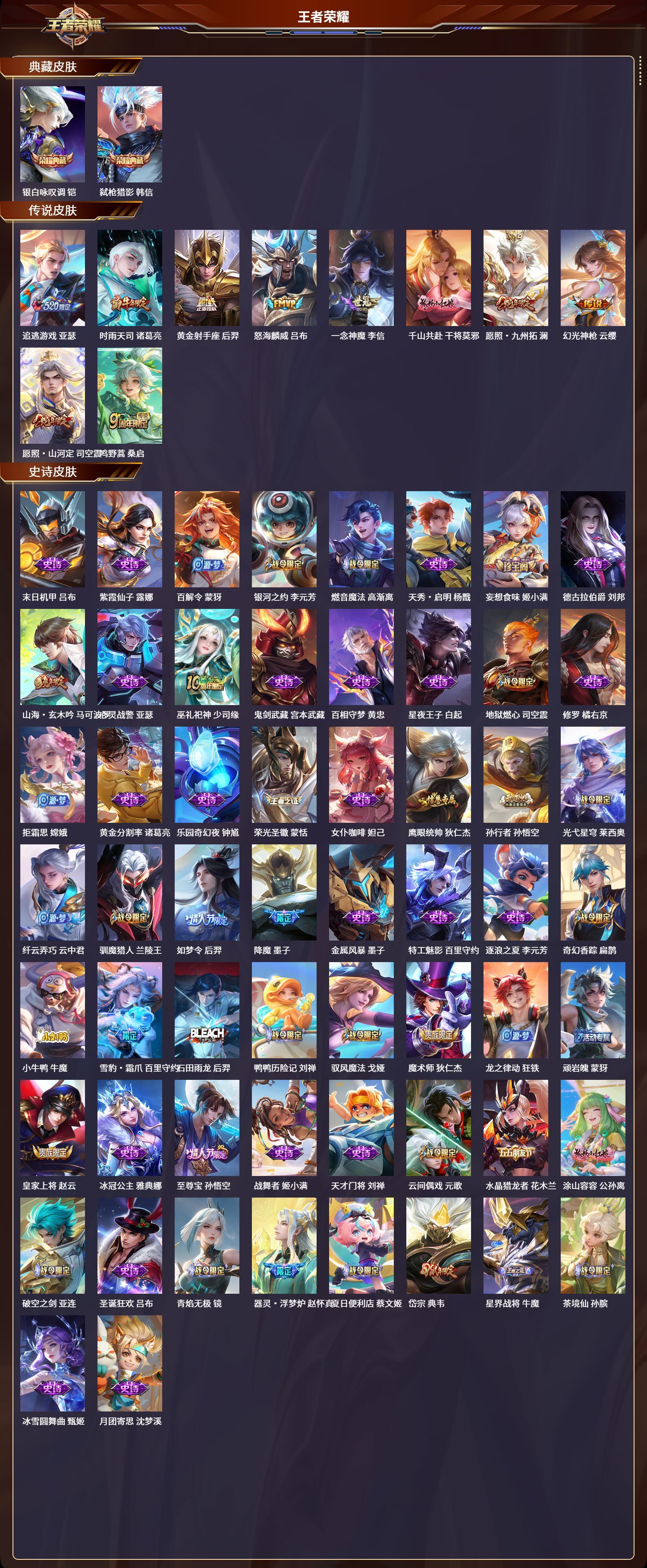 安卓QQ/至圣王者/272皮肤/125英雄/2典藏/0珍品无双/0无双/0珍品传说/10传说/77史