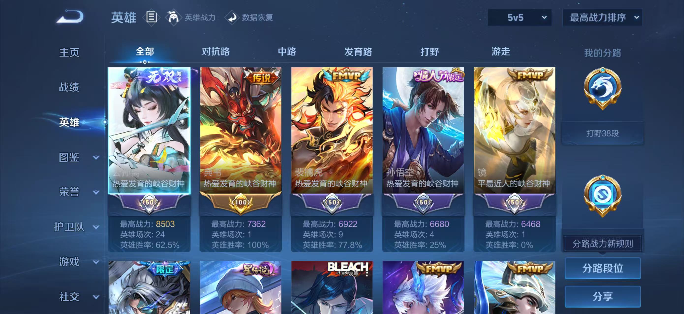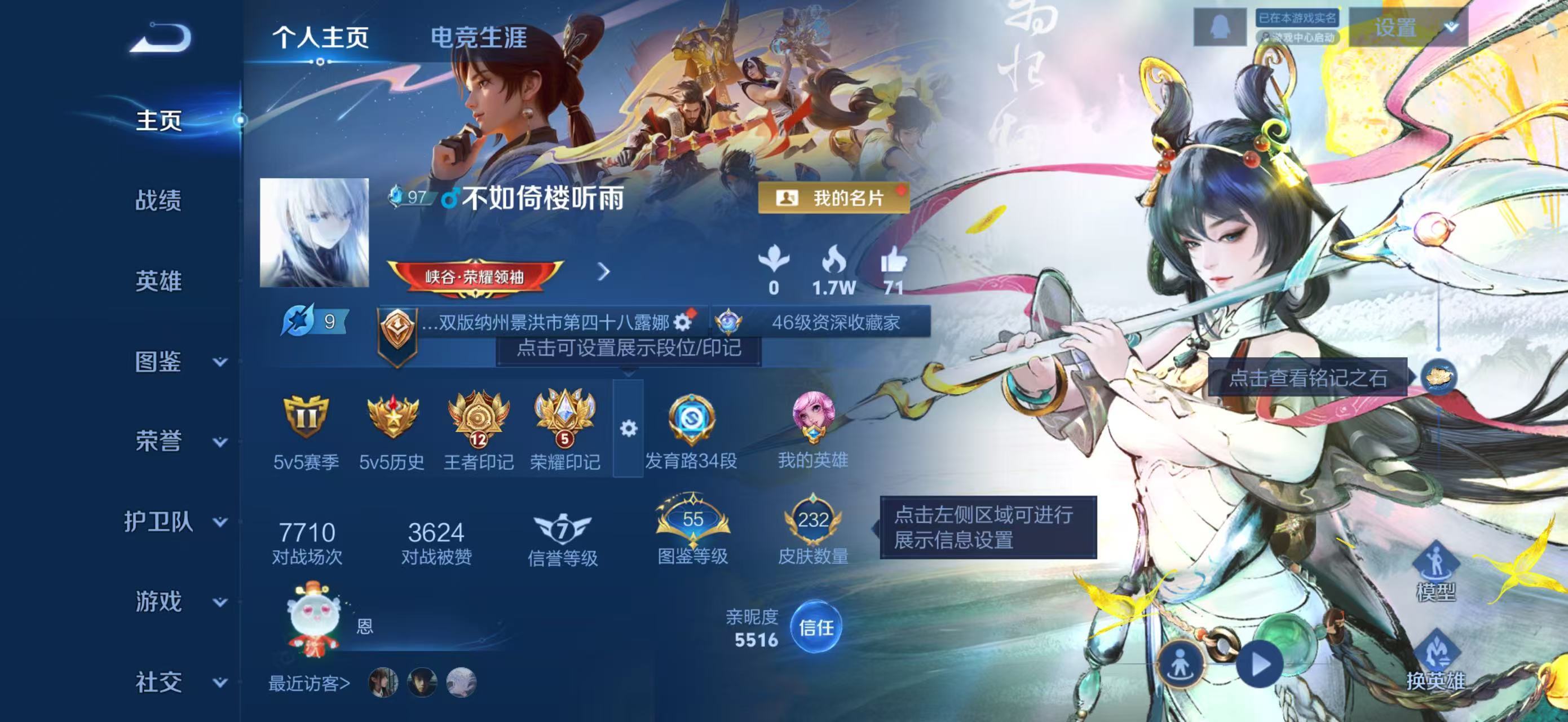 QQ/至尊星耀/232皮肤/125英雄/1典藏/0珍品无双/1无双/1珍品传说/18传说/63史
