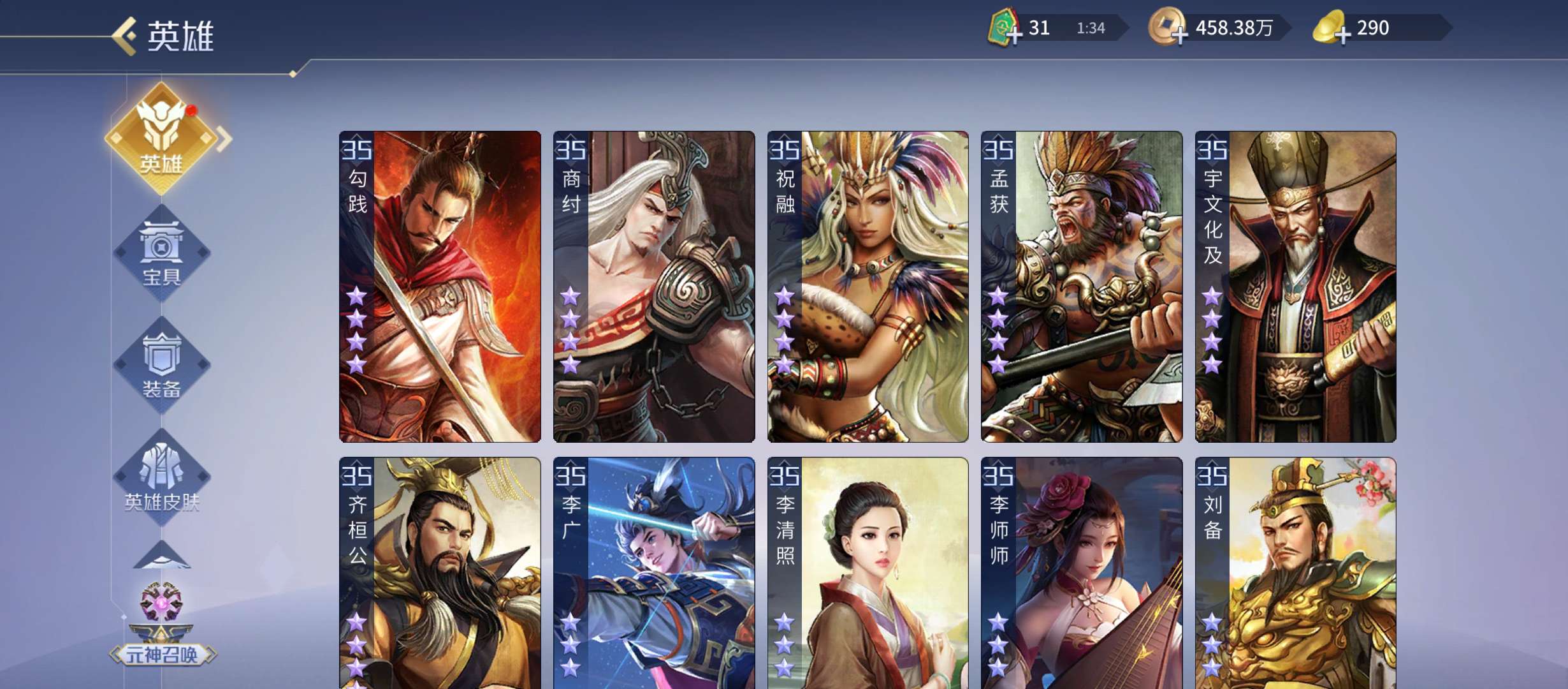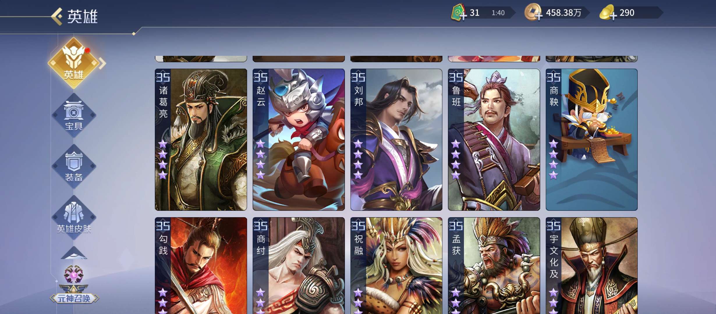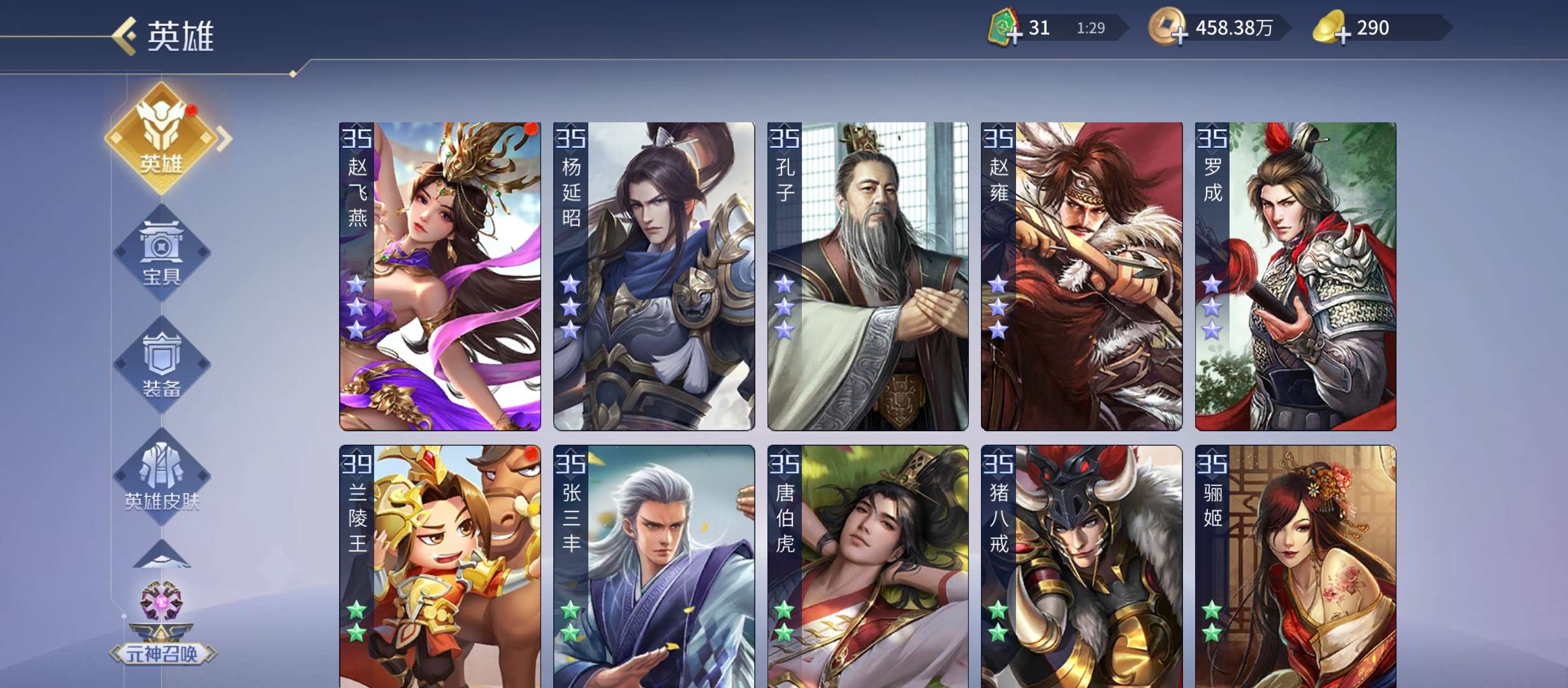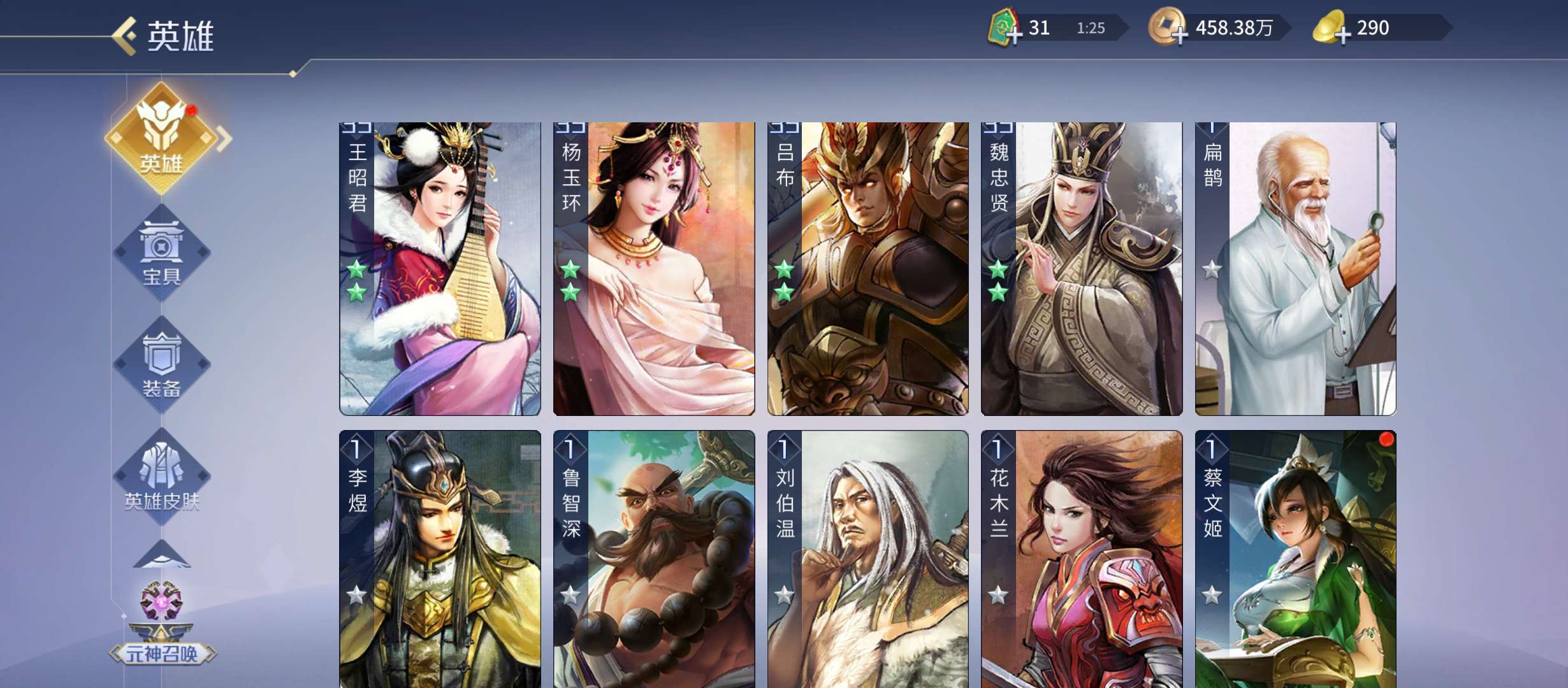 五星武将数量: