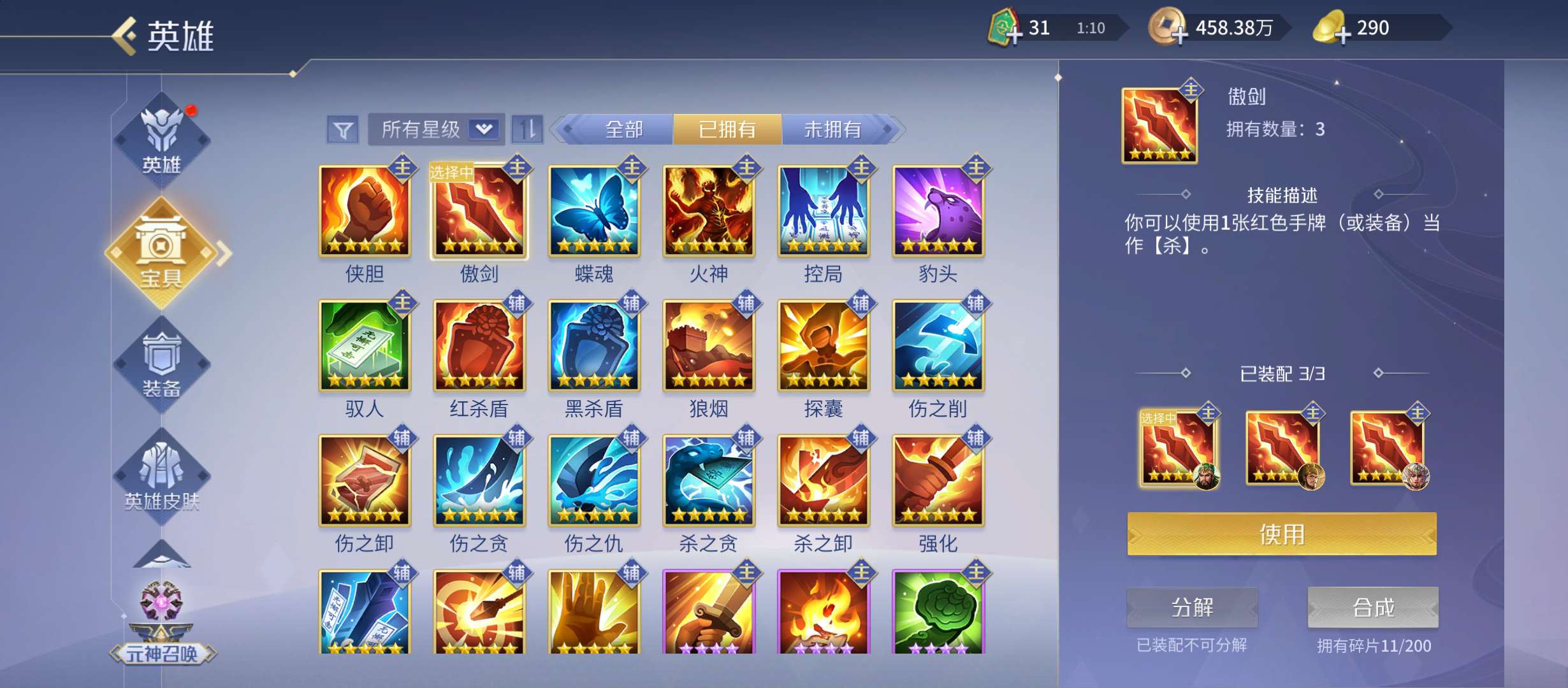 五侠三傲,三奴二控,三蝶魂,这个月合成爆头,一火
