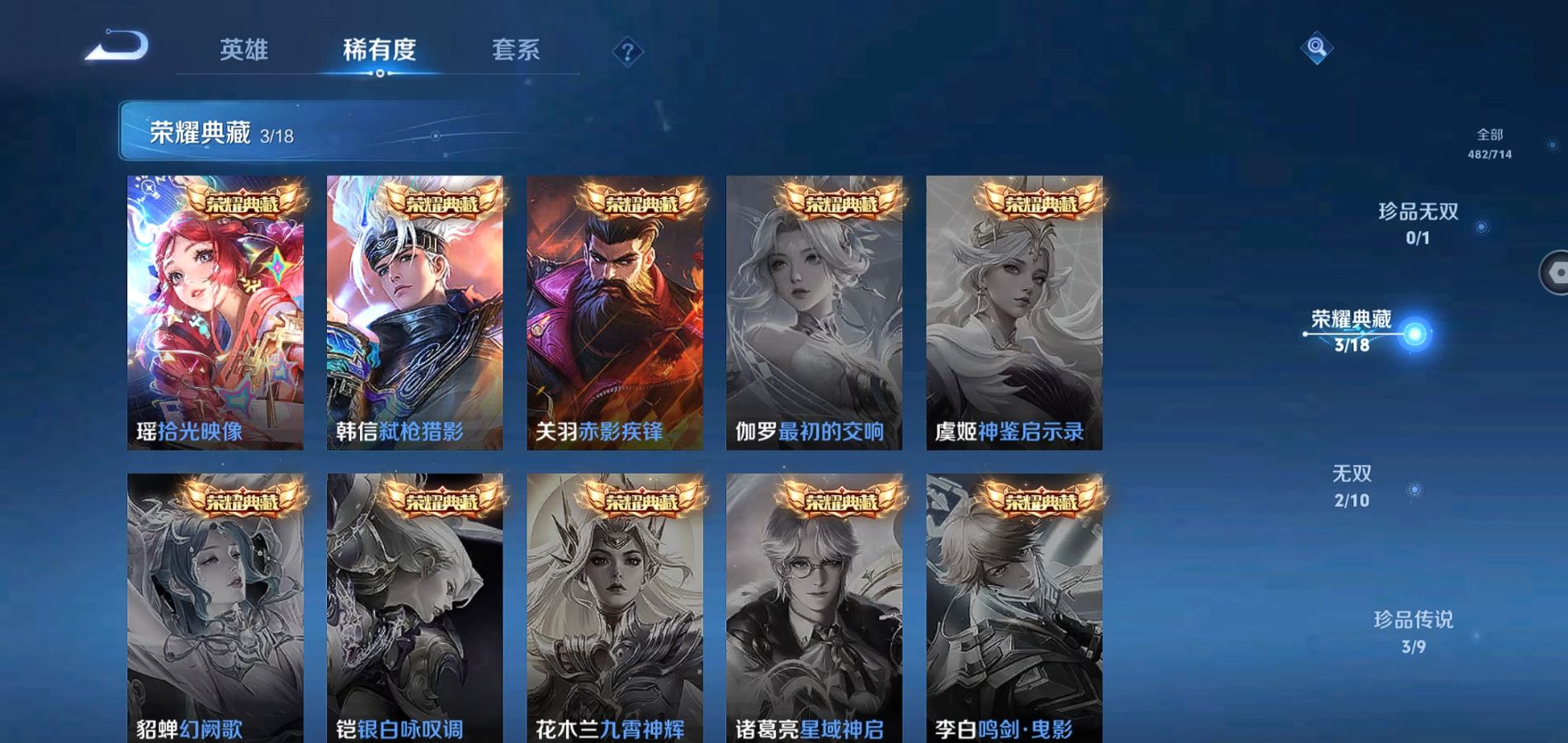 秒换绑 V10-482皮肤3典藏2无双3珍品传说58传说【典藏】拾光映像 赤影疾锋 弑枪猎影【无双】