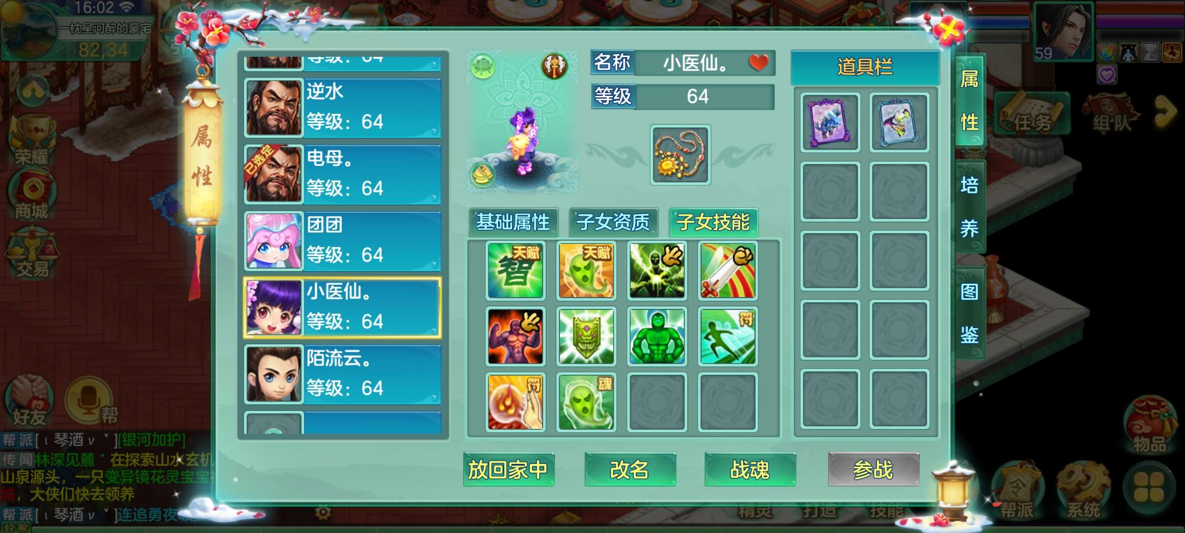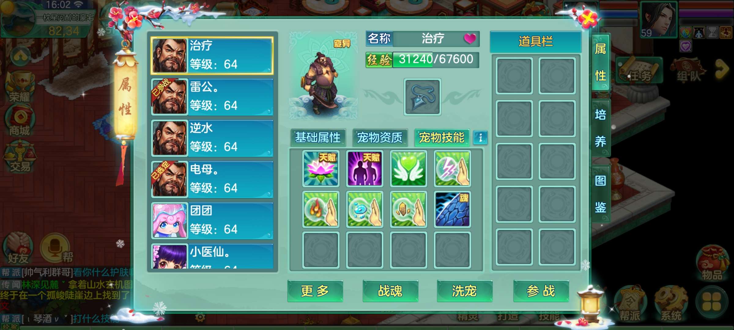 高级染色,双孩子,宝宝全高级,狗链套,精灵全了,打架擂台随便虐,一身成长链接腰带,仓库多套职业装备