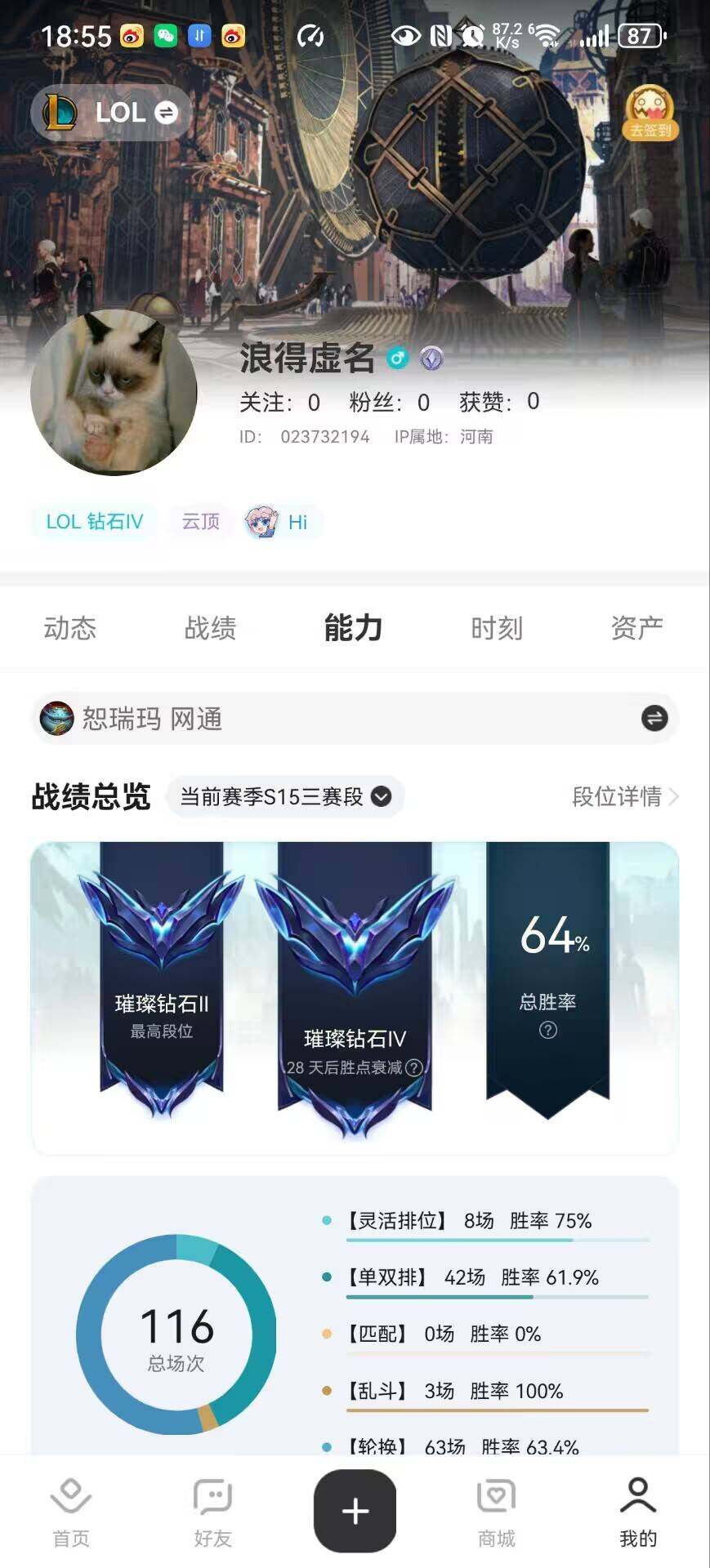 钻石段位-172英雄-224皮肤-69炫彩-1终极-3神话-33限定-22传说-72史诗