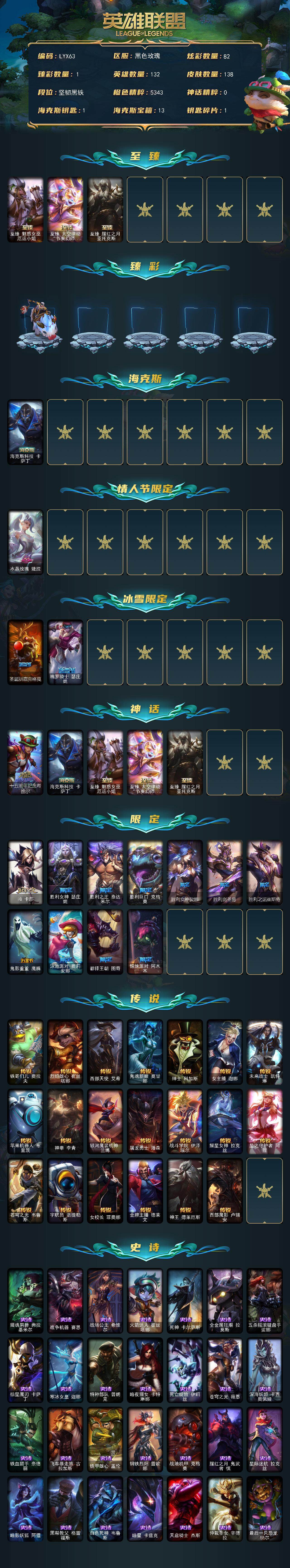 未定级段位-132英雄-138皮肤-82炫彩-0终极-5神话-14限定-20传说-35史诗