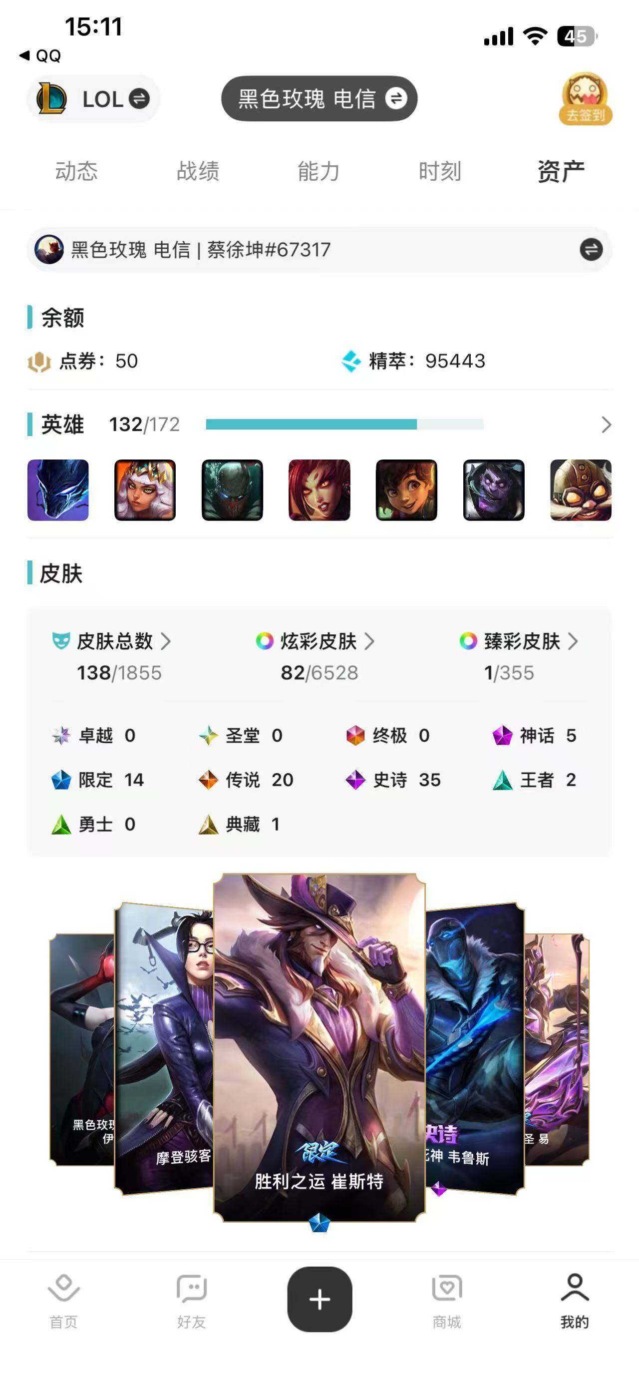 未定级段位-132英雄-138皮肤-82炫彩-0终极-5神话-14限定