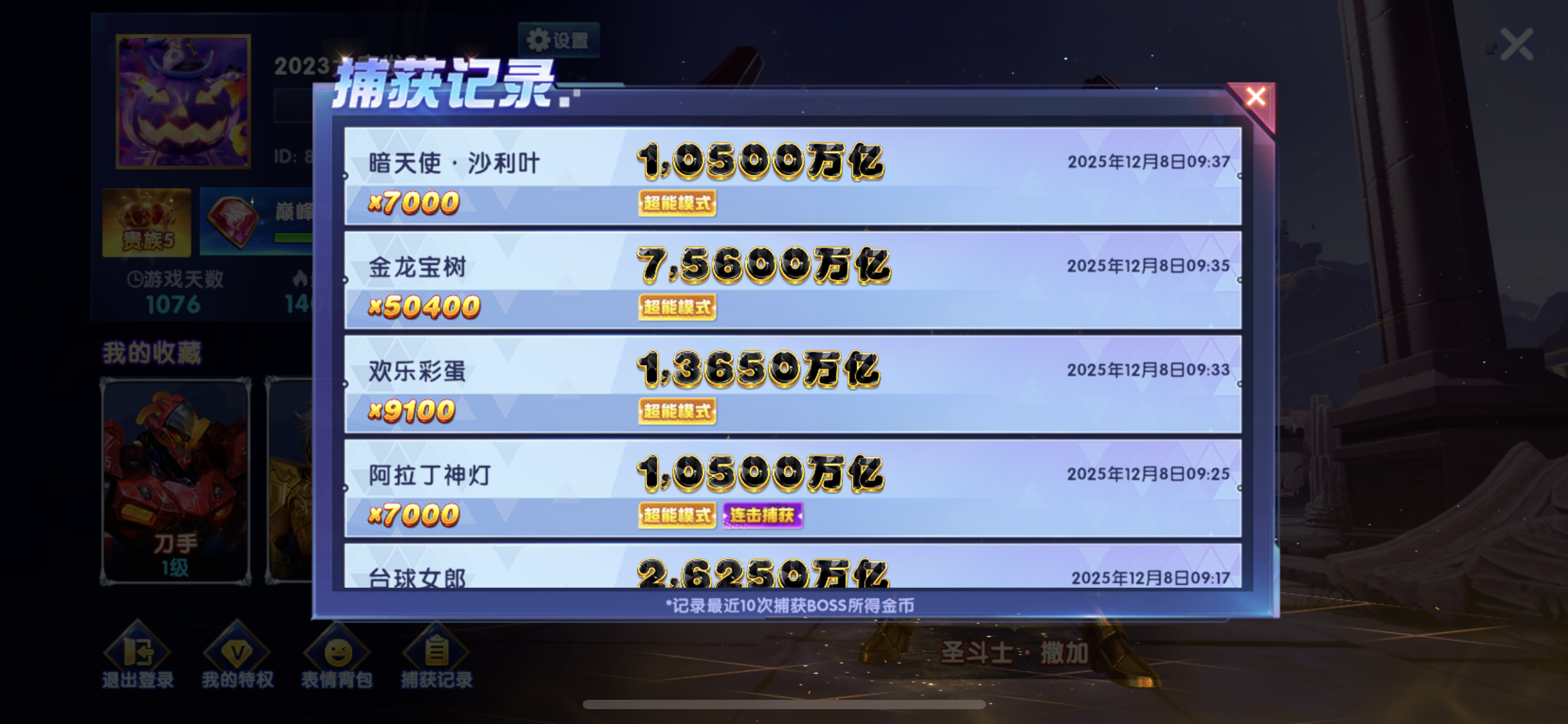 自己玩的号只是小小的v5,金币多,爆率高,过手瘾,道具多的数不过来