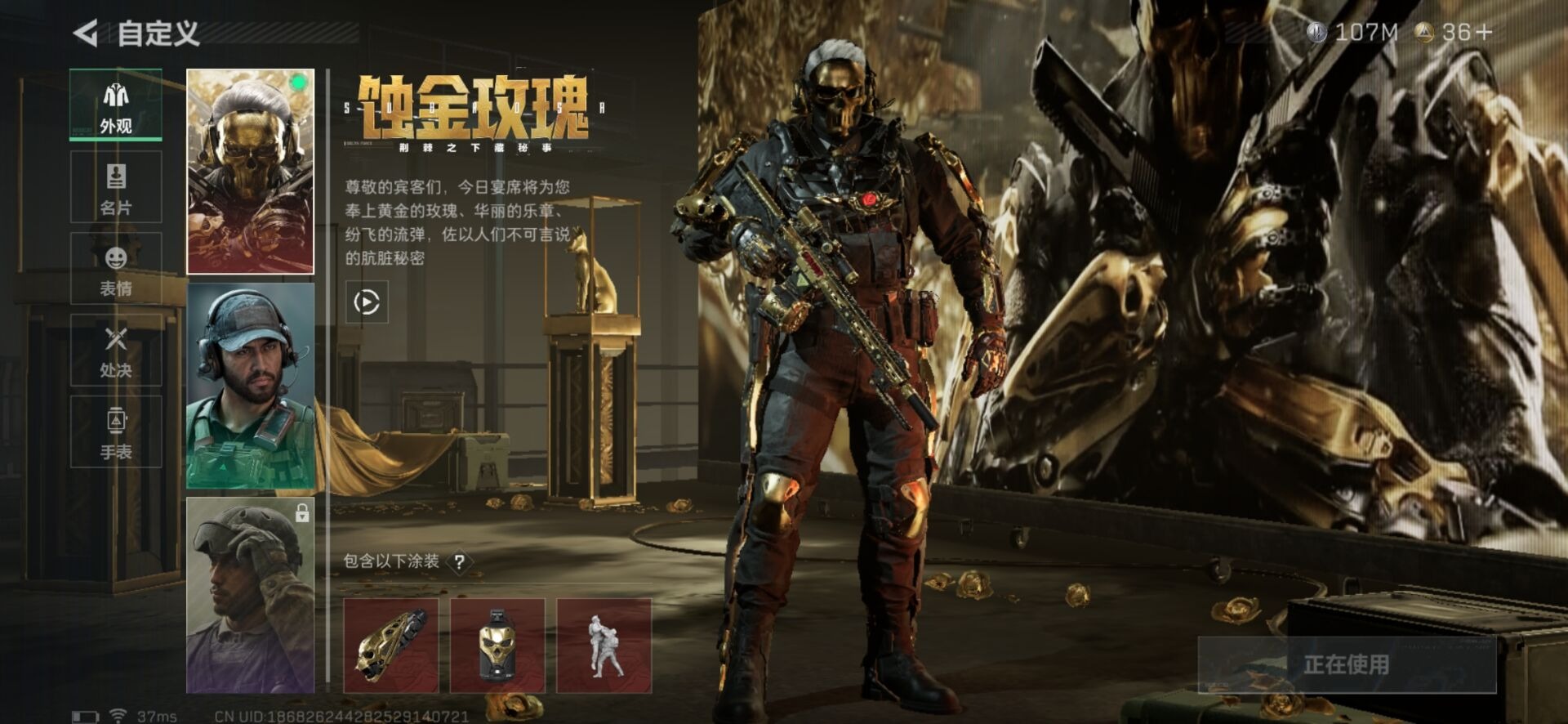 总资产:256.2M 1干员外观 1近战传说 13传说枪械 哈夫币:107K 可二次 可修改实名