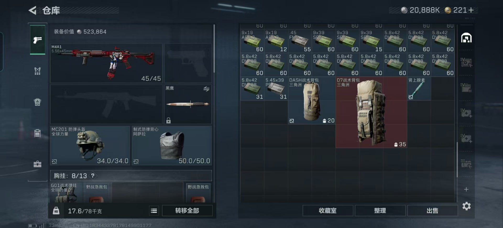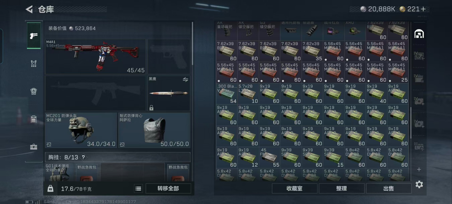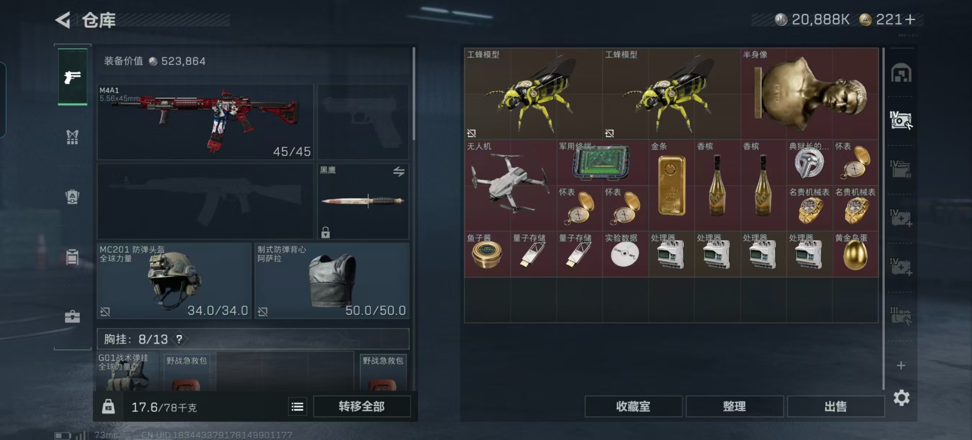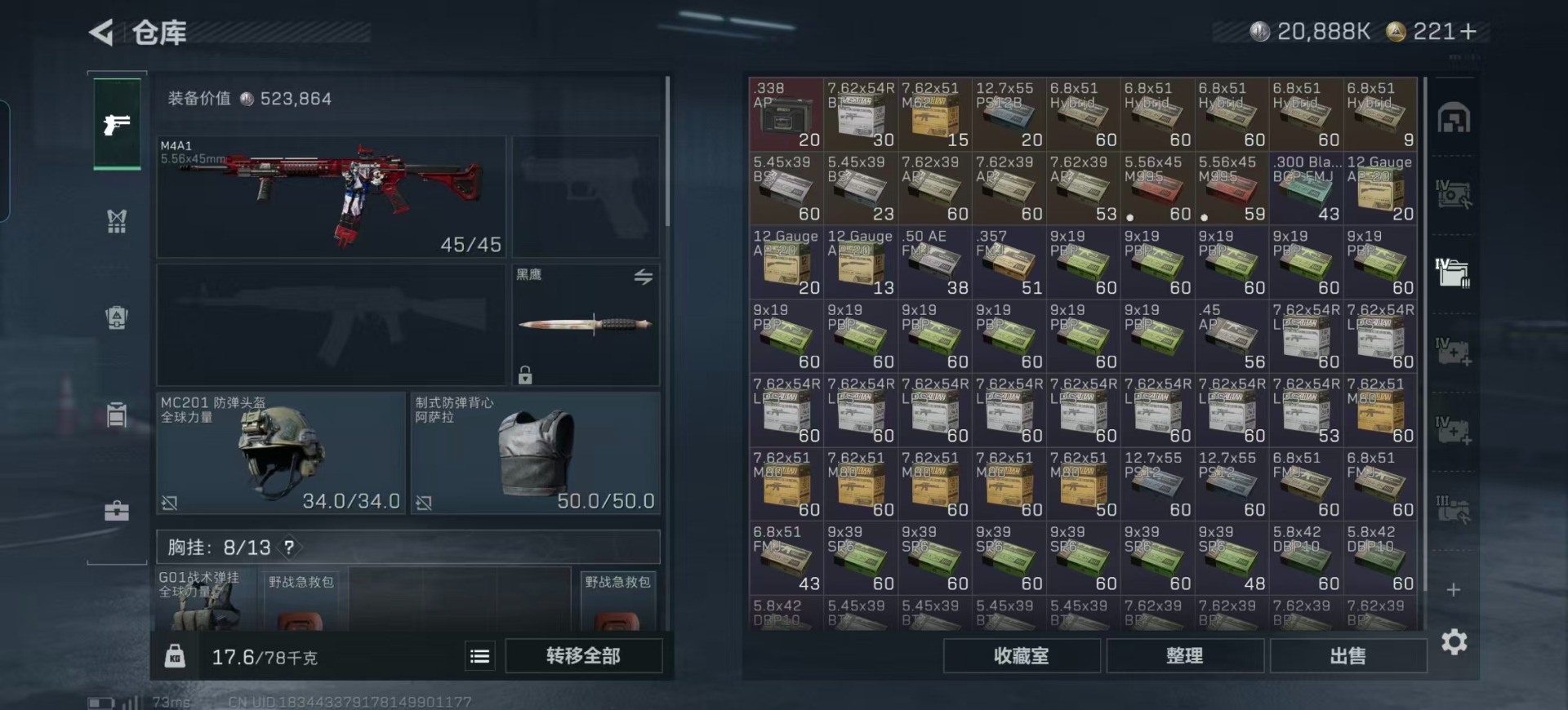 总资产:134.4M 1干员外观 12传说枪械 哈夫币:20.888K 可二次 可修改实名
