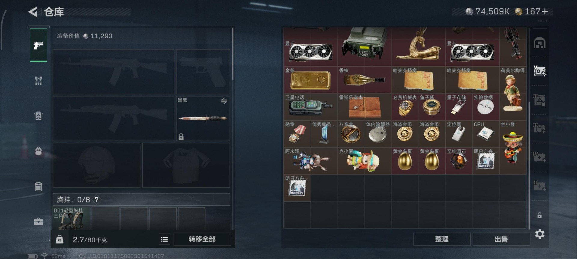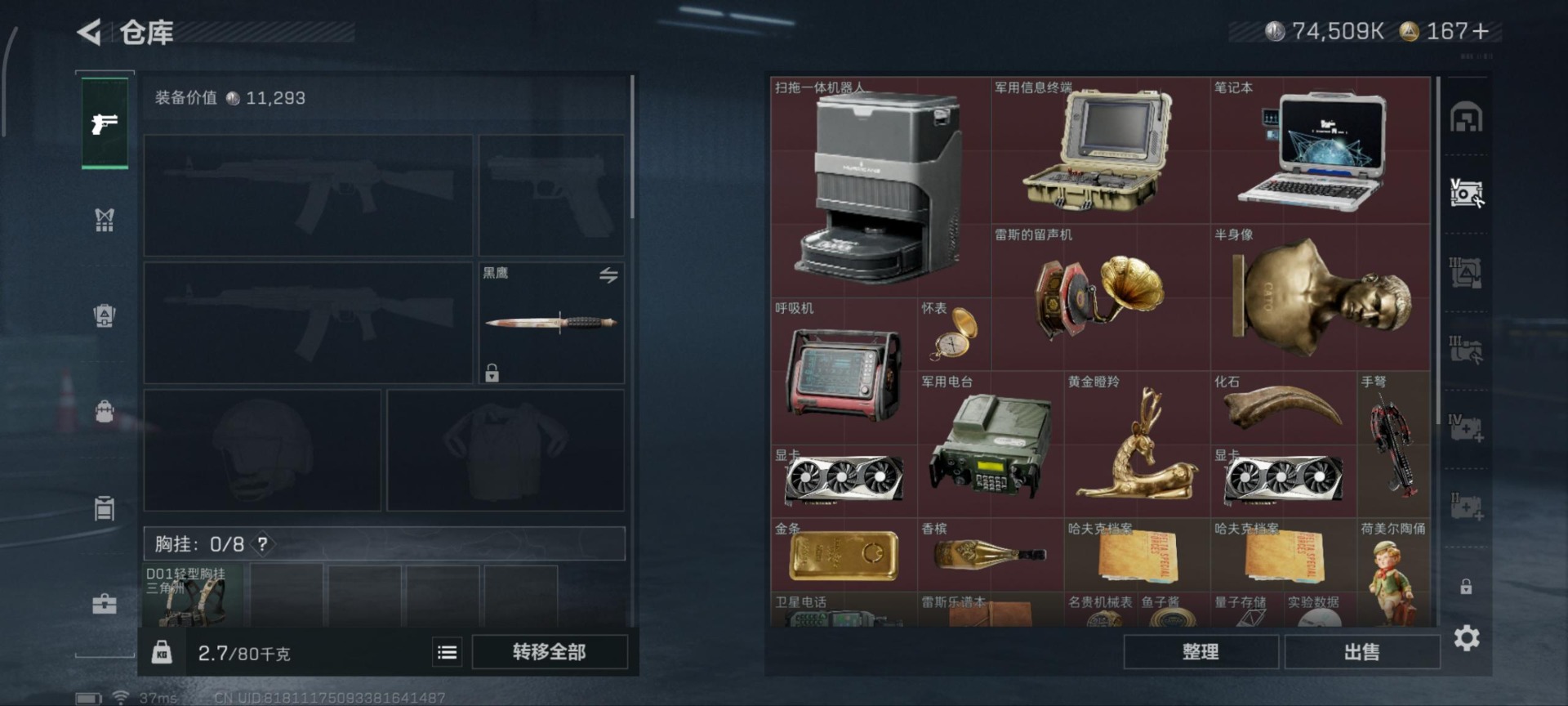 总资产:144.5M 2干员外观 9传说枪械 哈夫币:74.509K 可二次 可修改实名