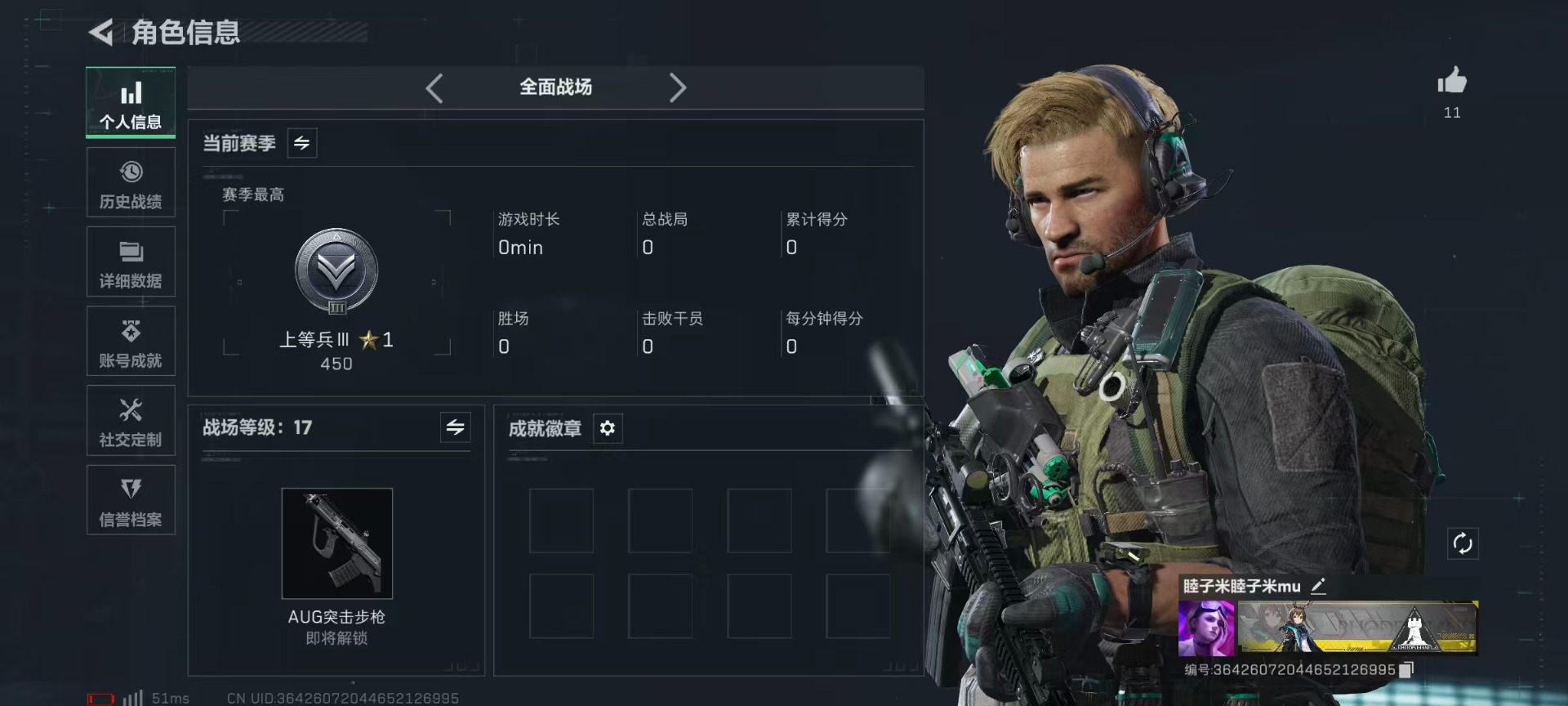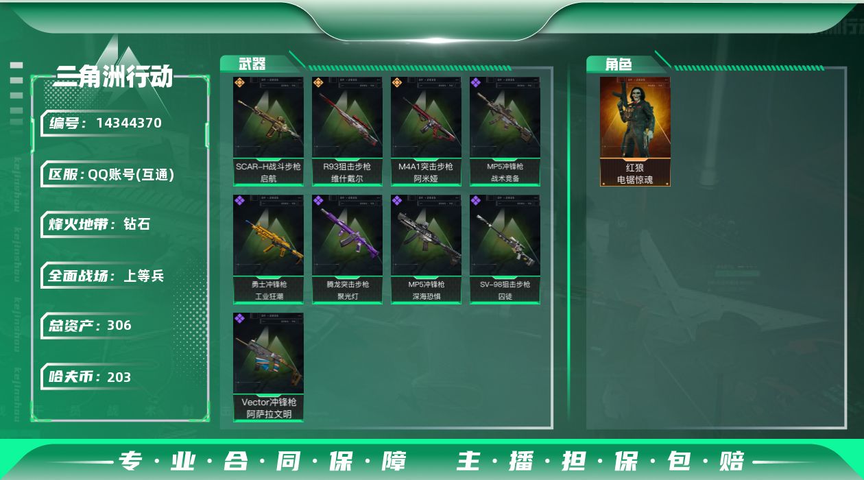 总资产:306.4M 1干员外观 3传说枪械 哈夫币:203K 可二次 可修改实名
