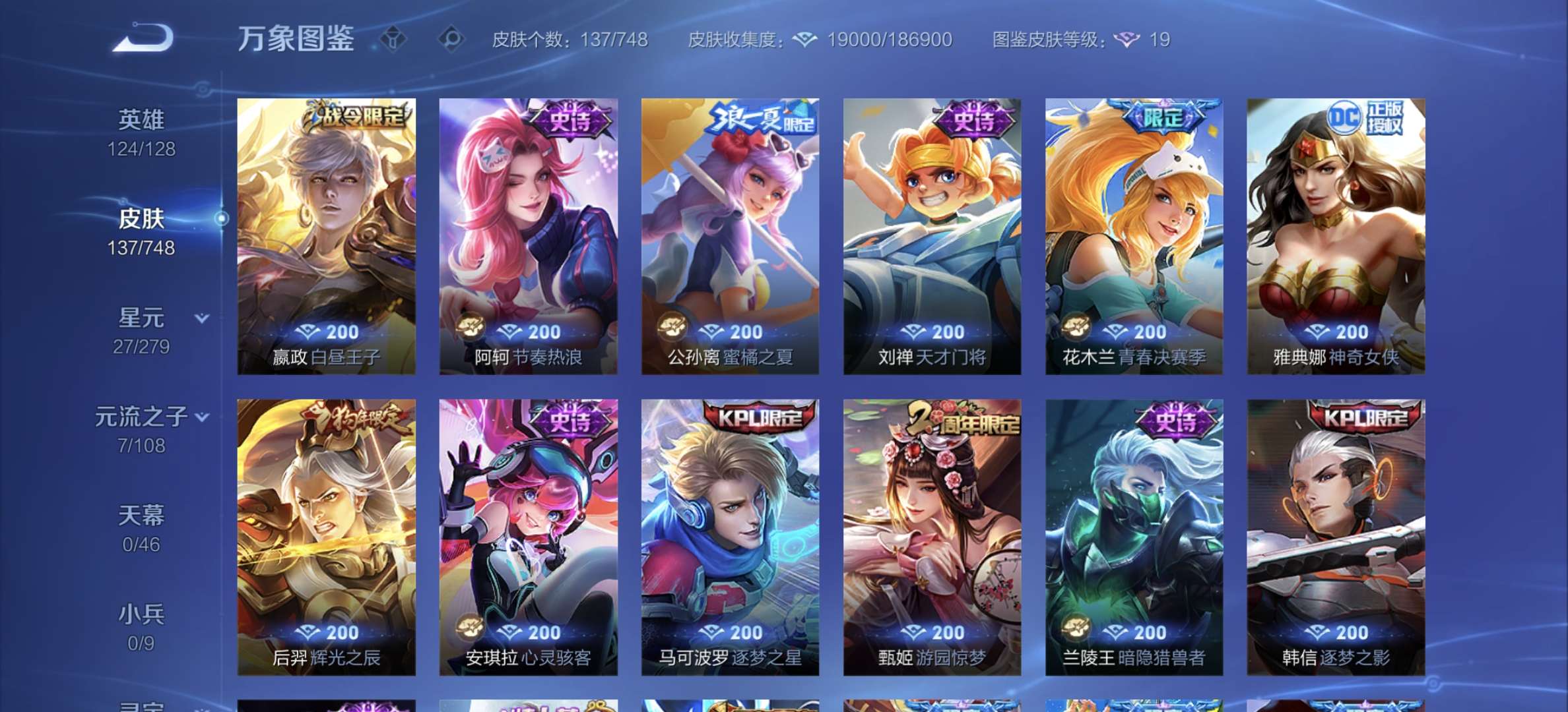 安卓QQ-7传说-137皮肤-124英雄-非凡王者-王者荣耀有白虎志要的来贵族七绝对不亏