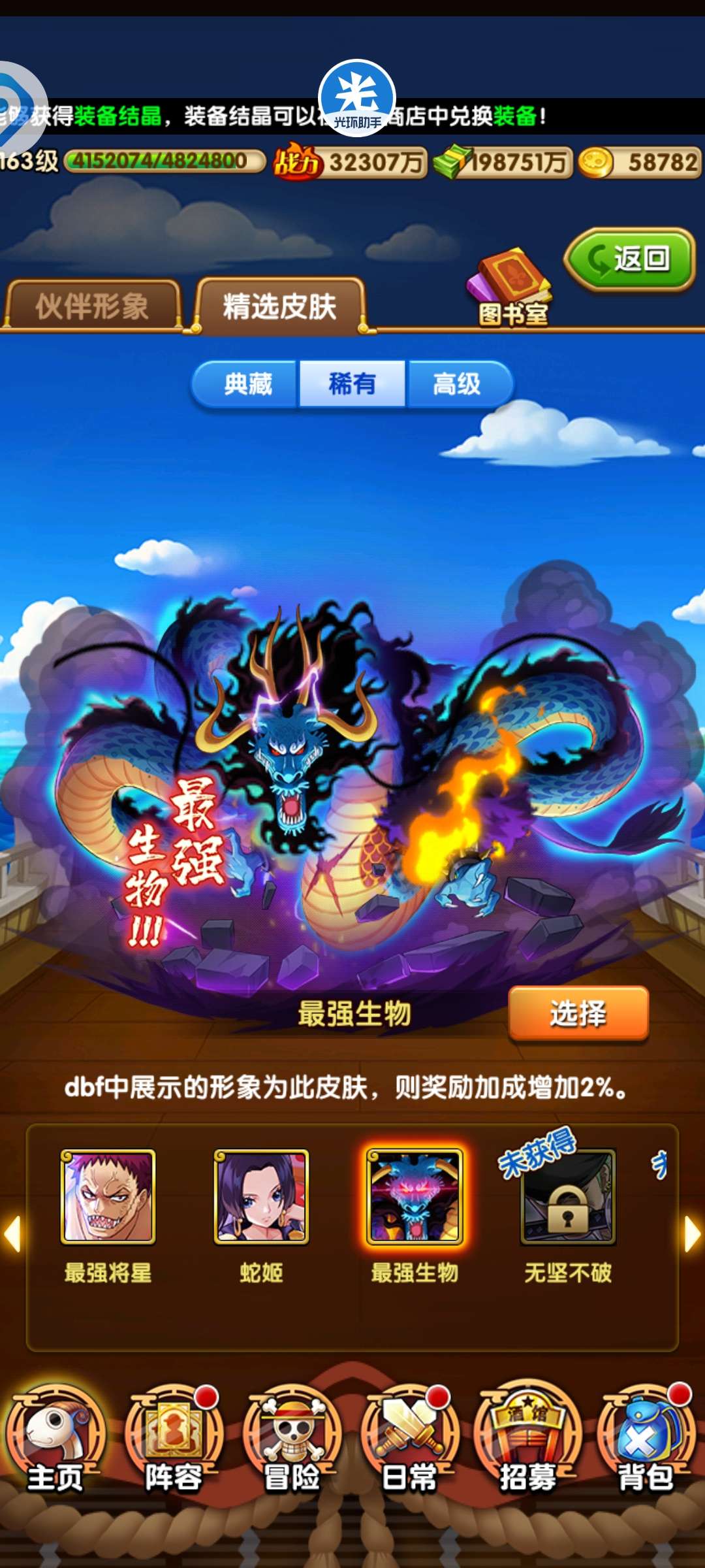 绝美的女帝典藏皮肤,稀有称号,凯多青龙皮肤和稀有称号,但是没有金船和环境卡,就是卖个皮肤称号钱