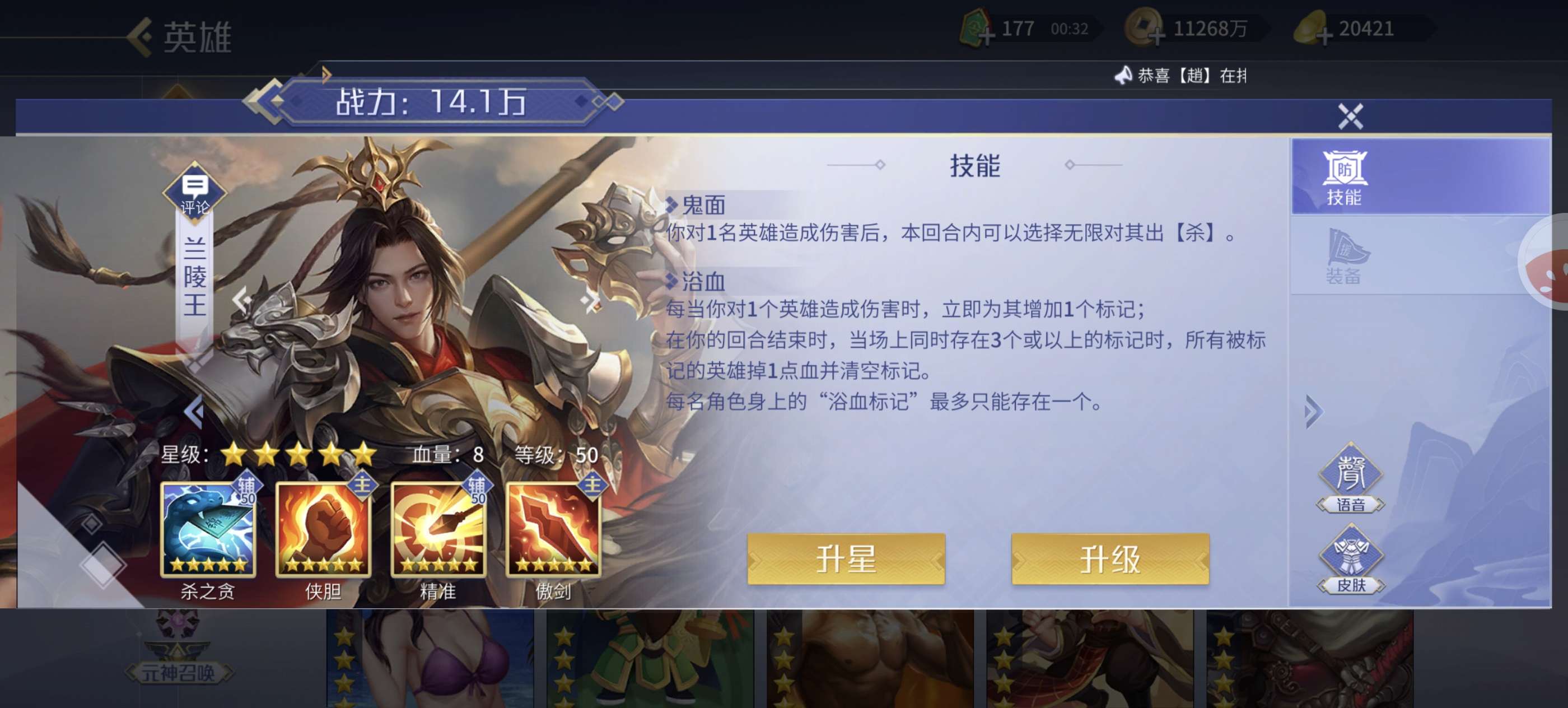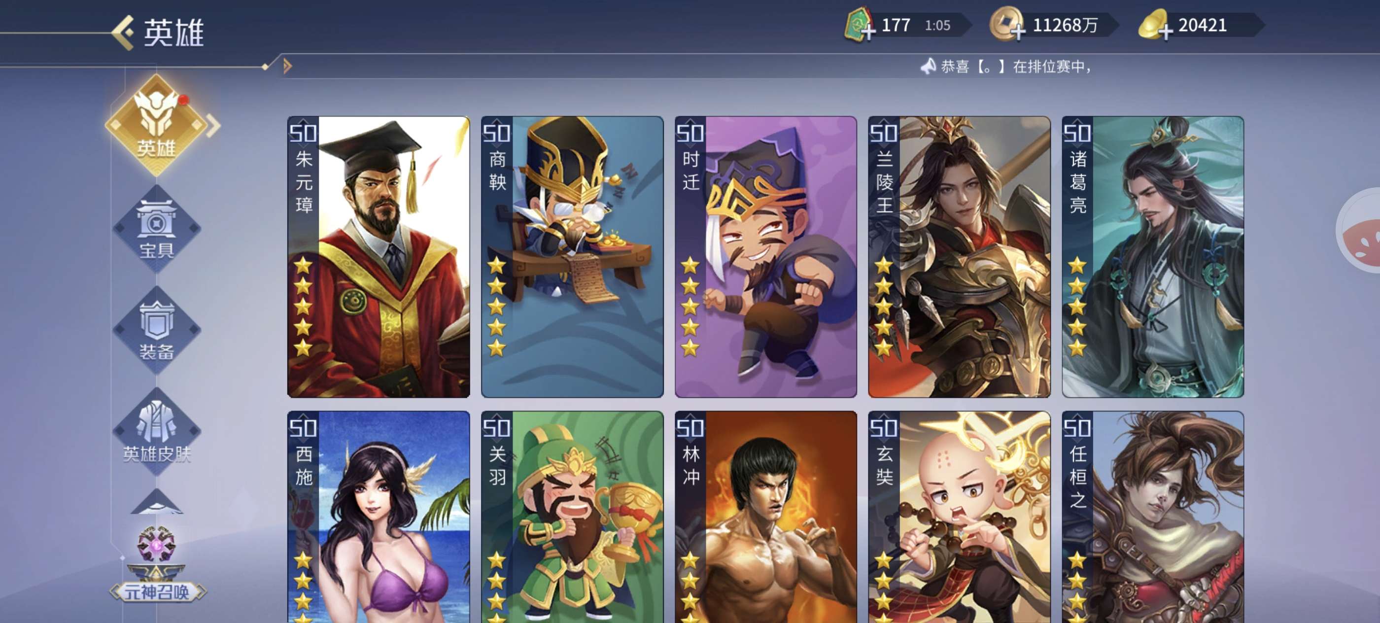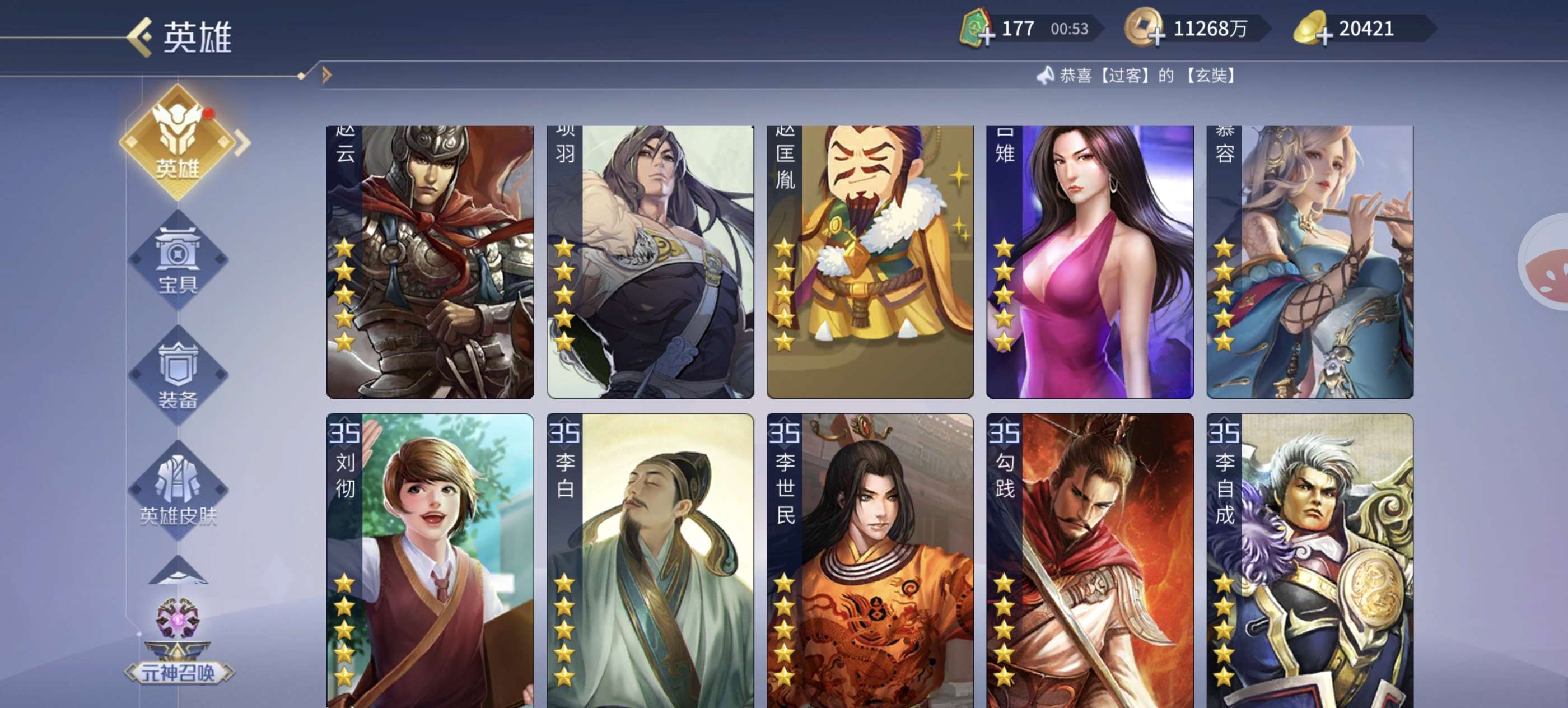 顶配商偷浪兰朱,四星鸡和芈,两万多元宝,下次出芈月就毕业。6侠3傲3蝶3控2豹4驭4强化,