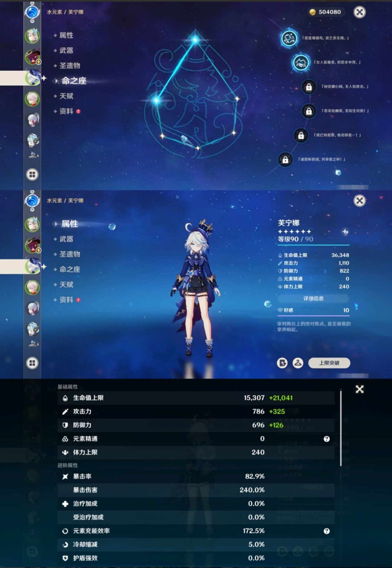 61龙王21恰斯卡20芙芙31绫人,杜林菈乌玛伊涅芙能组三队,左右