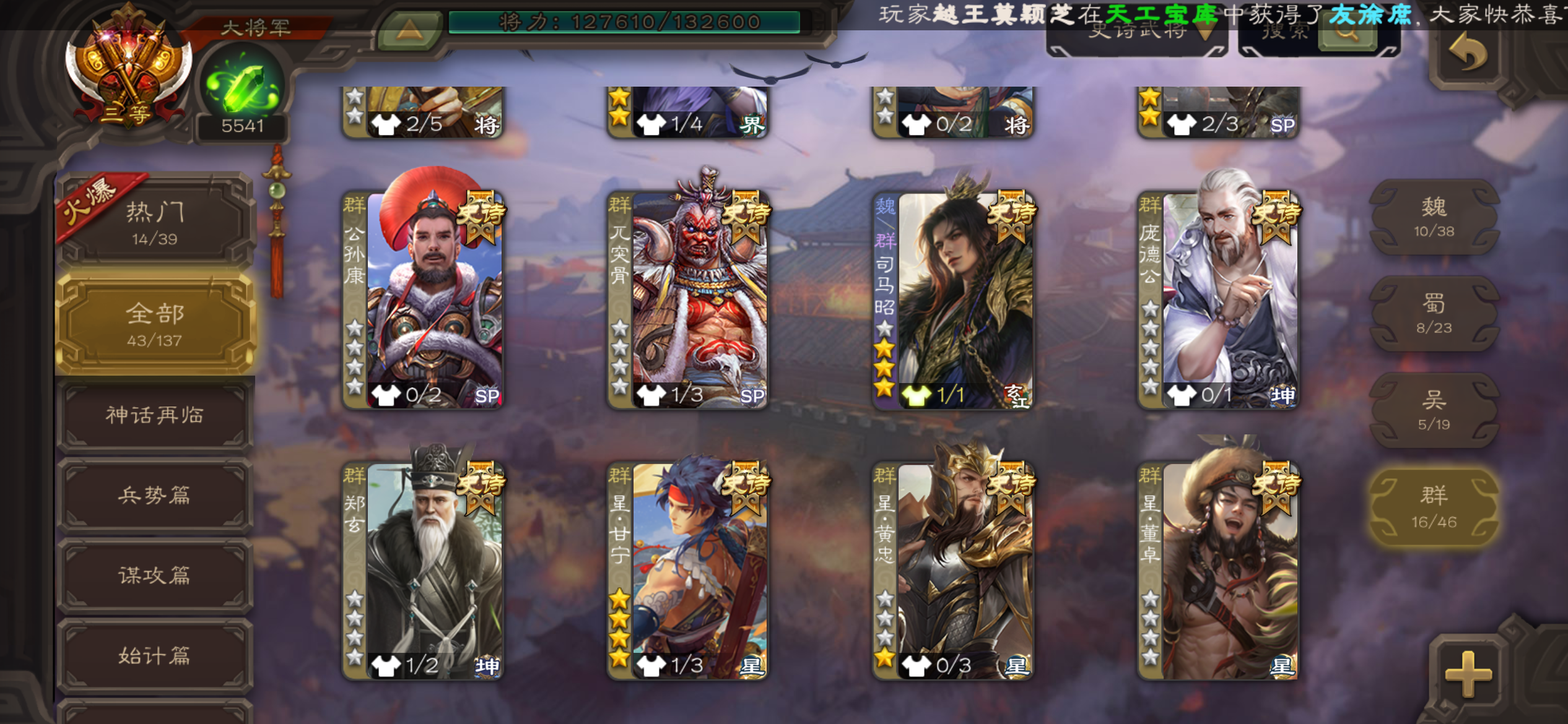 史诗武将数量: