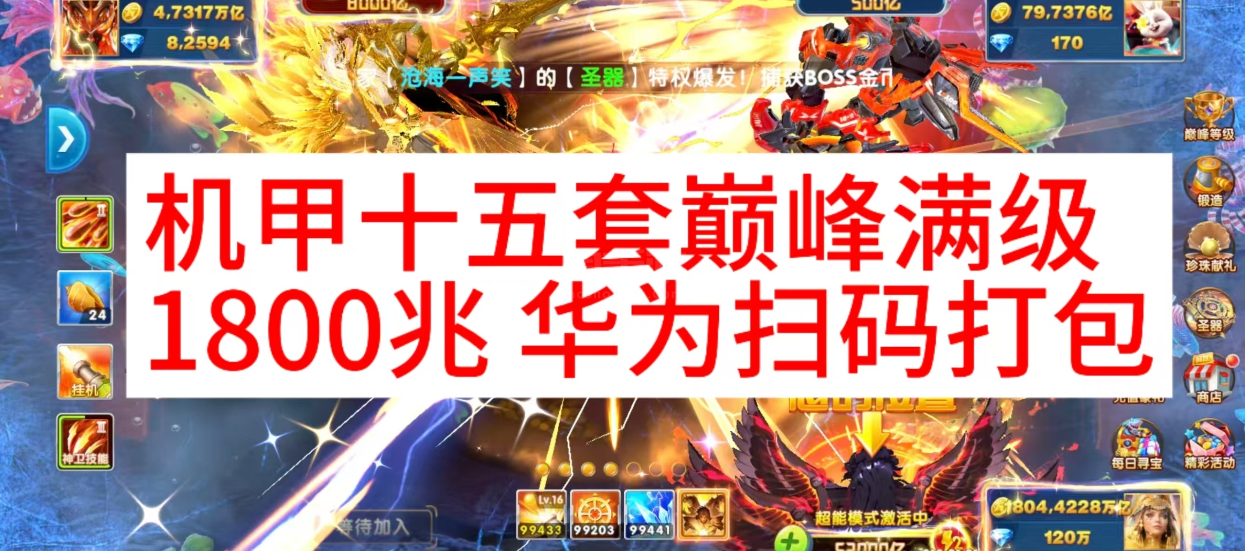 机甲十五套巅峰满级 1800兆 华为扫码打包纯玩