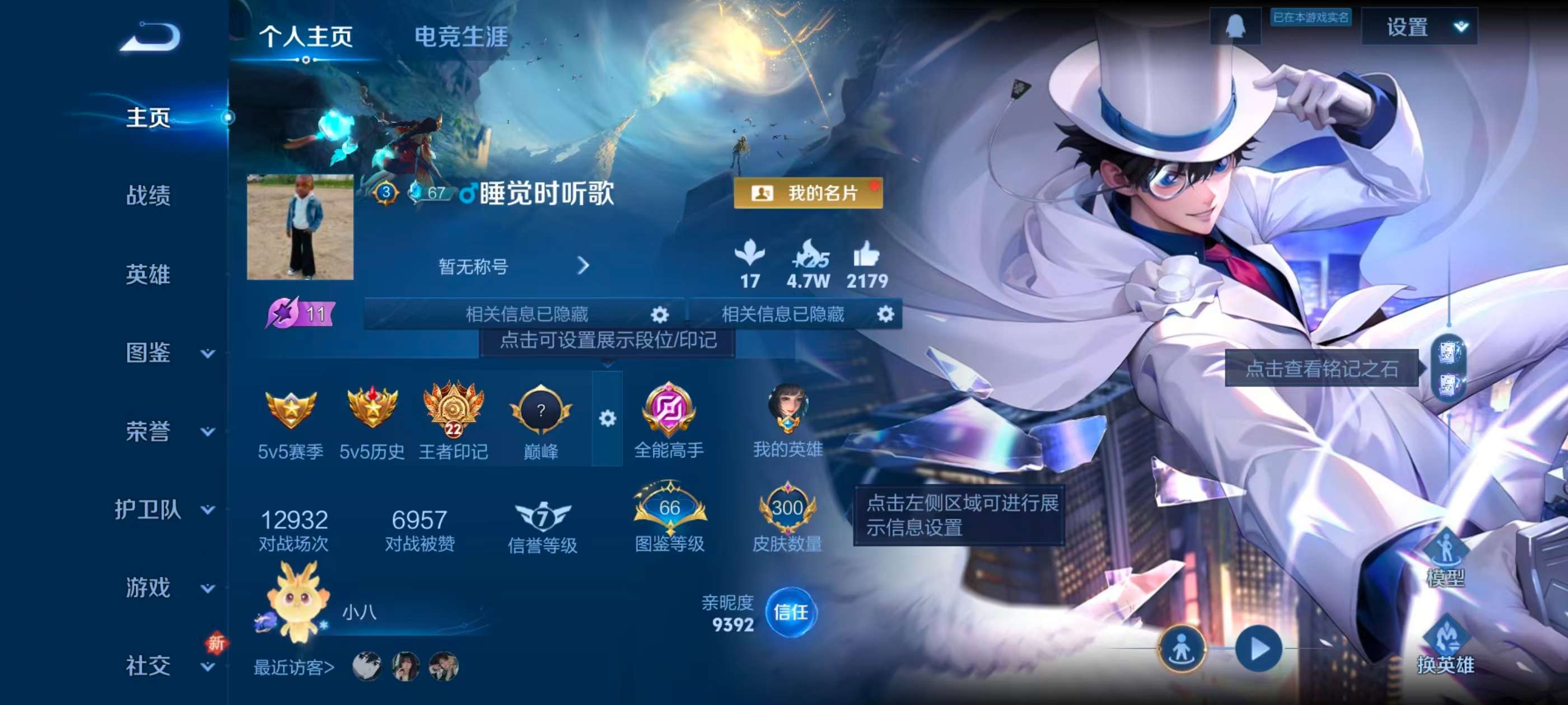 安卓QQ/最强王者/300皮肤/123英雄/1典藏/0珍品无双/0无双/2珍品传说/9传说/76史诗