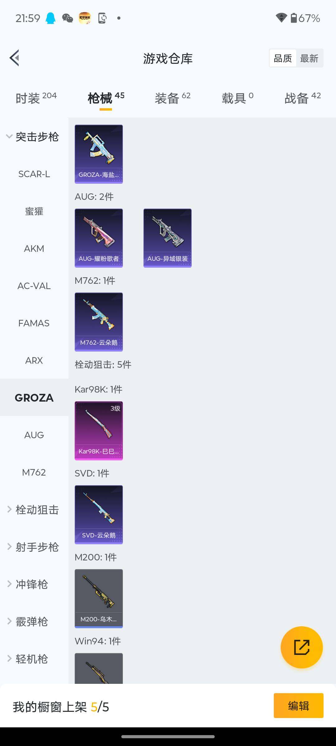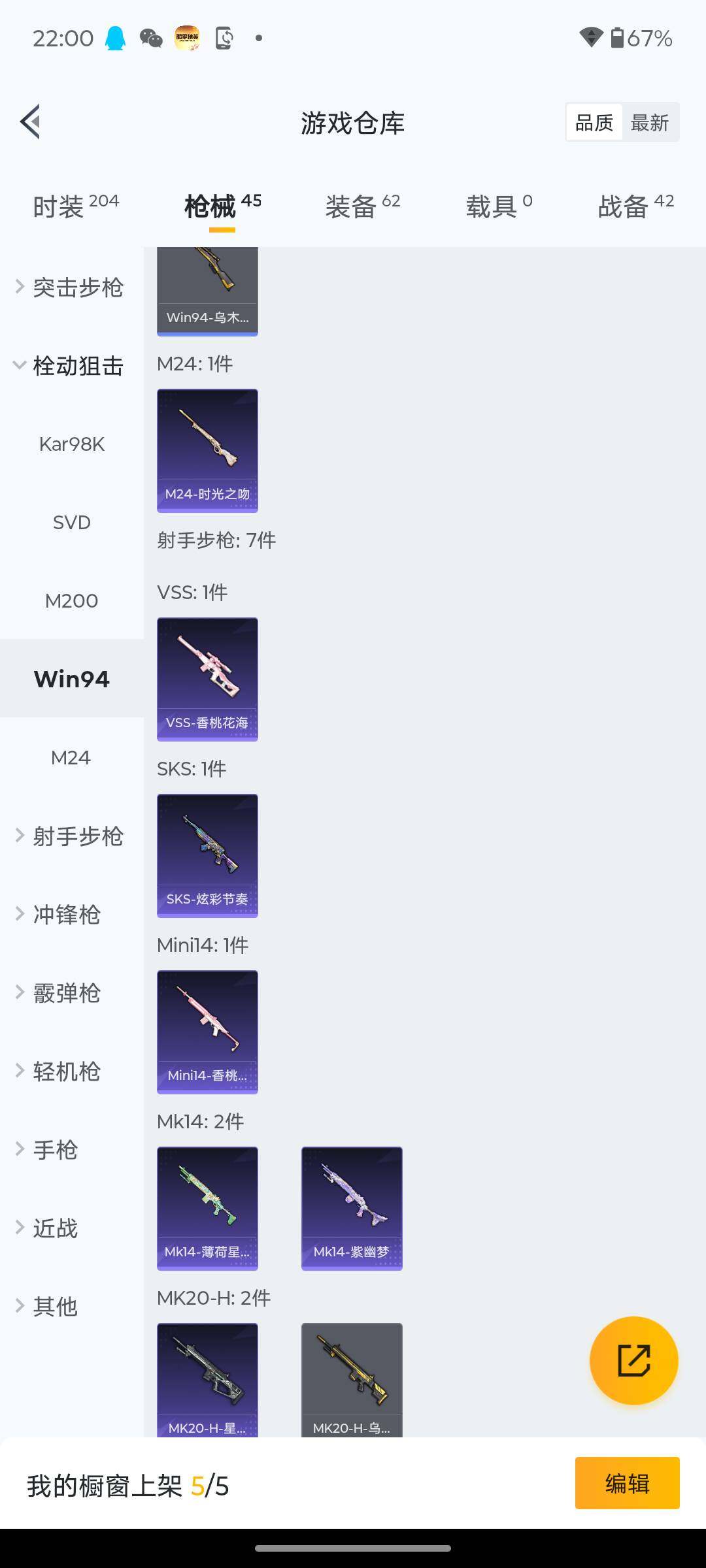 【粉色枪皮等级】:Kar98K-巳巳如意(三级),DP-28-豹影疾电(五级)
