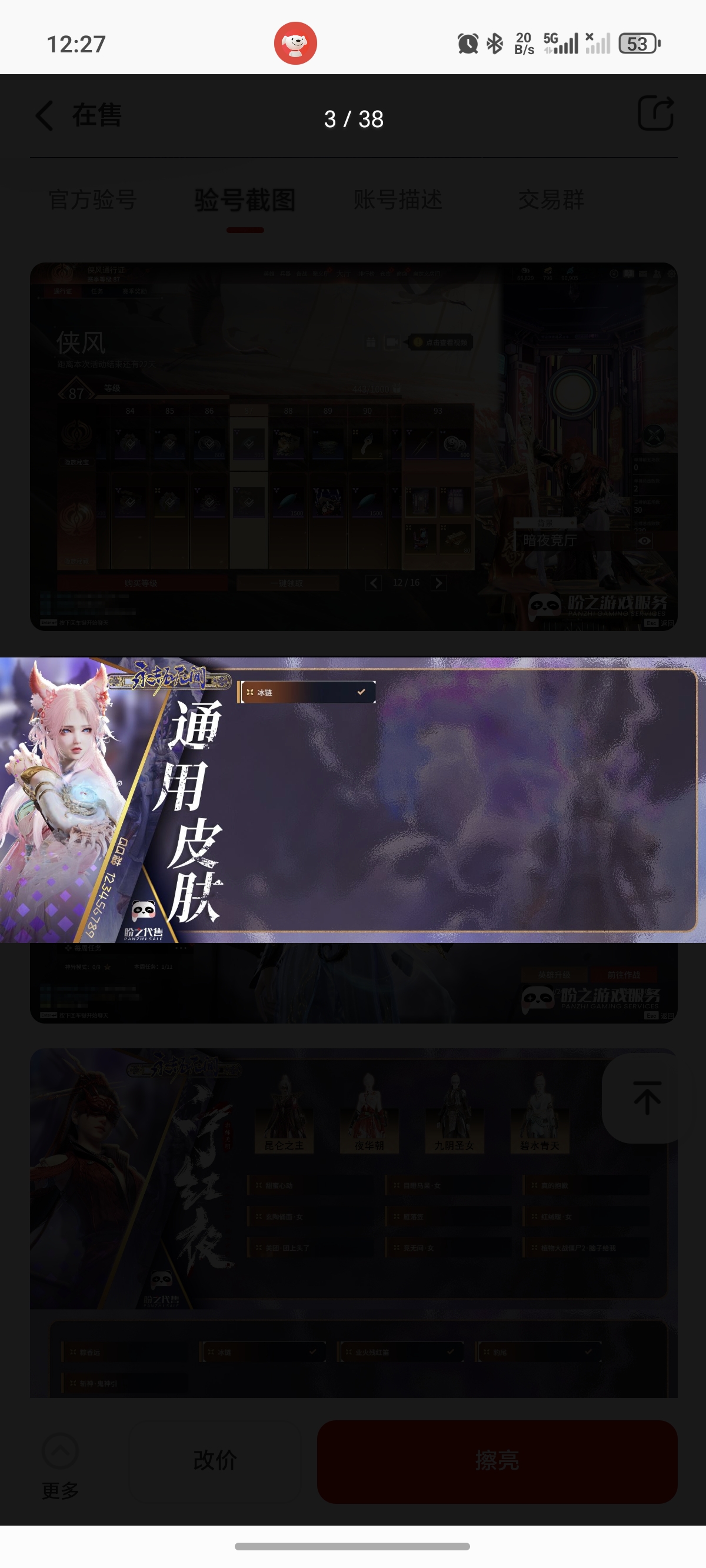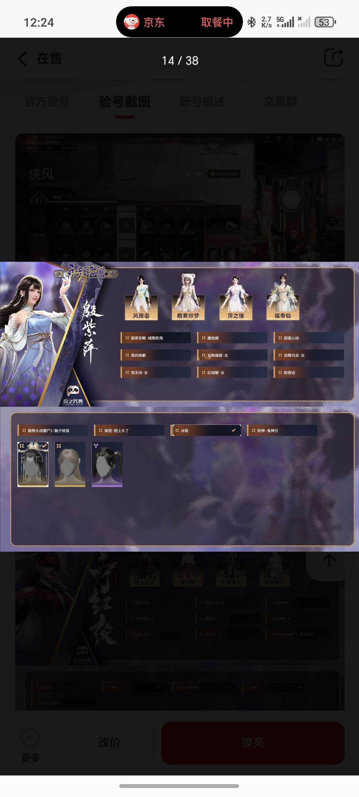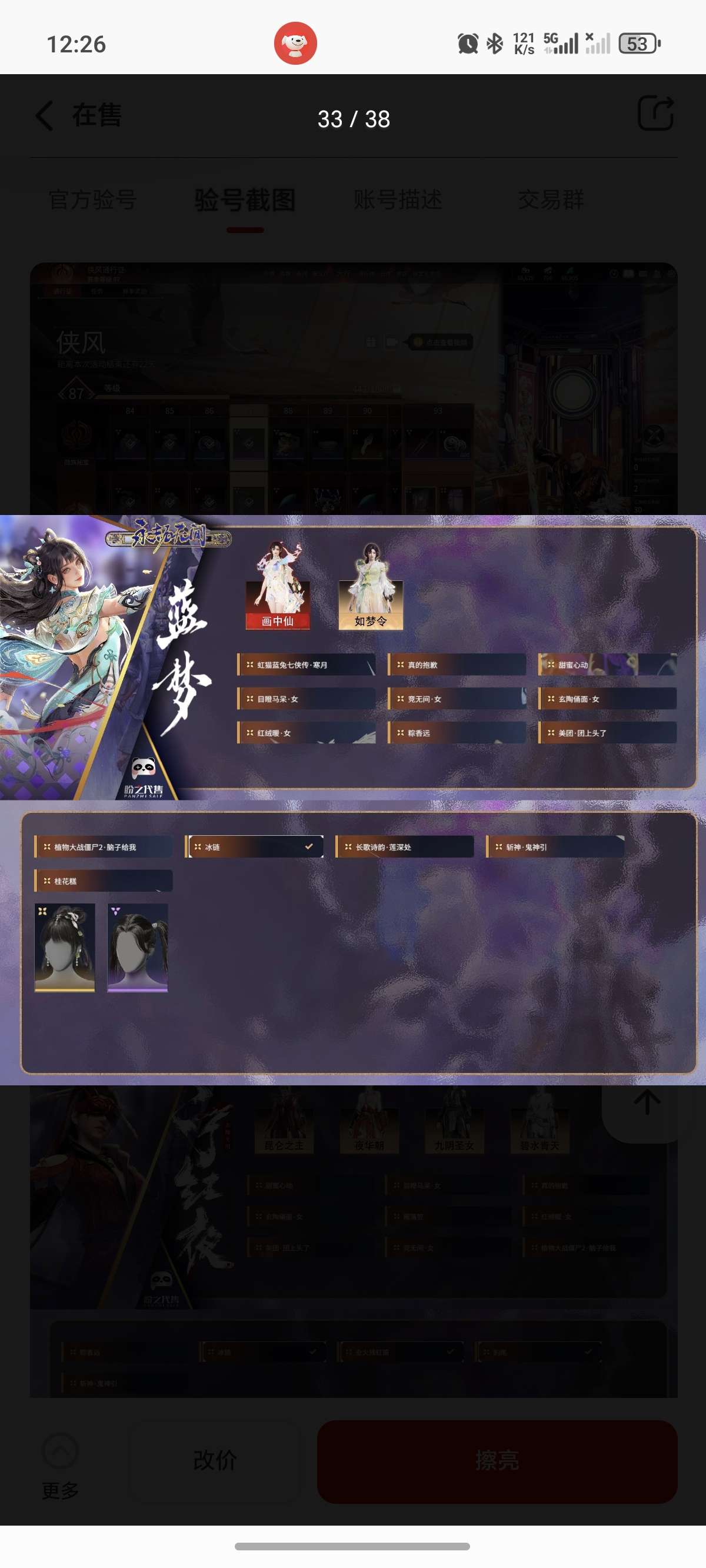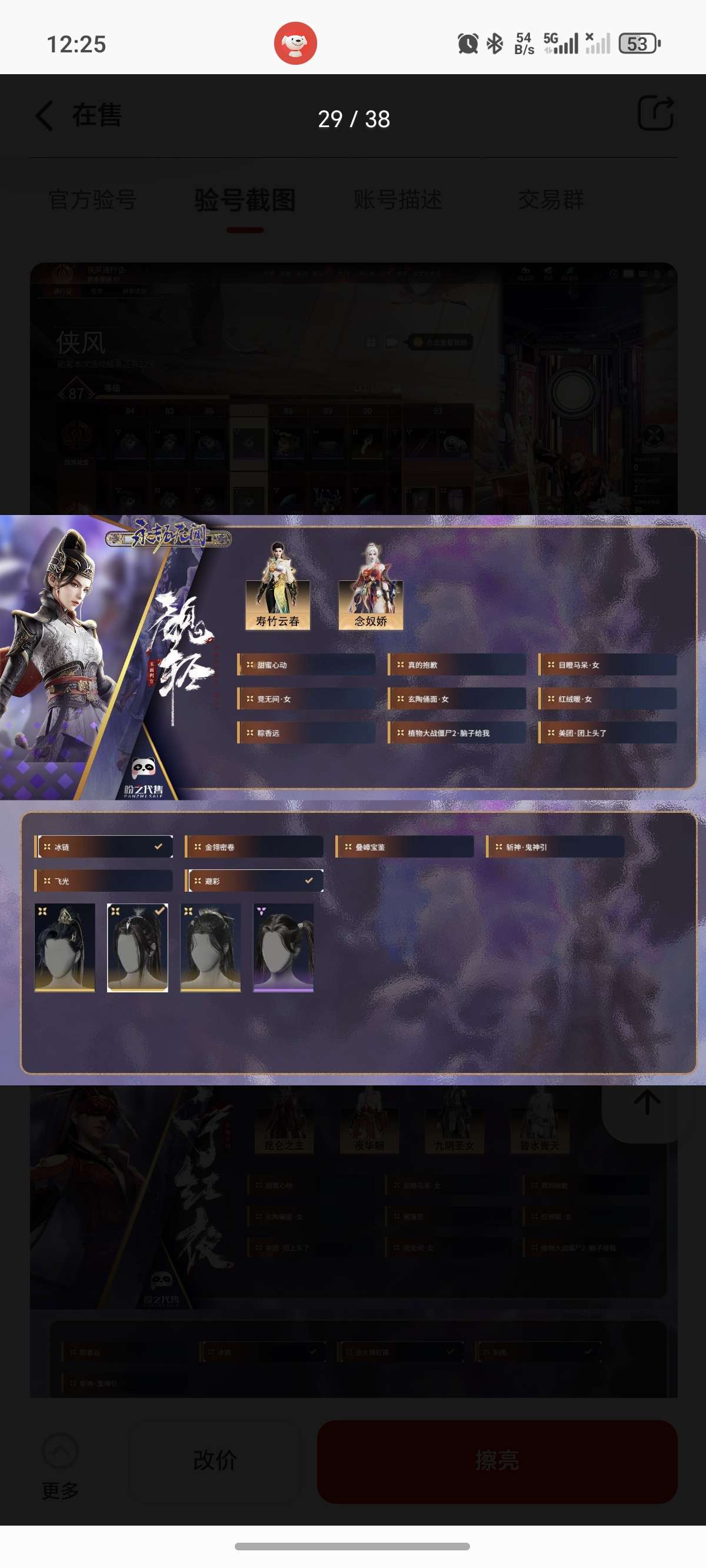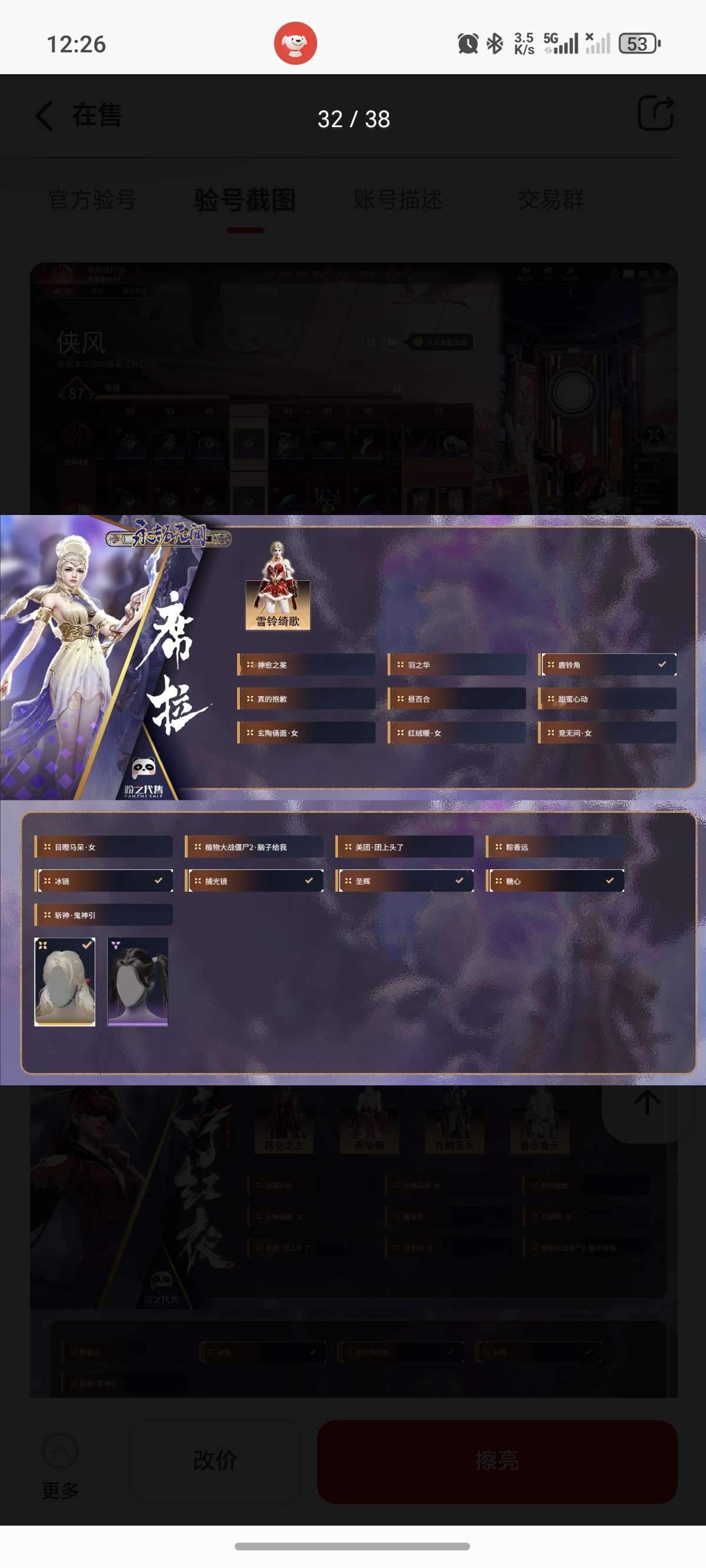 通过App,与卖家商议价格及保险,并向卖家索要账号最新截图,确认后下单购买。