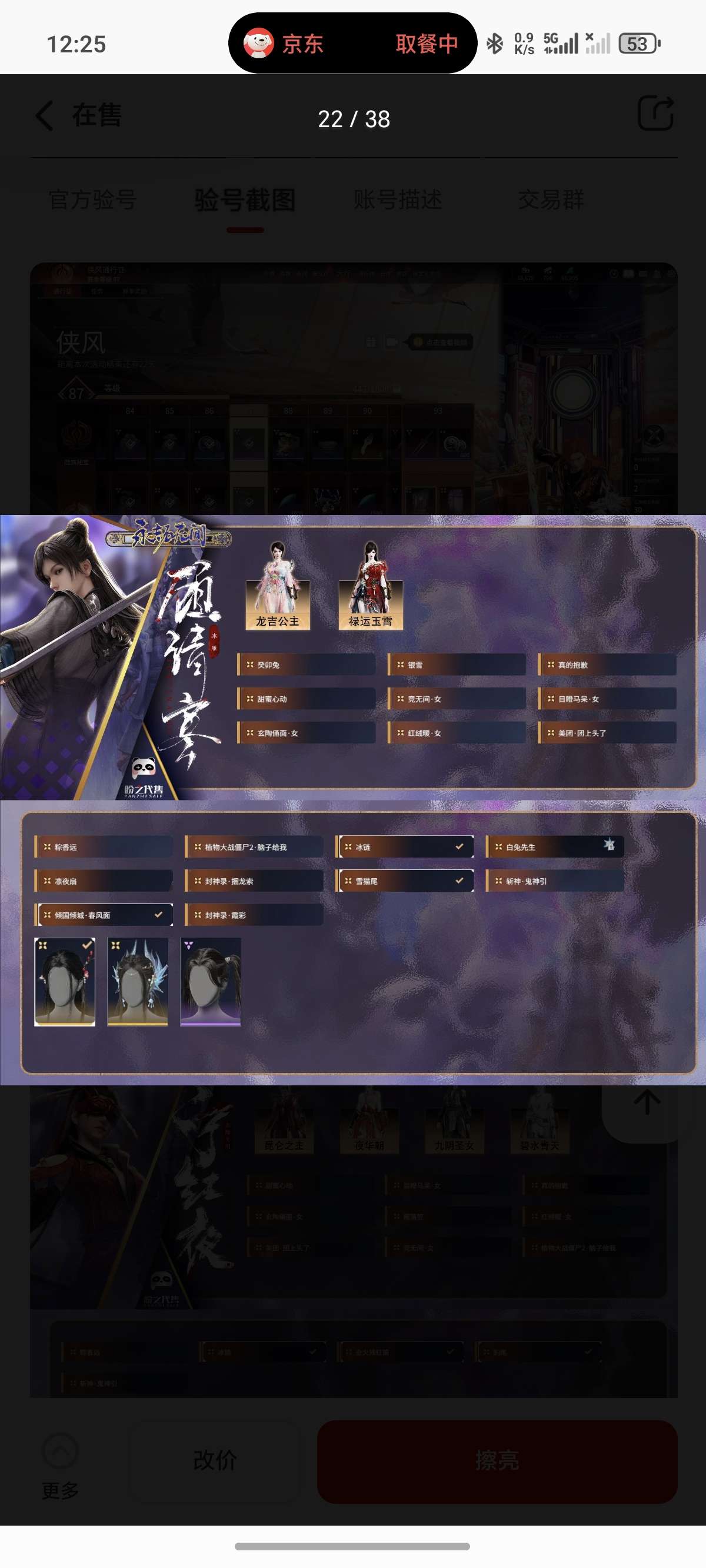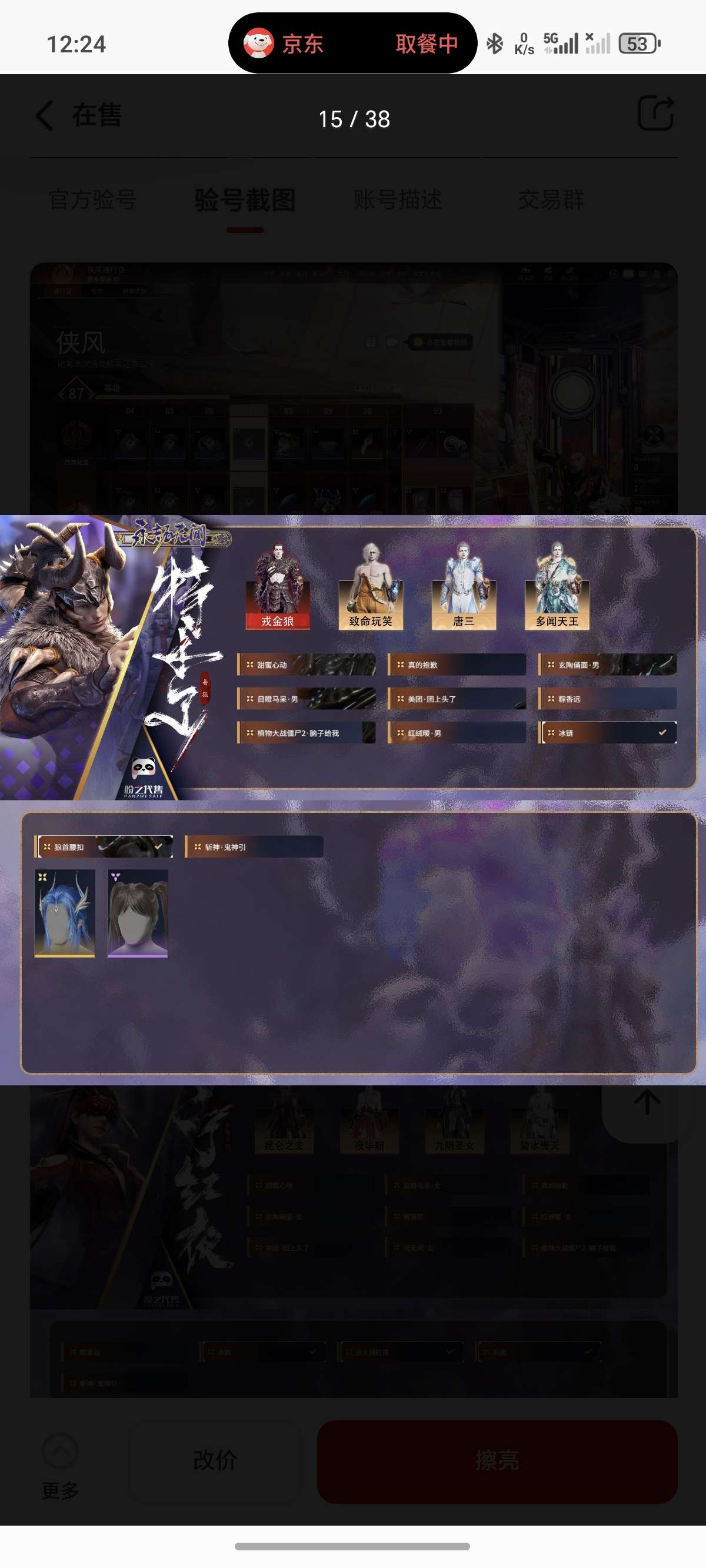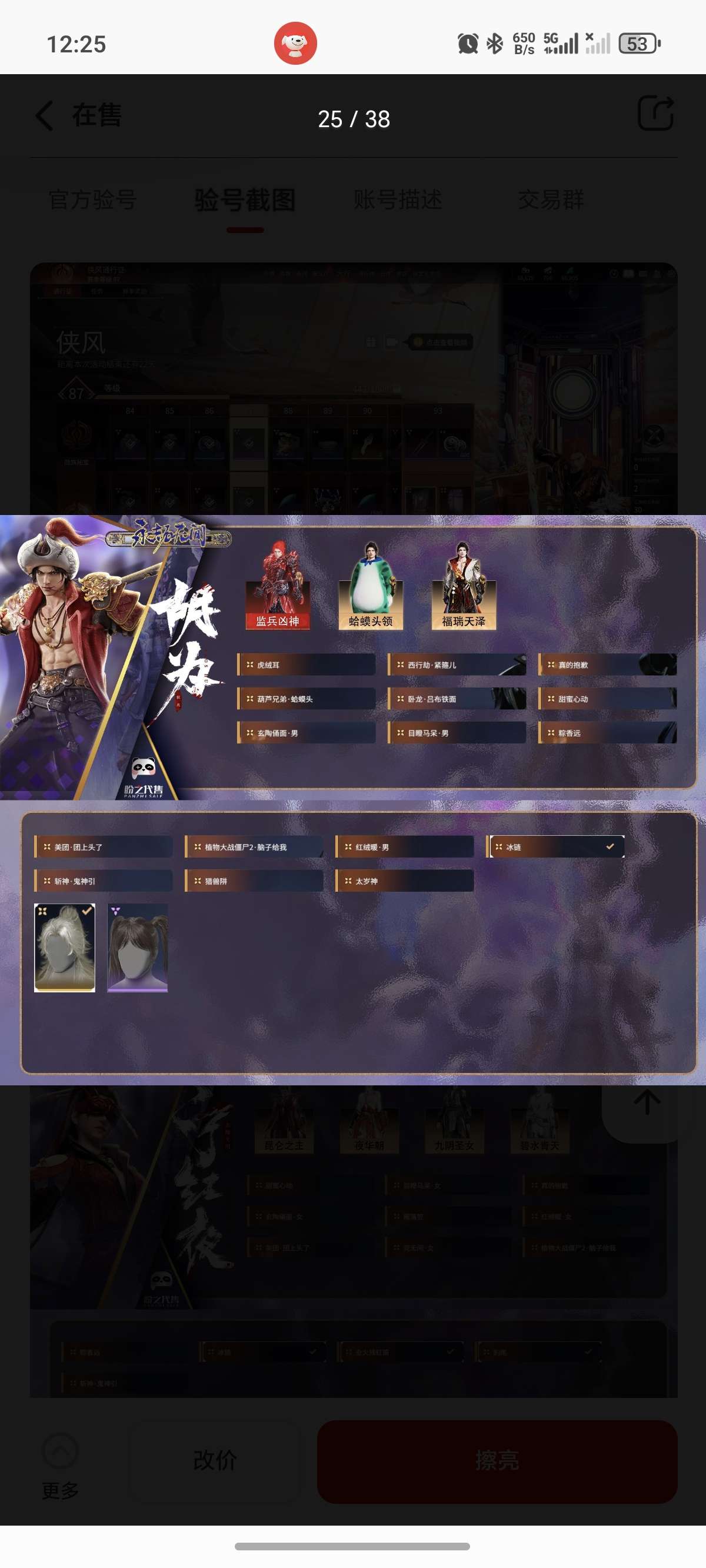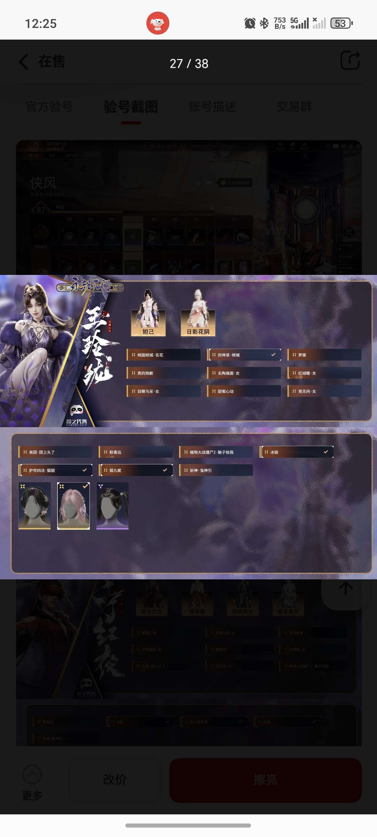 通过App,与卖家商议价格及保险,并向卖家索要账号最新截图,确认后下单购买。