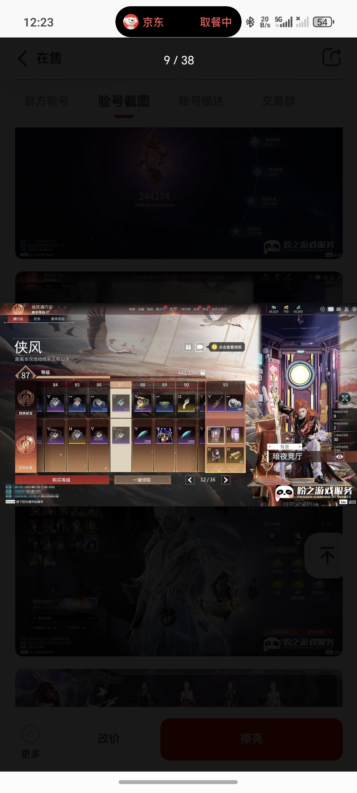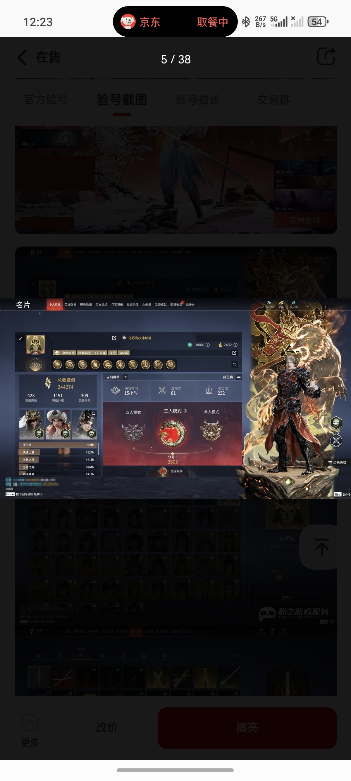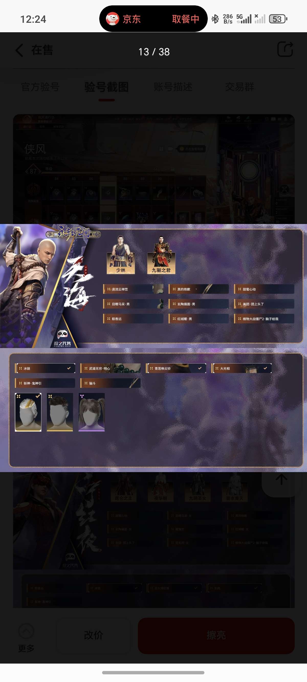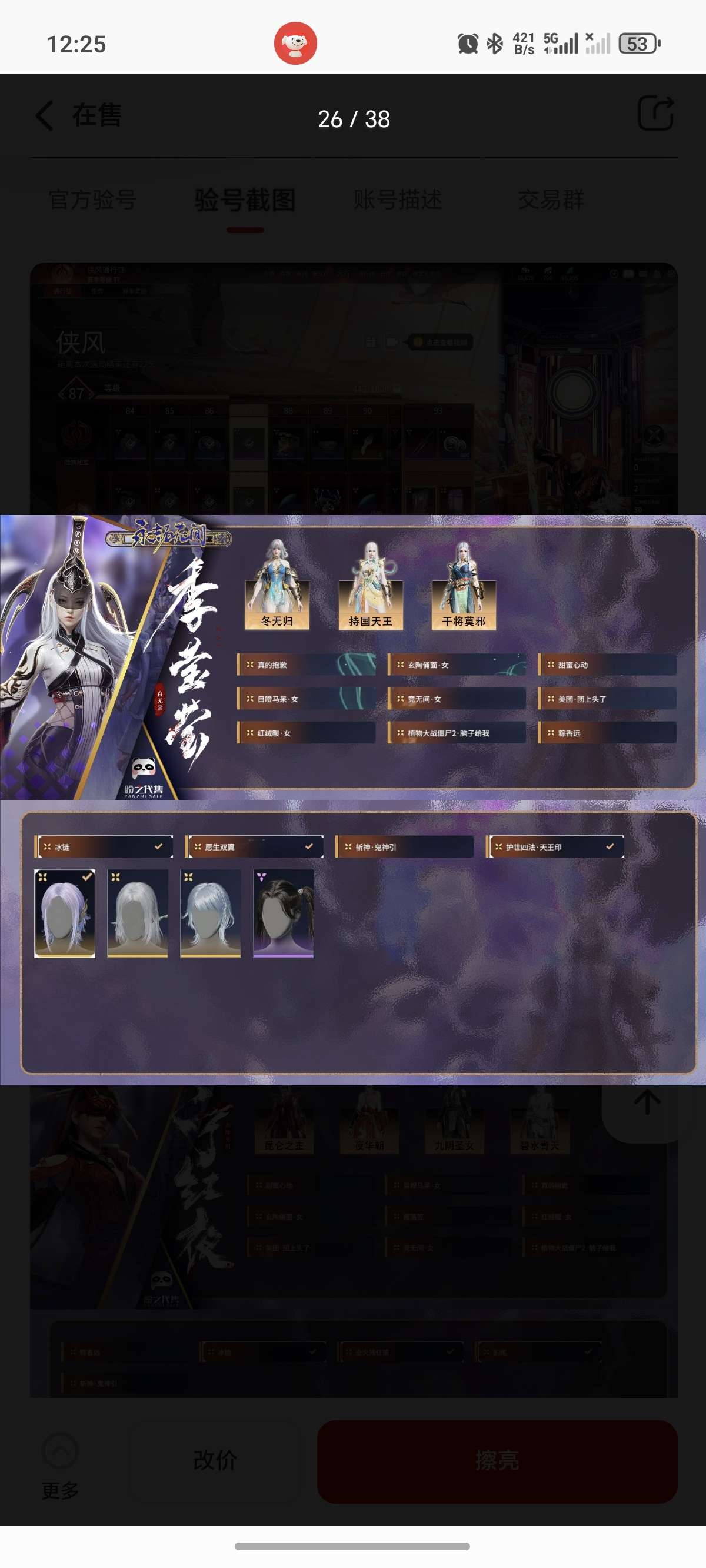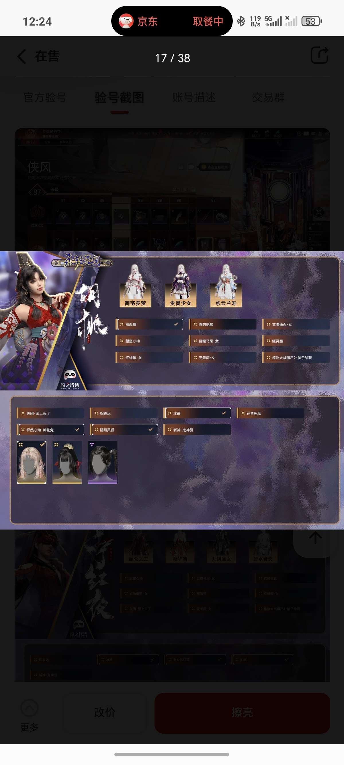 通过App,与卖家商议价格及保险,并向卖家索要账号最新截图,确认后下单购买。