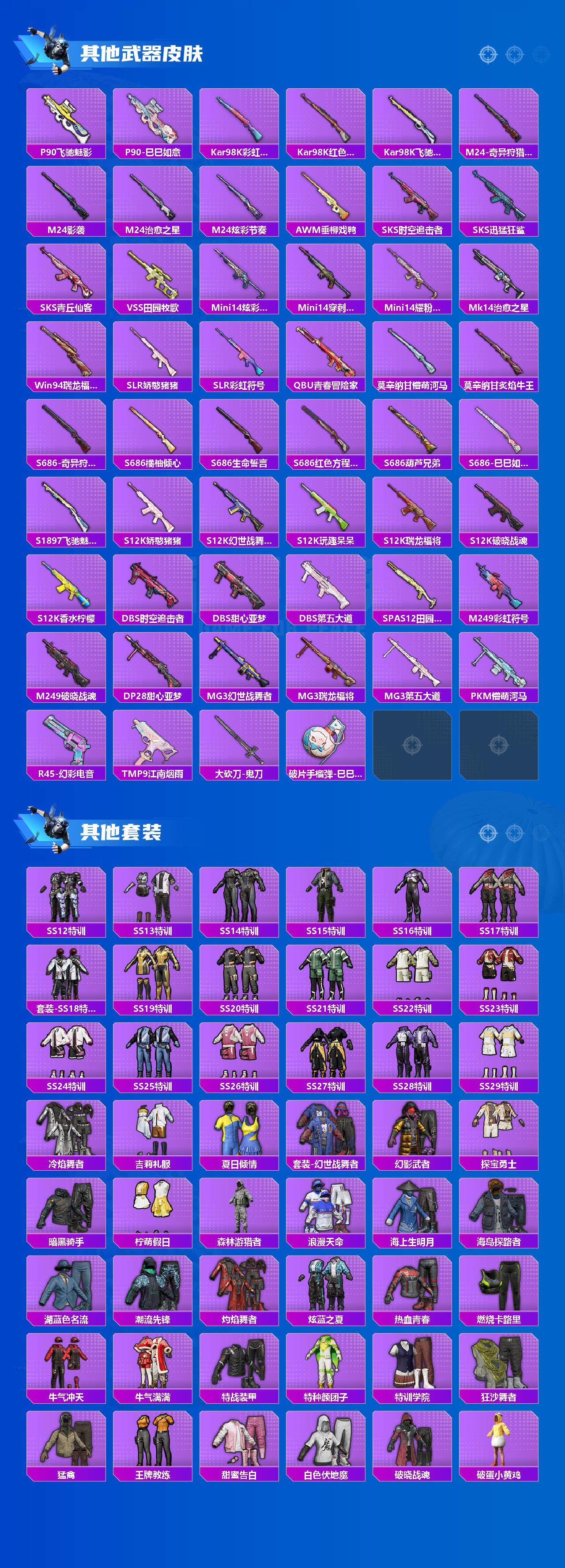 【粉色枪皮等级】:M416-电玩时刻(五级),GROZA-镜光银凌(五级),Kar98K-巳巳如意(五级),DP-28-豹影疾电(五级),PKM-