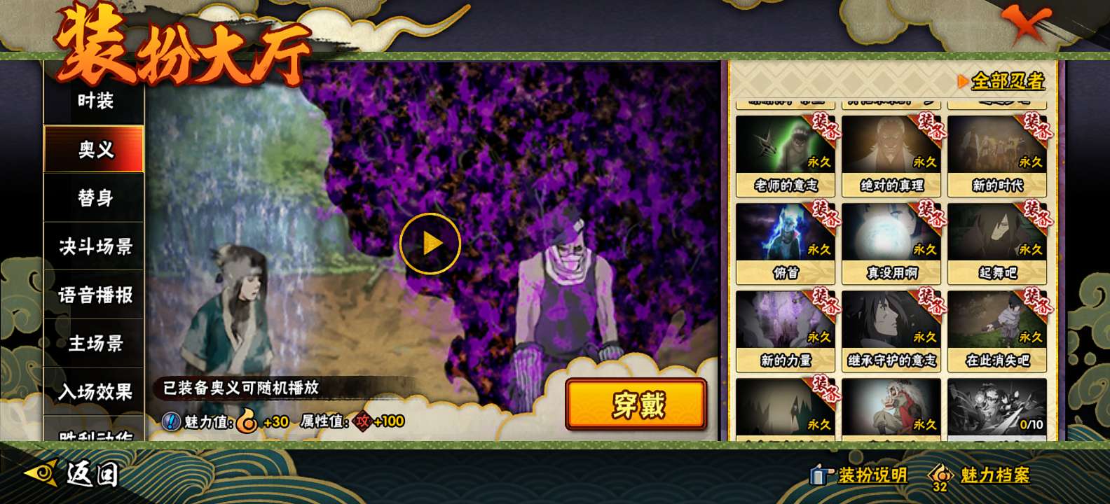 阴水门65,须佐止水87,有体验服资格