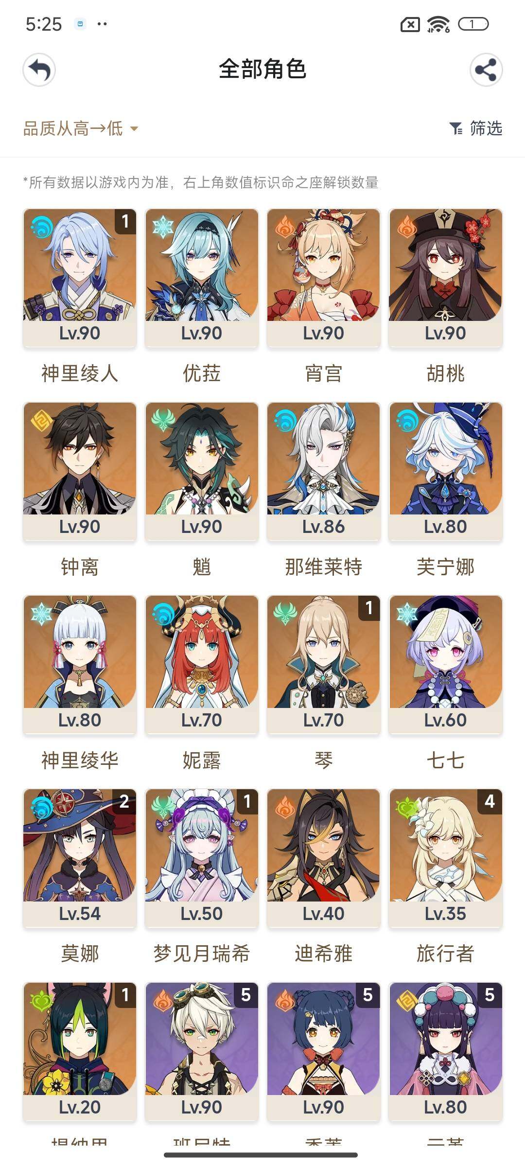 【YSN2051】57级/男主/17个五星角色/1命梦见月瑞希/芙宁娜/那维莱特/迪希雅/妮露/1命提纳里/1命神里绫人/宵宫/神里绫华/优菈/胡桃/魈/钟离/1命琴/2命莫娜/七七/波乱月白经津/和璞鸢/狼的末路/阿莫斯之弓/天空之脊/1命嘉明/夏沃蕾/琳妮特/绮良良/卡维/米卡/5命瑶瑶/满命珐露珊/莱依拉/2命坎蒂丝/多莉/1命柯莱/1命鹿野院平藏/2命久岐忍/5命云堇/4命五郎/1命托马/4命九条裟罗/满命早柚/1命烟绯/2命罗莎莉亚/辛焱/满命迪奥娜/5命砂糖/5命雷泽/满命菲谢尔/0