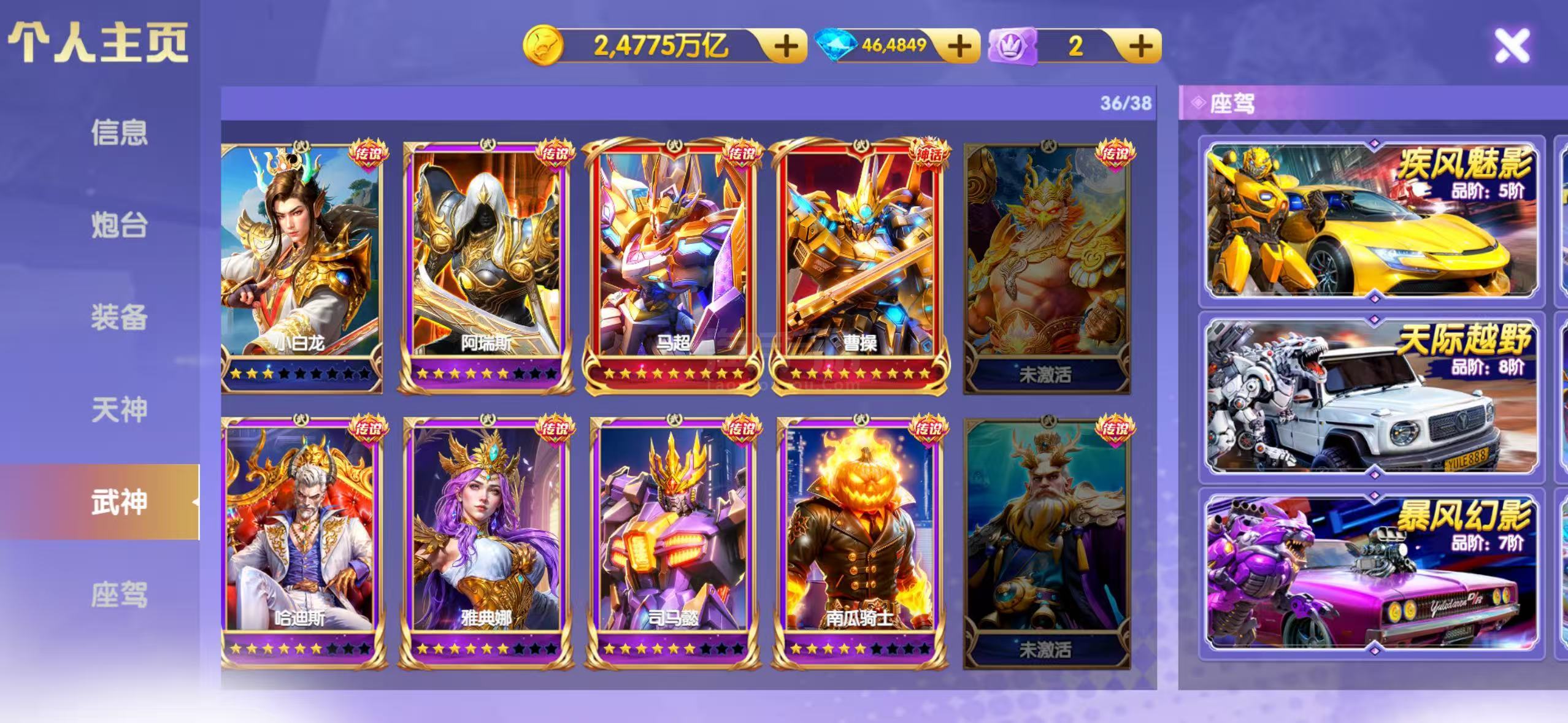 官服QQ 顶配V25 五万炮 加成6695,天神满 五福6,机甲六九,都高星羁绊