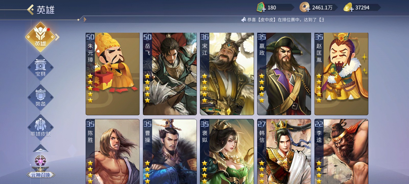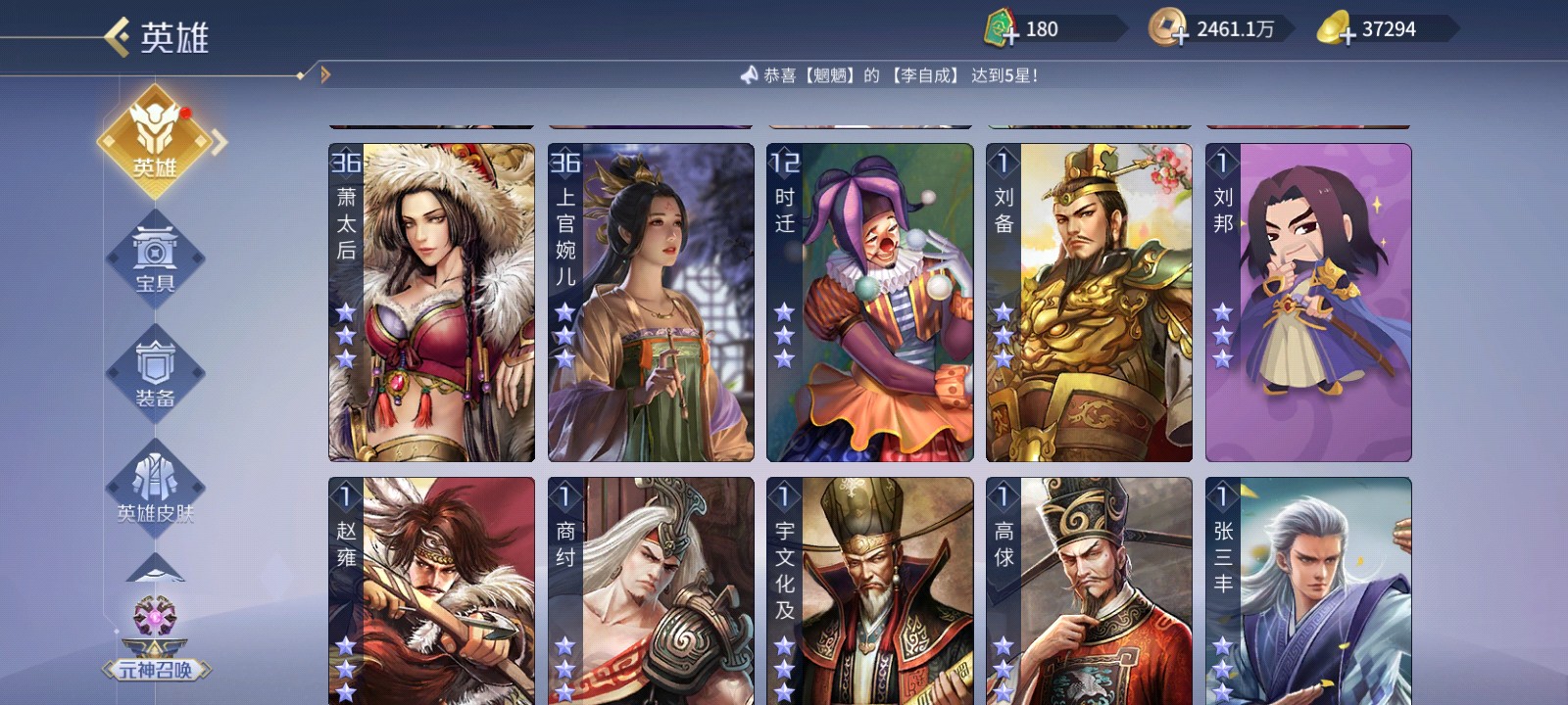 五星武将数量: