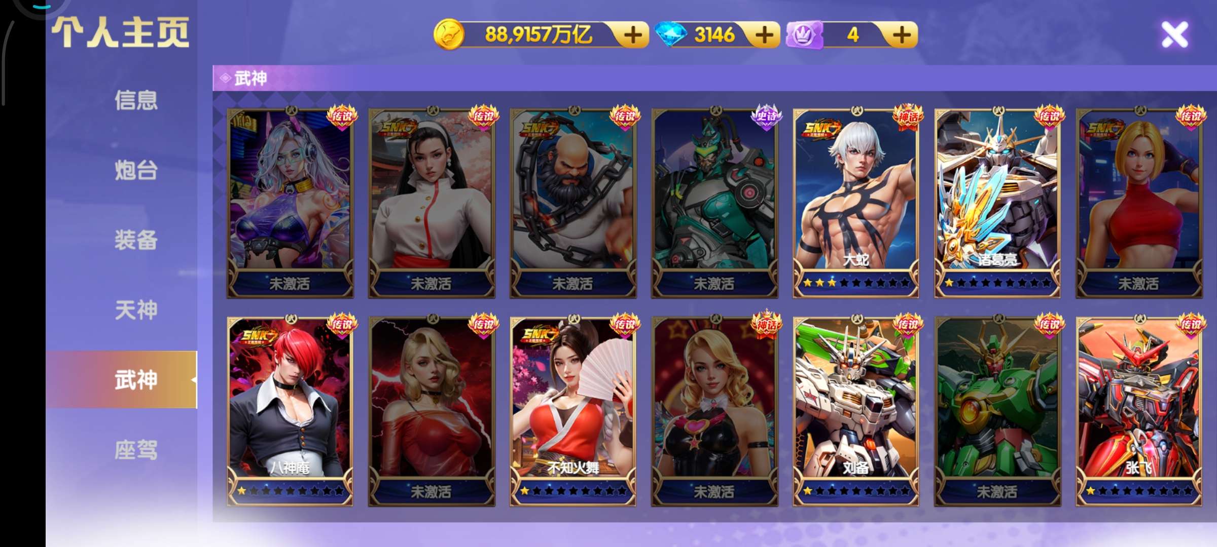 89京➕1万多个弹头,神装磁暴3,材料多多。9连斩,狐狸关羽天王全3星