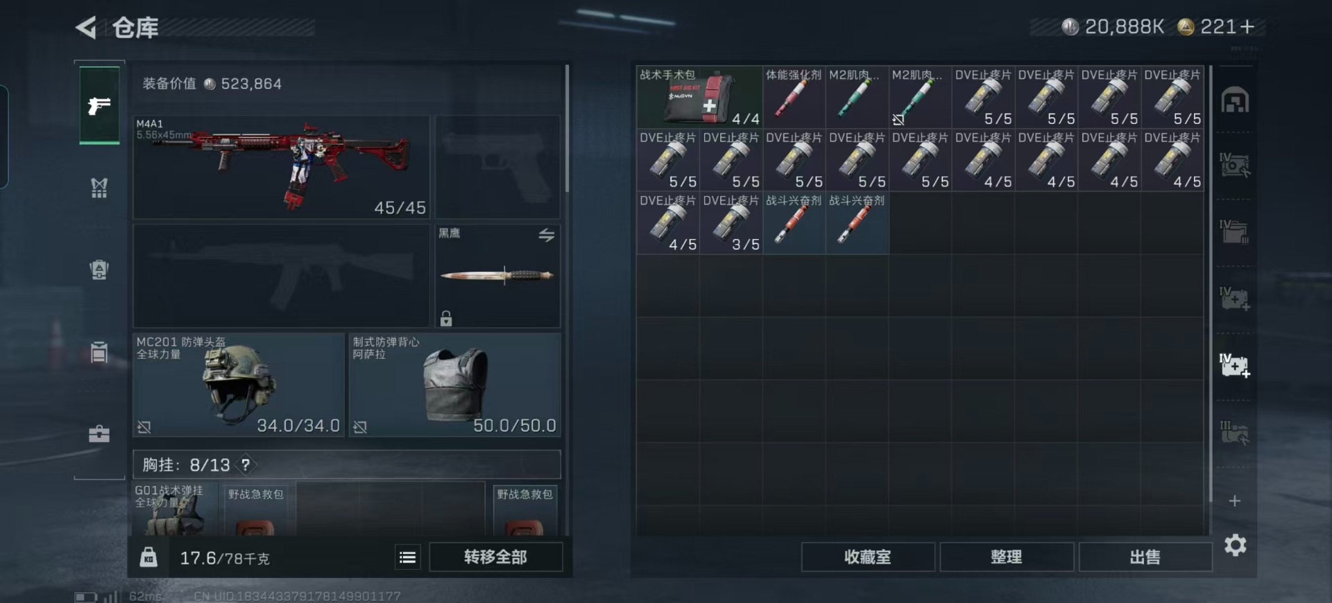 总资产:134.4M 1干员外观 12传说枪械 哈夫币:20.888K 可二次 可修改实名