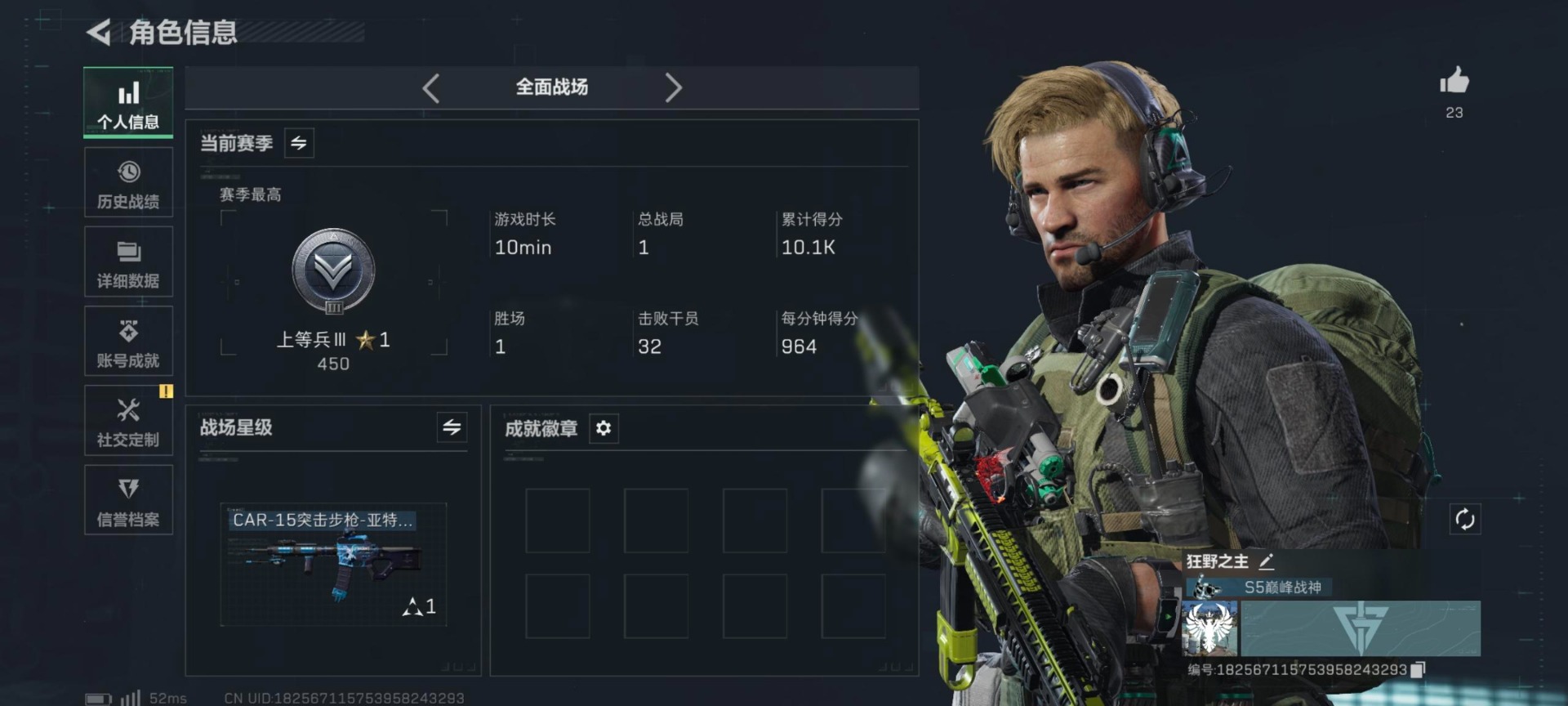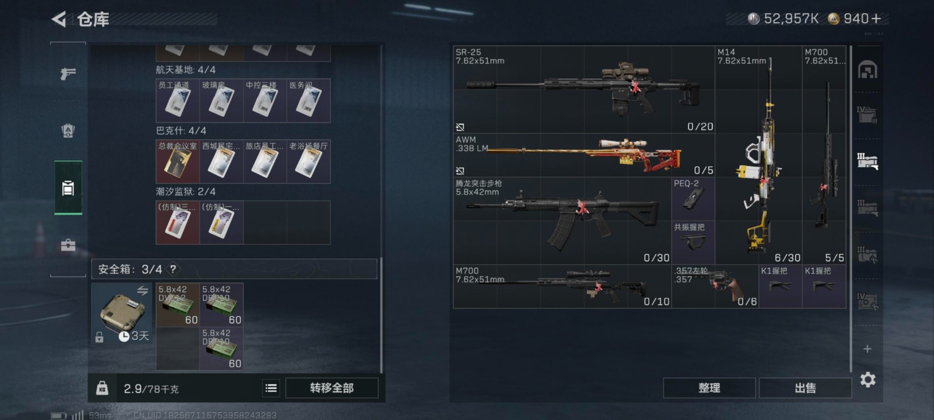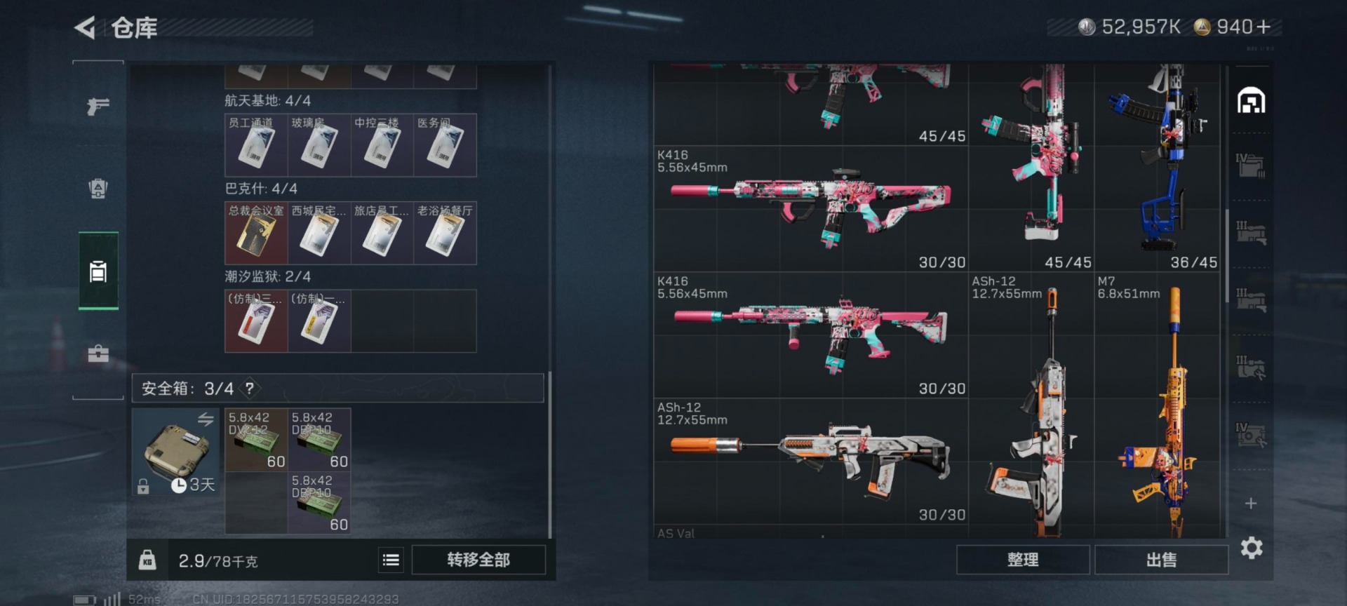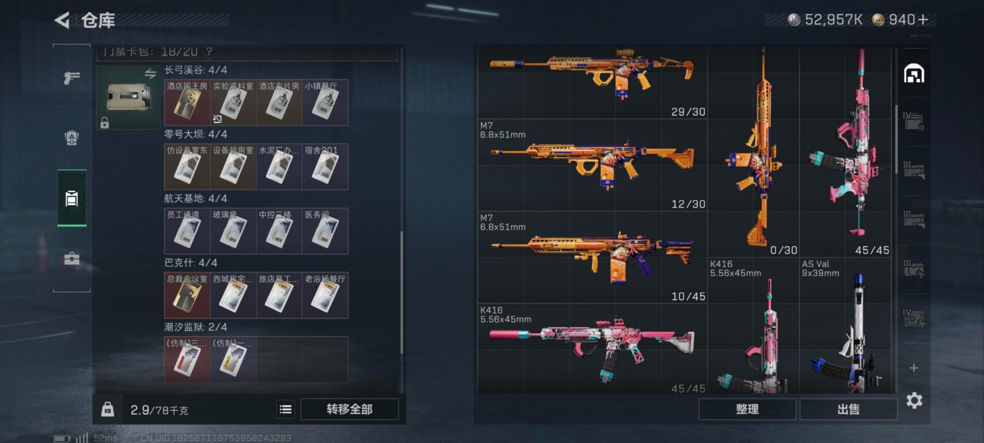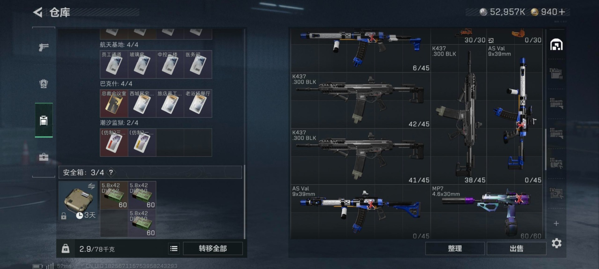 总资产:218.5M 1干员外观 16传说枪械 哈夫币:52.957K 可二次 可修改实名