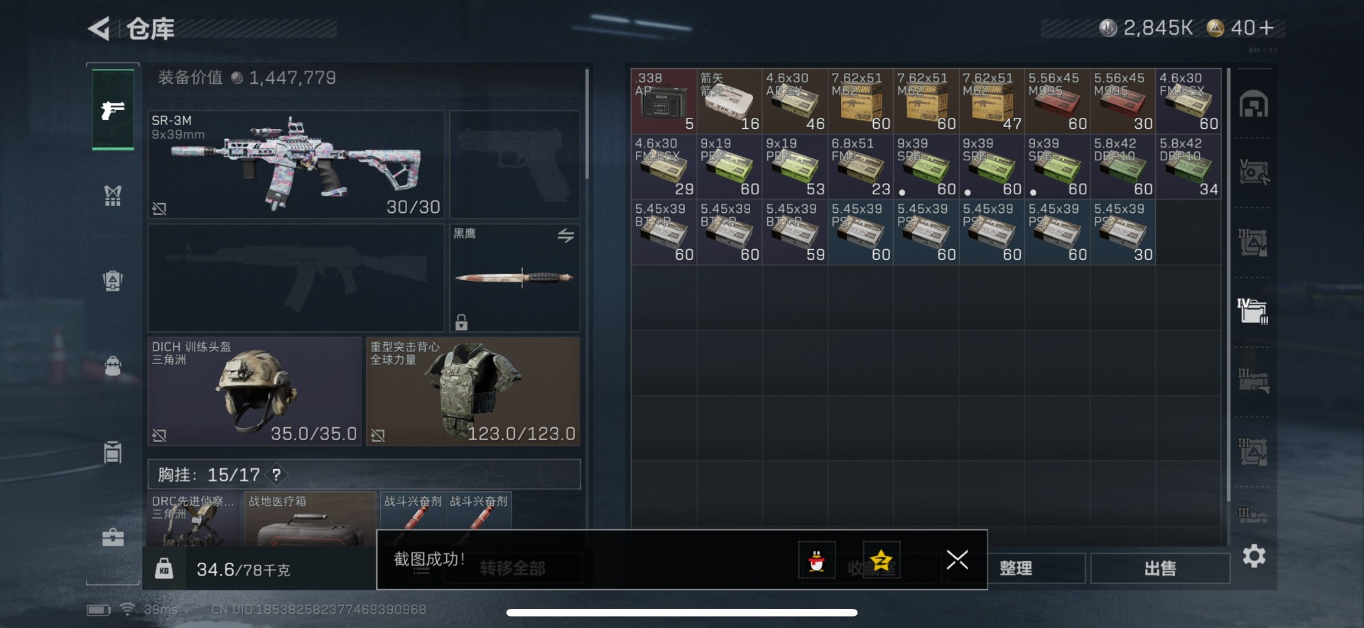 总资产:104.1M 2干员外观 6传说枪械 哈夫币:2.845K 可二次 可修改实名