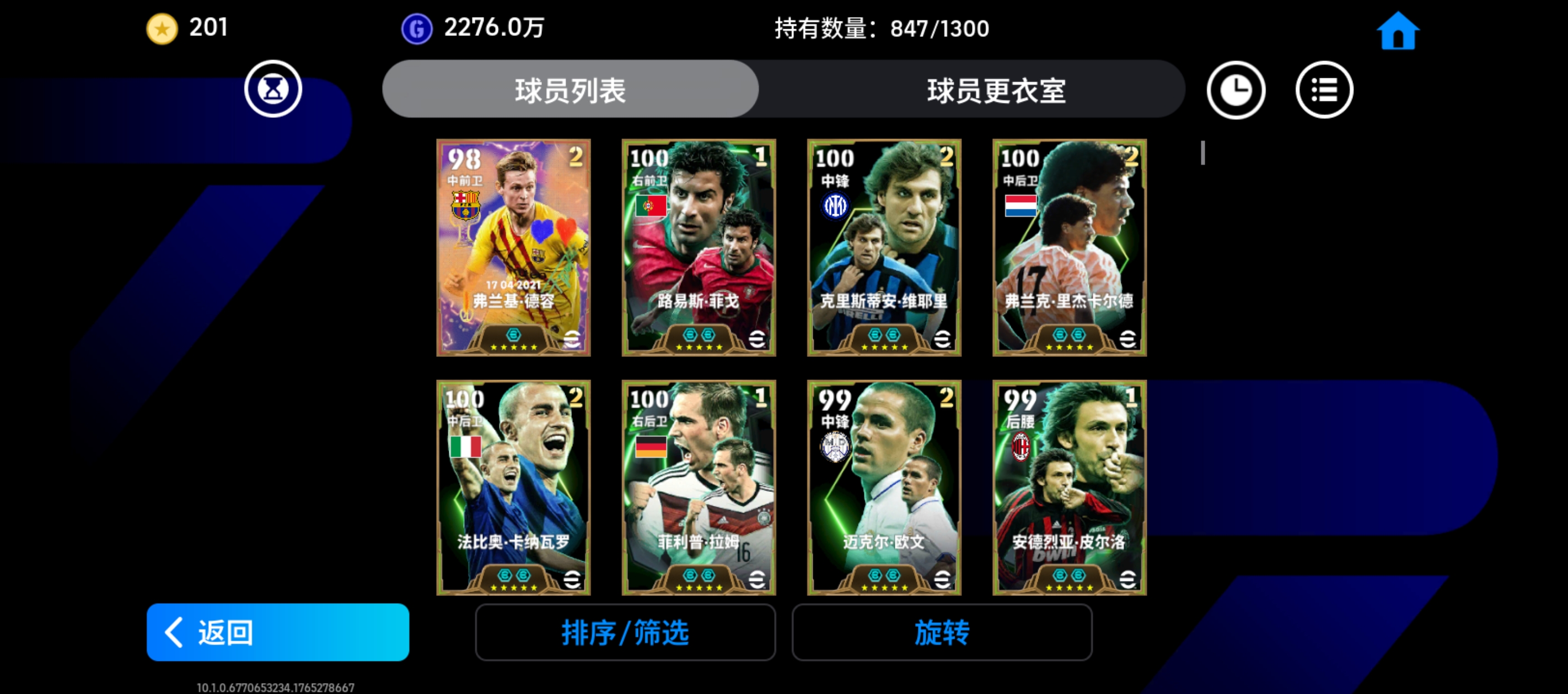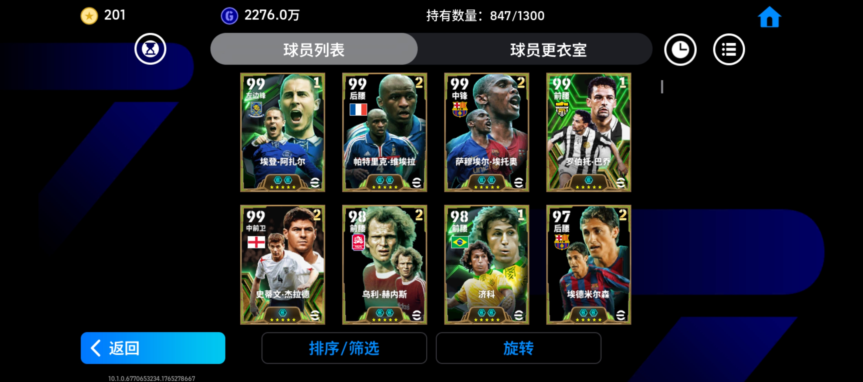 整体实力3200 ,维耶里,埃托奥,赫内斯,阿扎尔,维埃拉,皮尔洛,埃德米尔森,里杰卡尔德,拉姆,