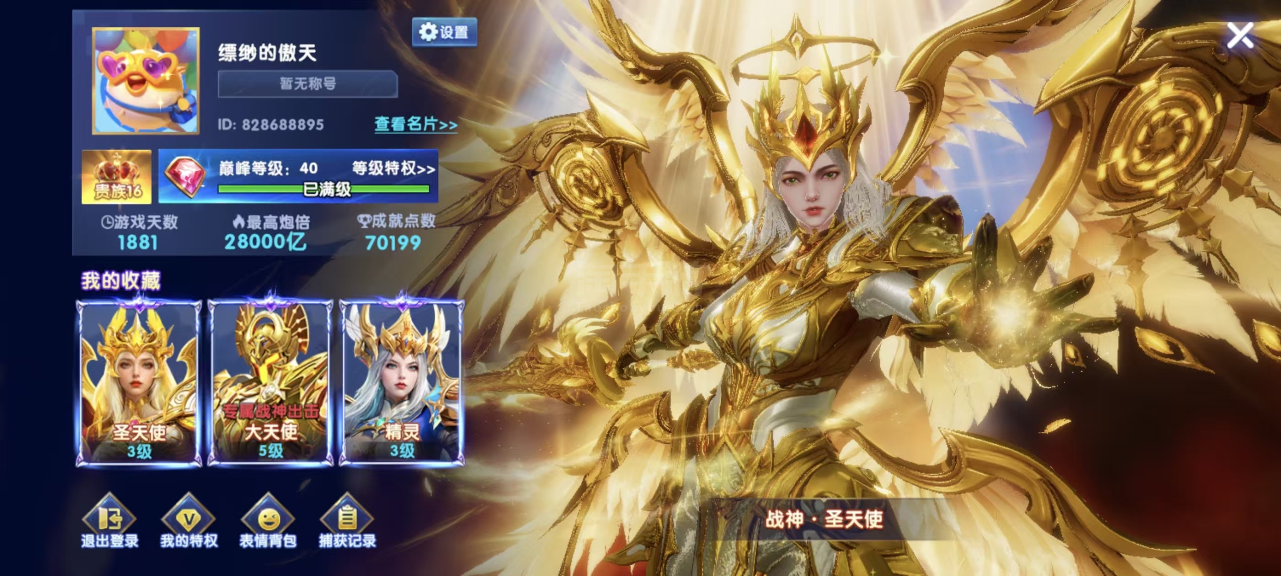 华为版本捕鱼大作战,特权11贵族16,11套准14套,差27个霹雳火12套,大天使5级,带6.69万点卷充的话值5000,经常救急起大分满巅峰,配置看图挺牛的号