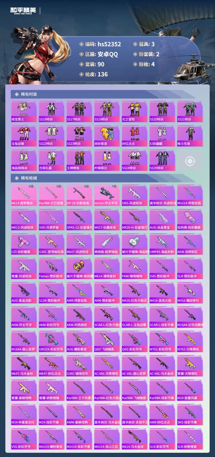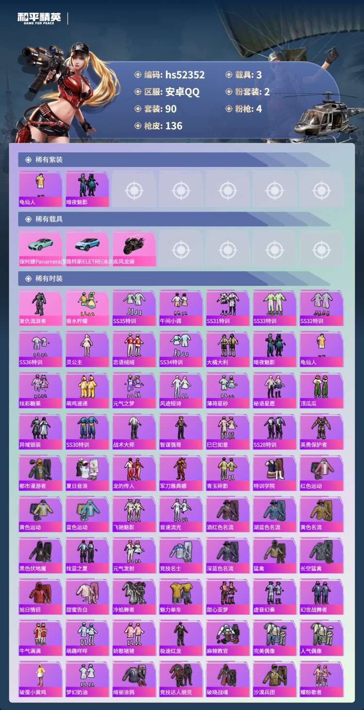 hs52352 安卓手Q-6王牌印记-2粉装-4特效枪-3载具-90套装-136枪