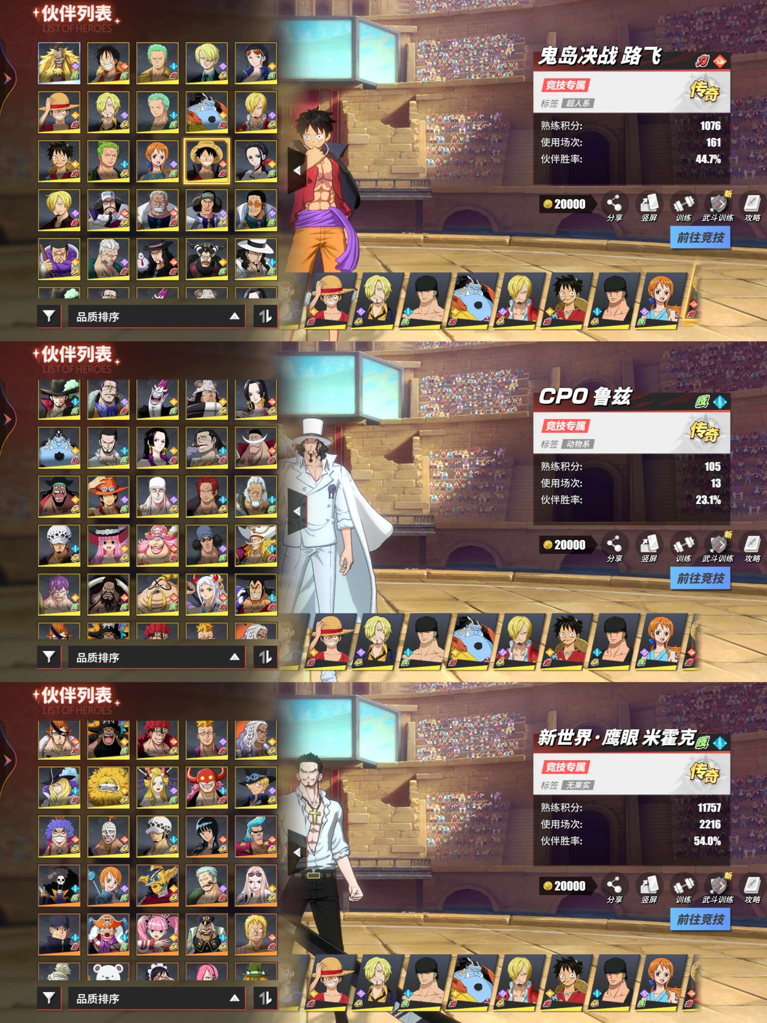 1600万竞技场63传奇11强者 新角色基本全有 和之国基本都全了 竞技场有新鹰眼 4个98友情技