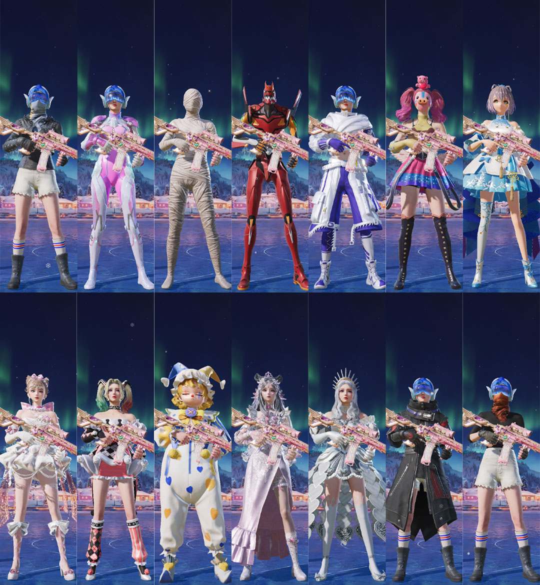 特效枪8:M416-心之恋语/7级,,SCAR-L-童趣迷兔/7级,,AKM-百合蜜语/7级,,M762-冷魅冰骑/5级,,Mk14-甜梦熊击/5级,,AUG-暖羊咩咩/5级,,DP-28-豹影疾电/5级,Kar98K-巳巳如意/5级,,