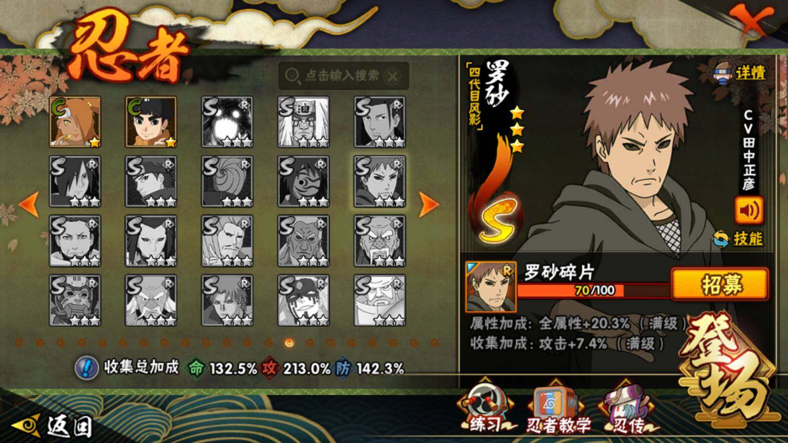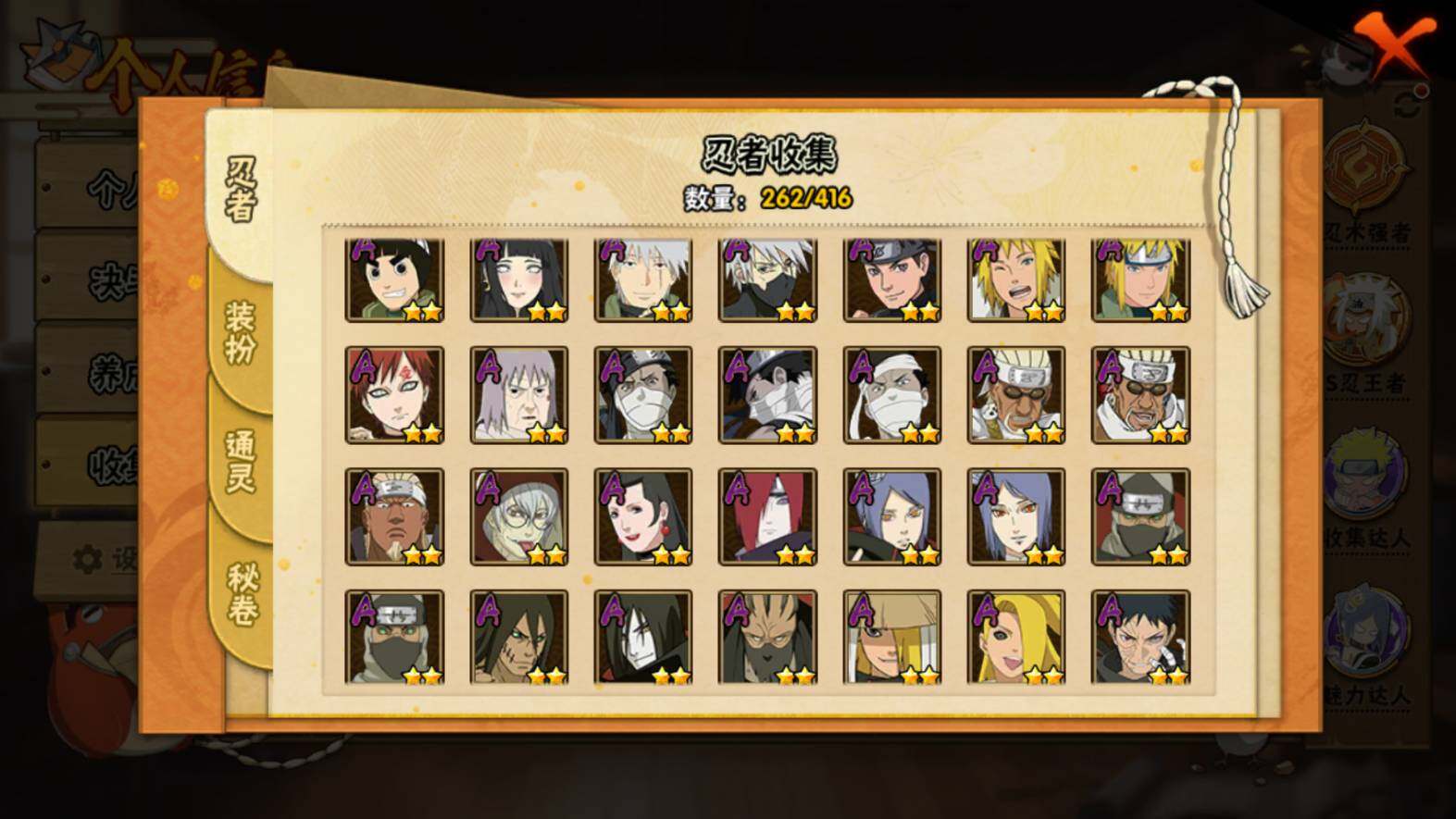 【S级忍者】:长门「秽土转生」(3星),金角·银角「秽土转生」(3星),猿飞日斩「秽土转生」(3星),波风水门「秽土转生」(4星),千手扉间「秽土转生」(3星),千手柱间「秽土转生」(3星),宇智波鼬「秽土转生」(3星),宇智