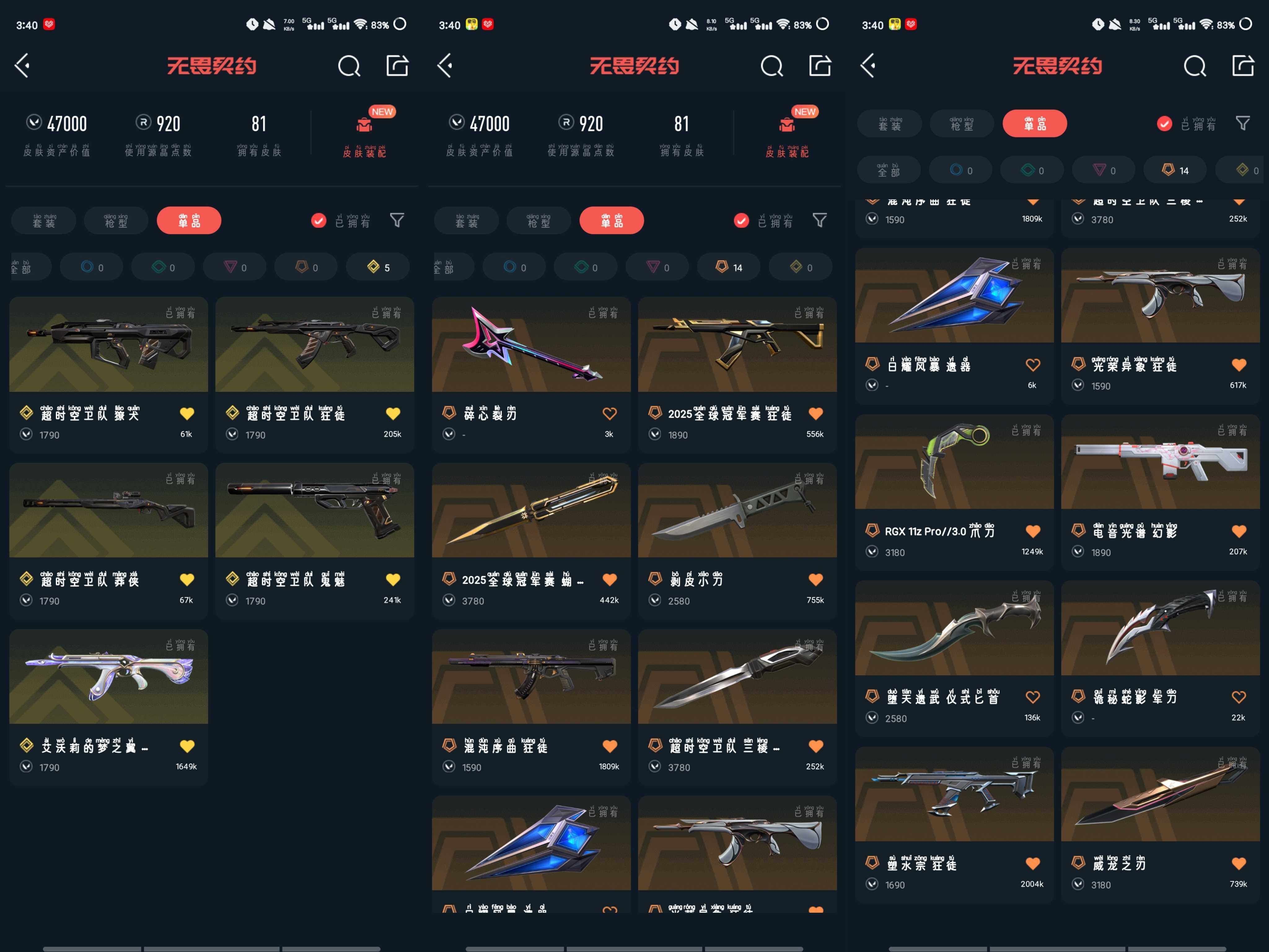 w23,2025超时空全套,爪刀5黄皮14橙皮,撩犬,莽侠,鬼魅,狂徒,蝴蝶刀