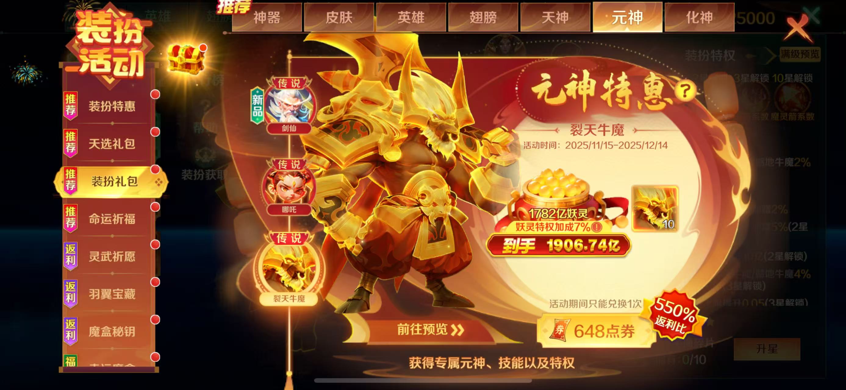 充值一万,带分一万亿,带一个裂天牛魔,官方要648