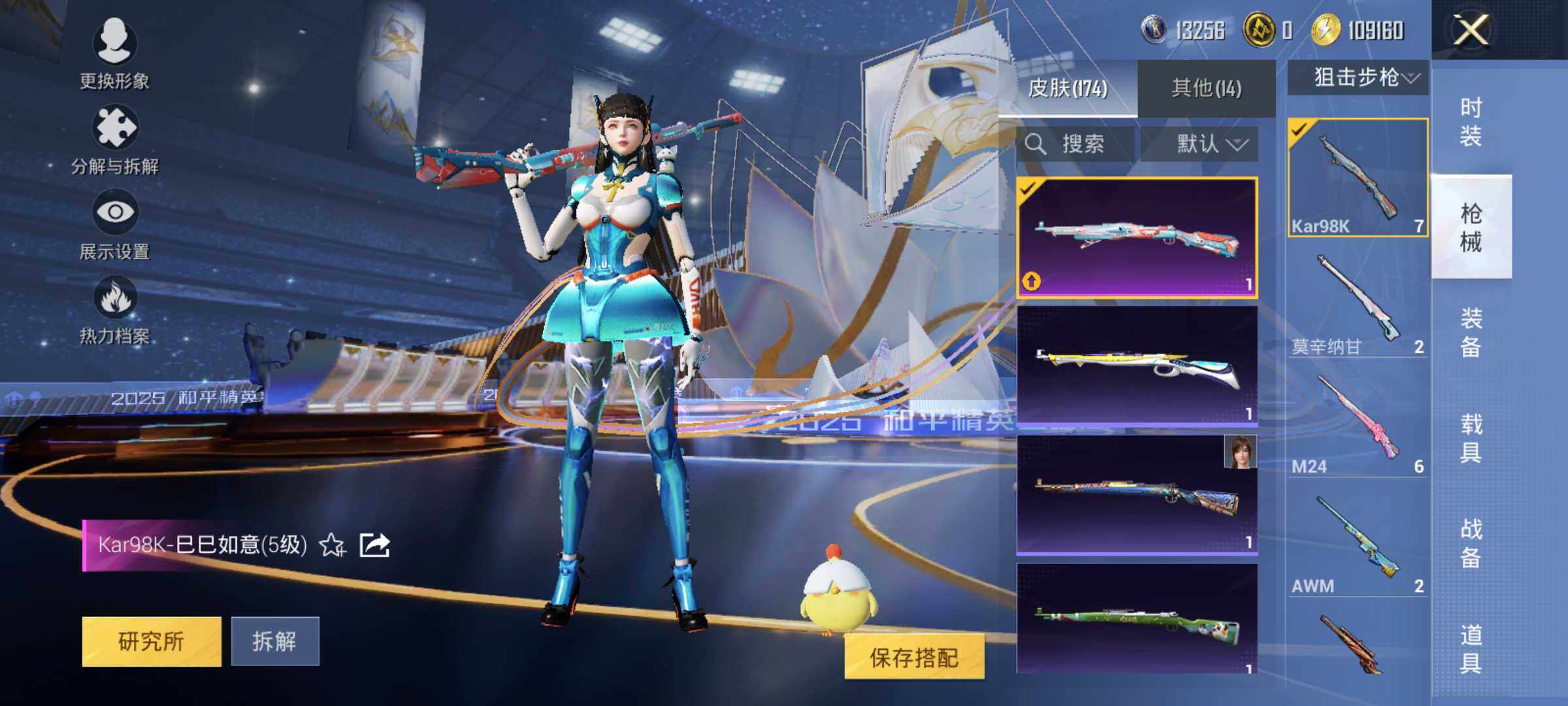 【粉色枪皮等级】:AKM-绿萝繁花(五级),GROZA-镜光银凌(五级),蜜獾-异瞳寒姬(七级),Kar98K-巳巳如意(五级),DP-28-豹影疾电(五级)