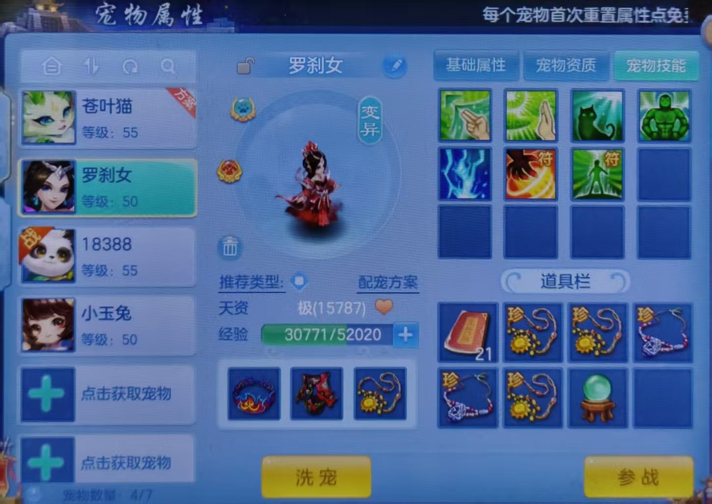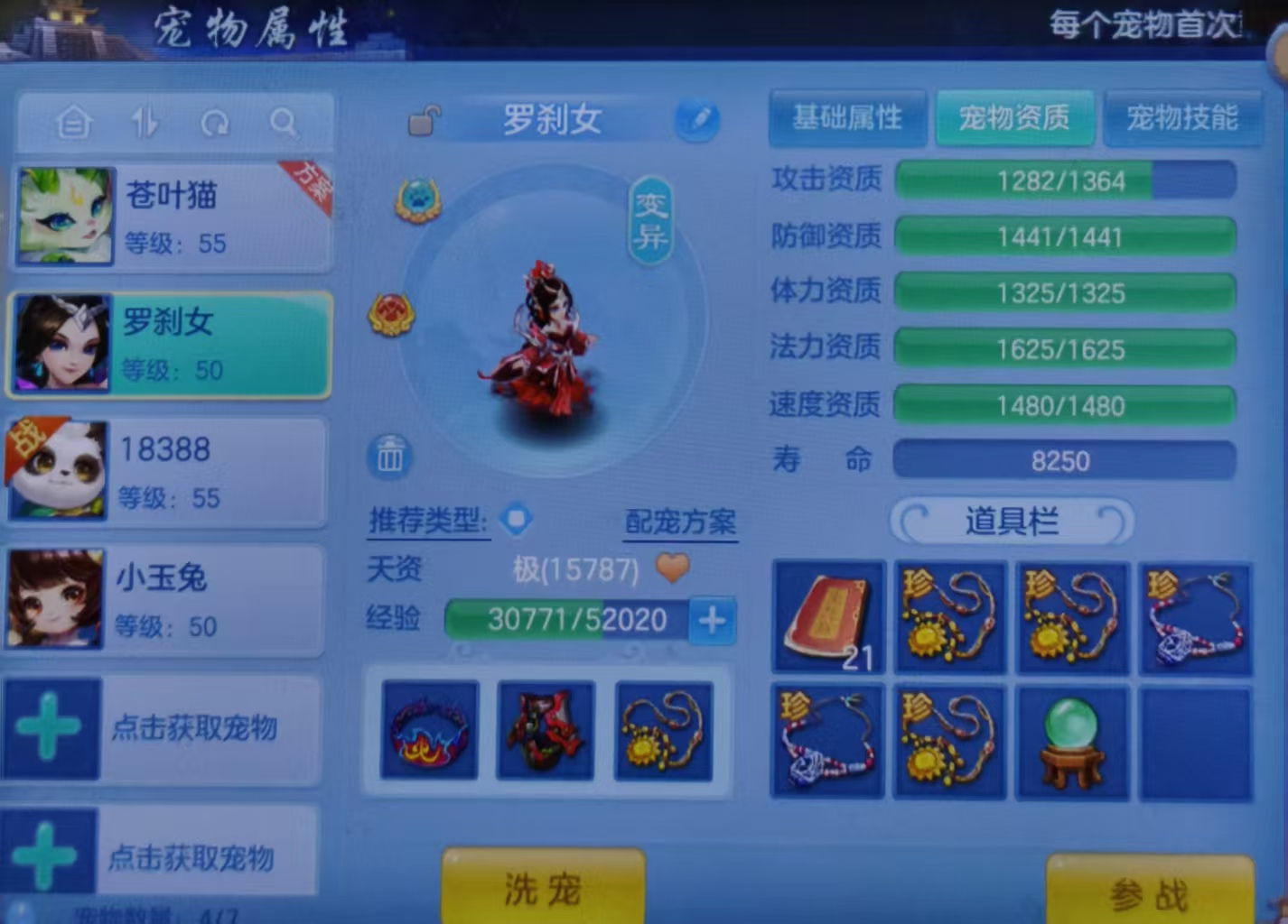 寒梅傲雪女天宫,六级能猫,5技能罗刹打好书,900金,通灵25张,三无126无双重。