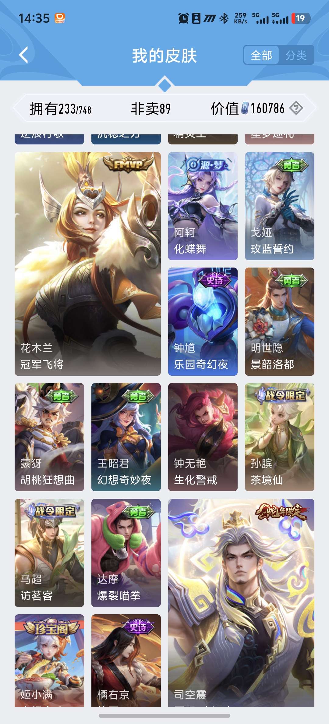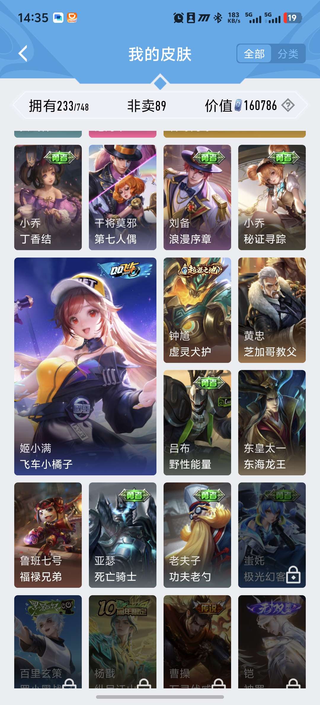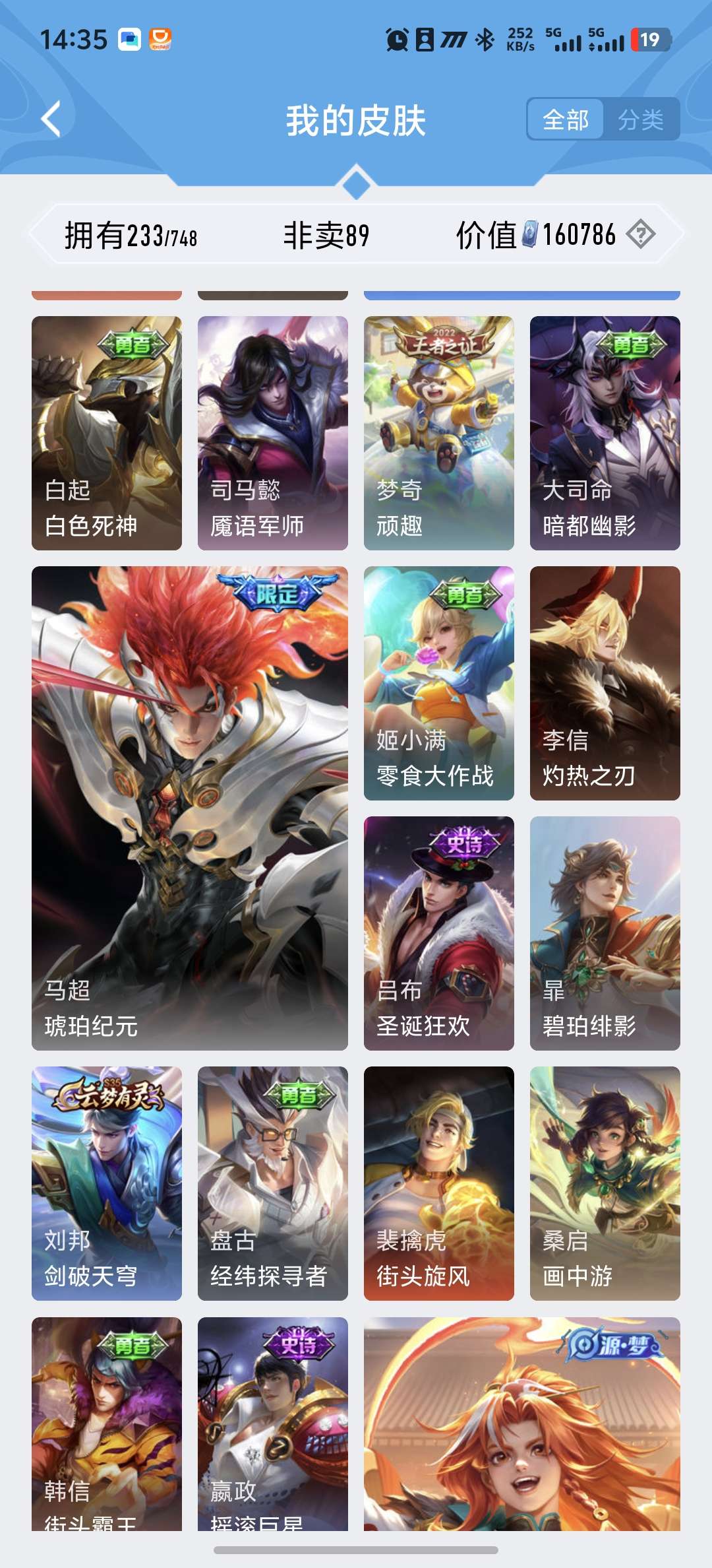 安卓QQ-16传说-1无双-233皮肤-127英雄-至尊星耀-全英雄就差一个武则天,233个皮肤1无双16传说以及很多限定