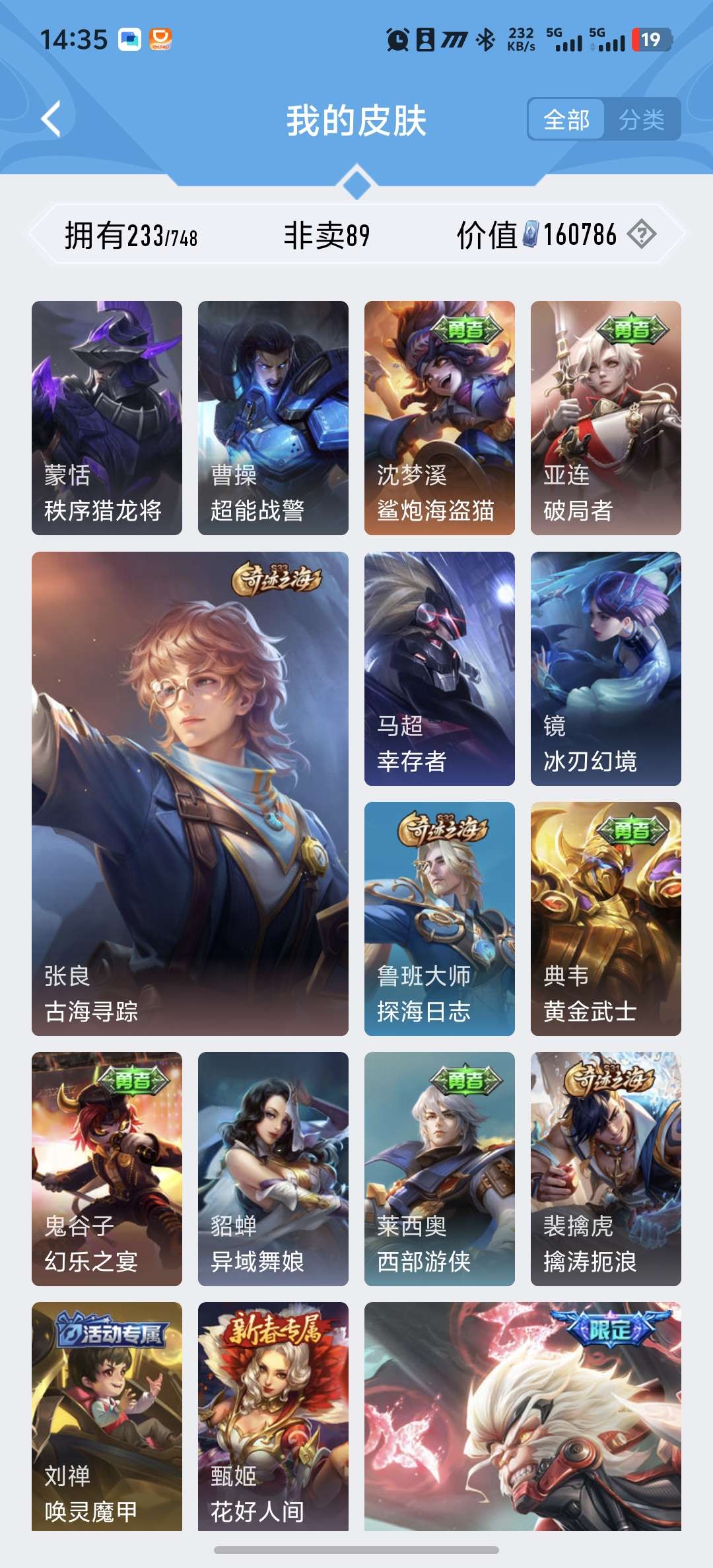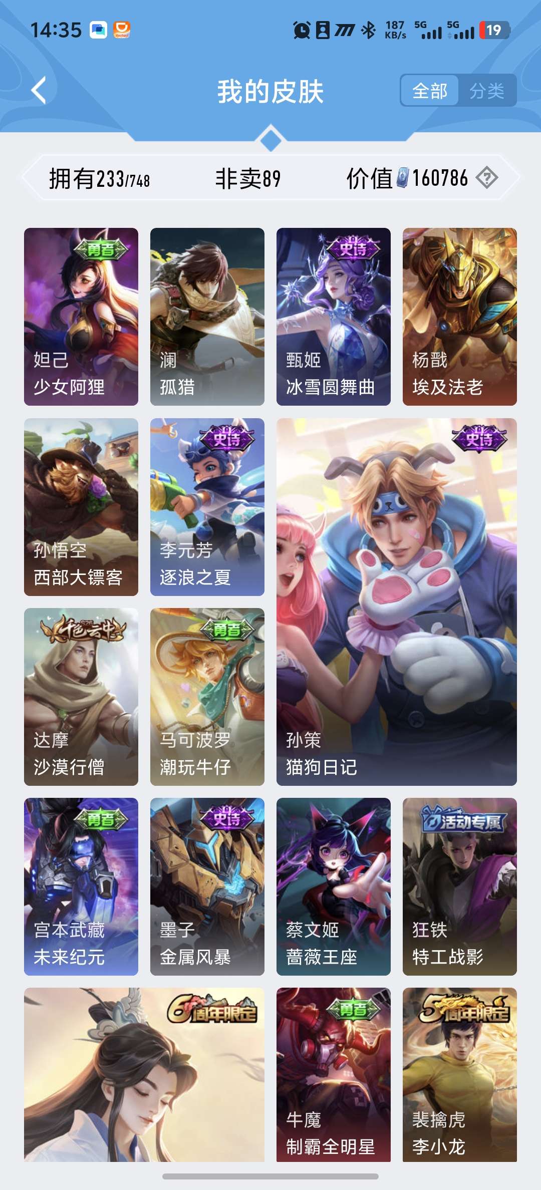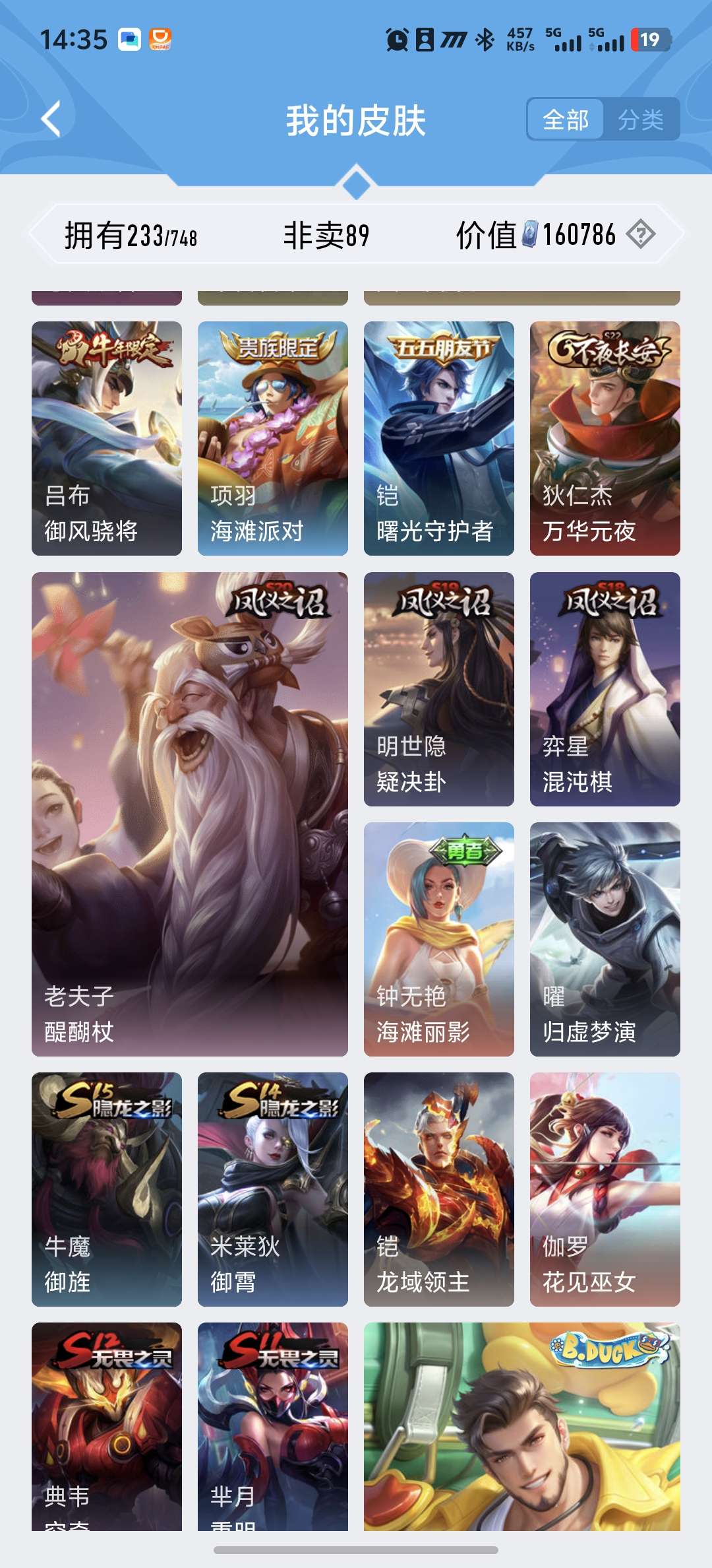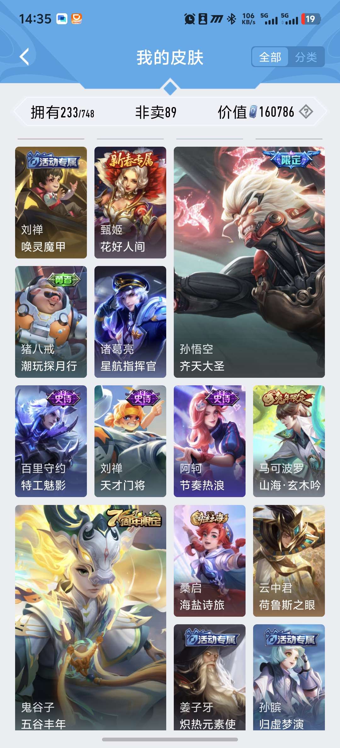 全英雄就差一个武则天,233个皮肤1无双16传说以及很多限定。