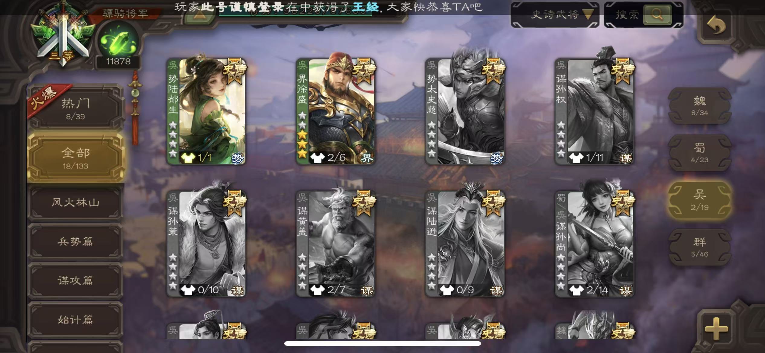 史诗武将数量: